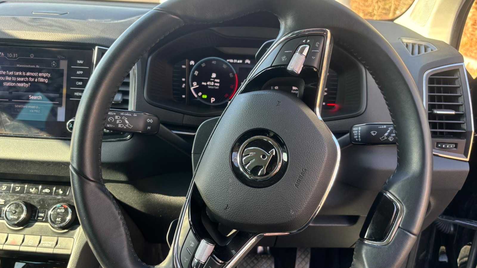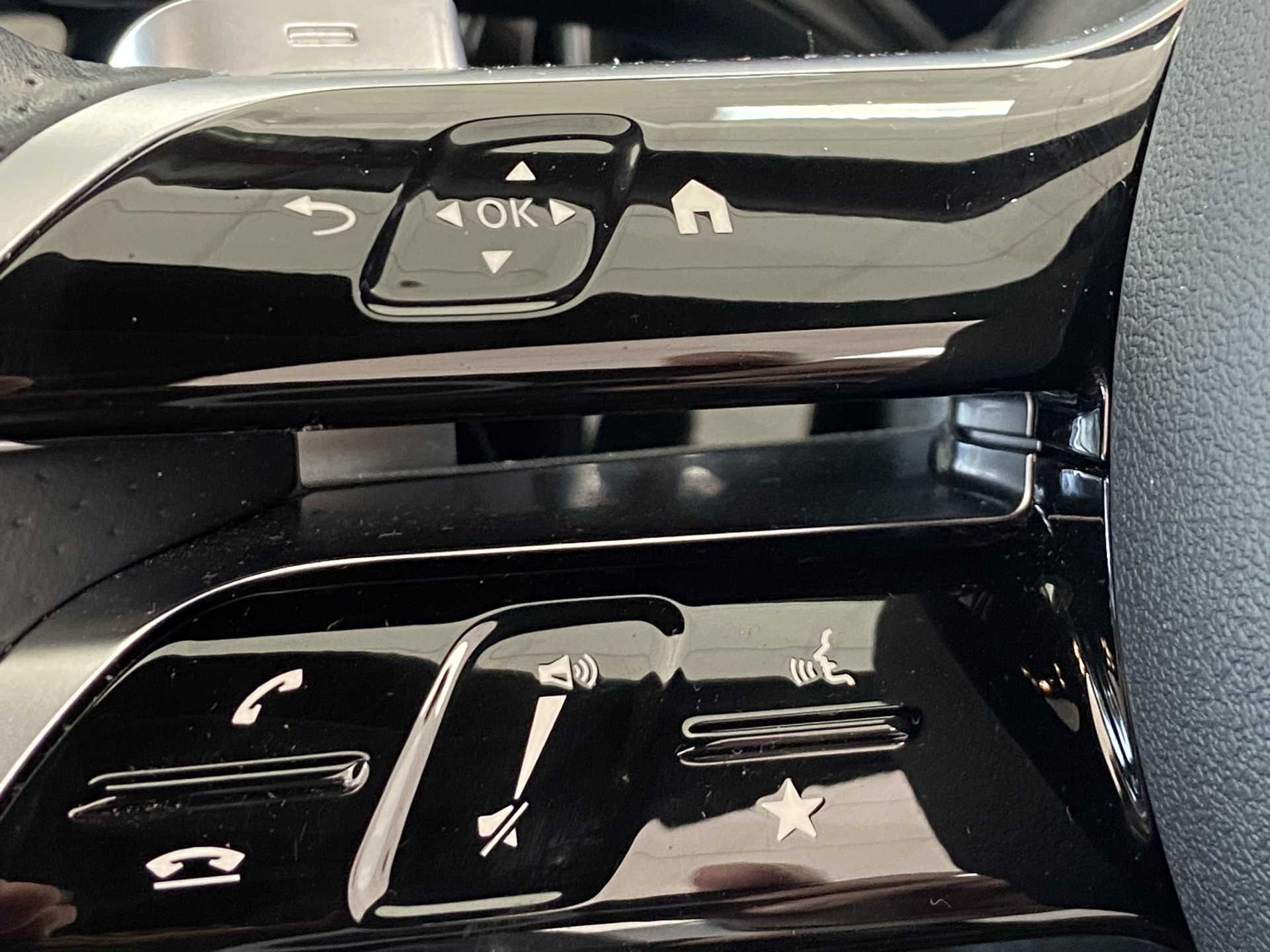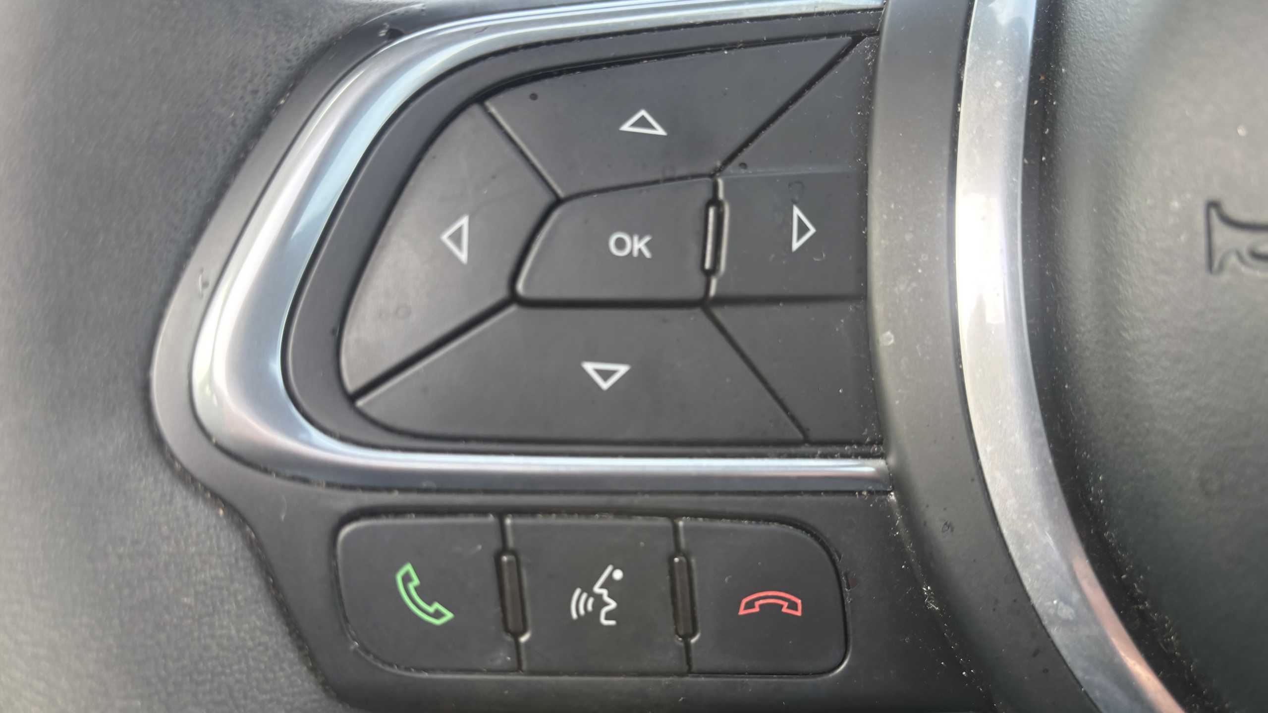 "3 spoke flat bottomed steering wheel with satin chrome effect bezel",