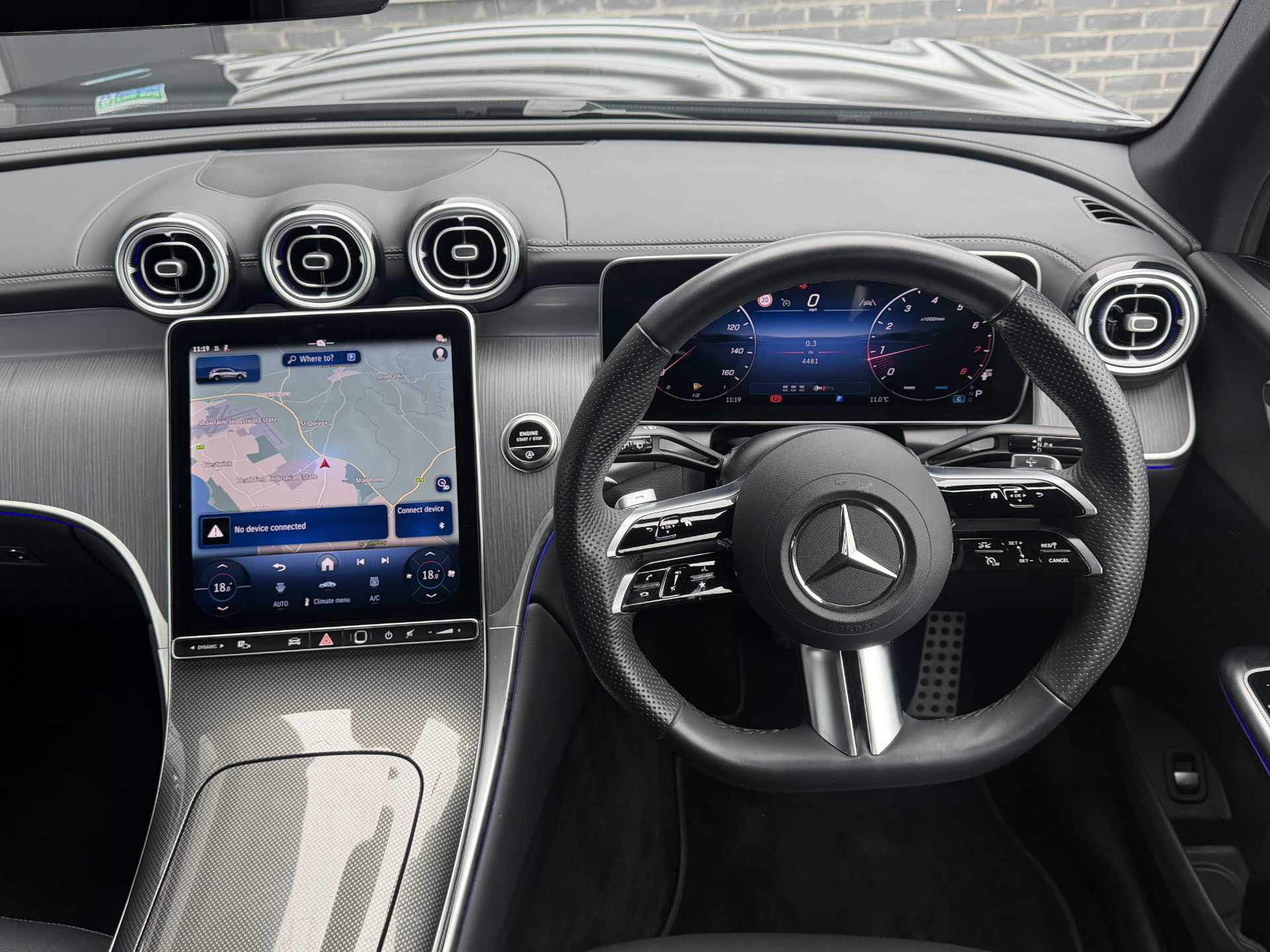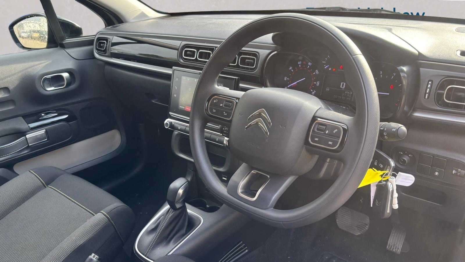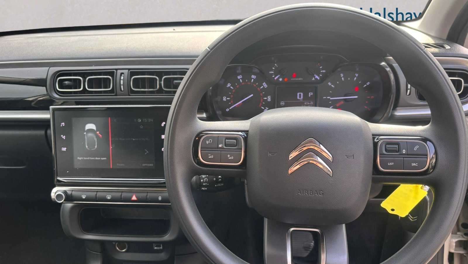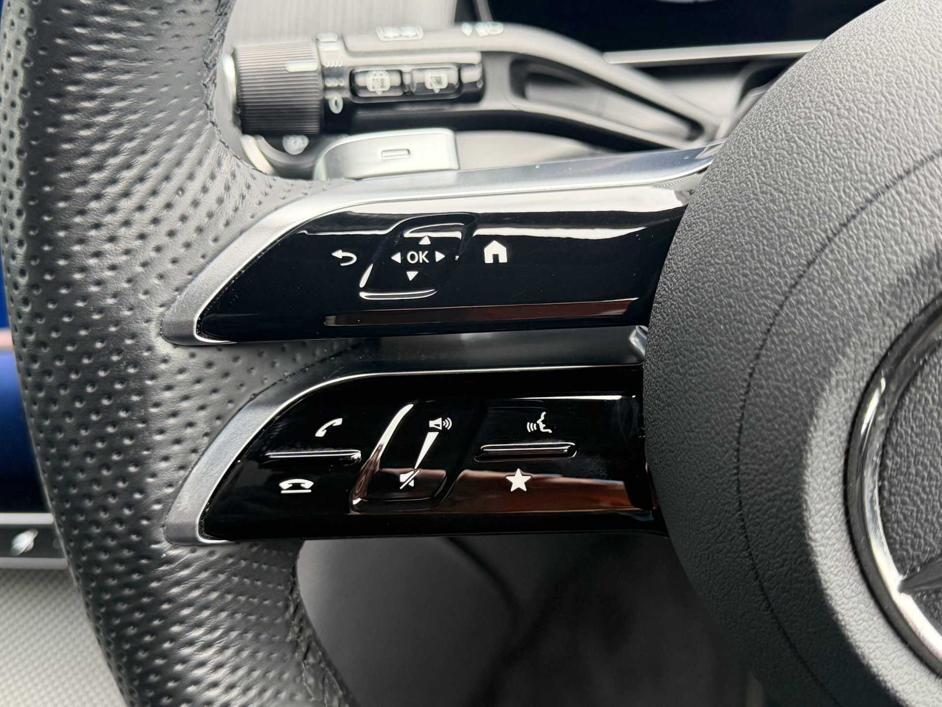 "3 spoke flat bottomed steering wheel with satin chrome effect bezel",
