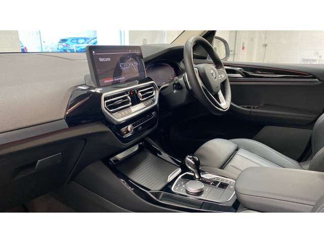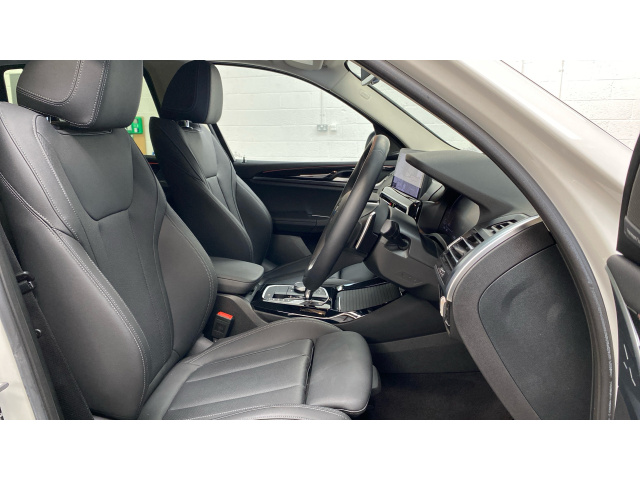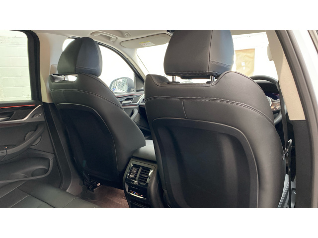 "3 spoke sports leather steering wheel with black leather and stitching, pearl chrome decorative finish, specific M Badge",