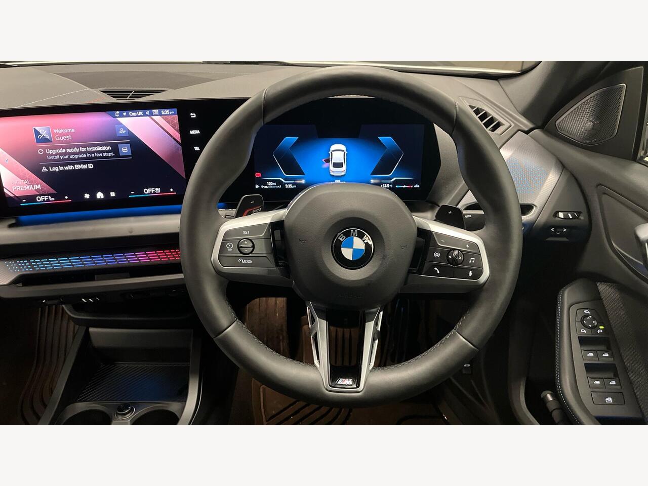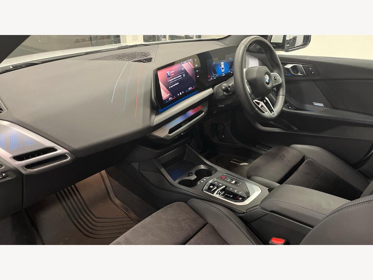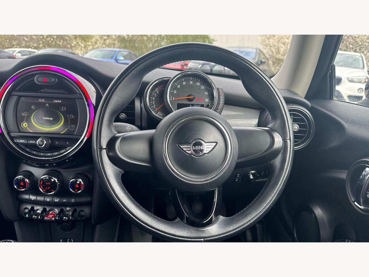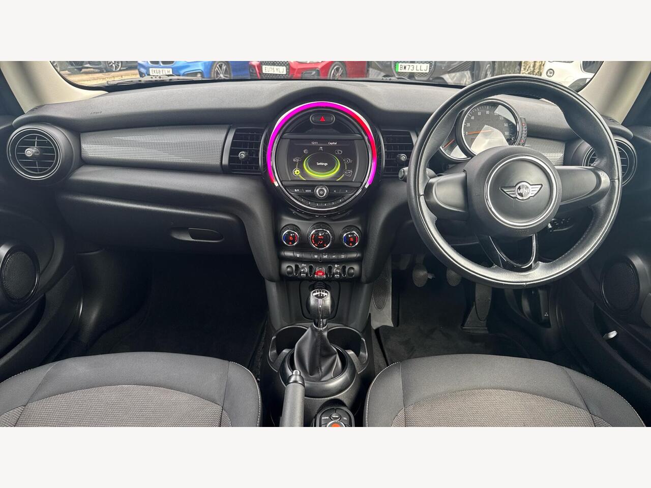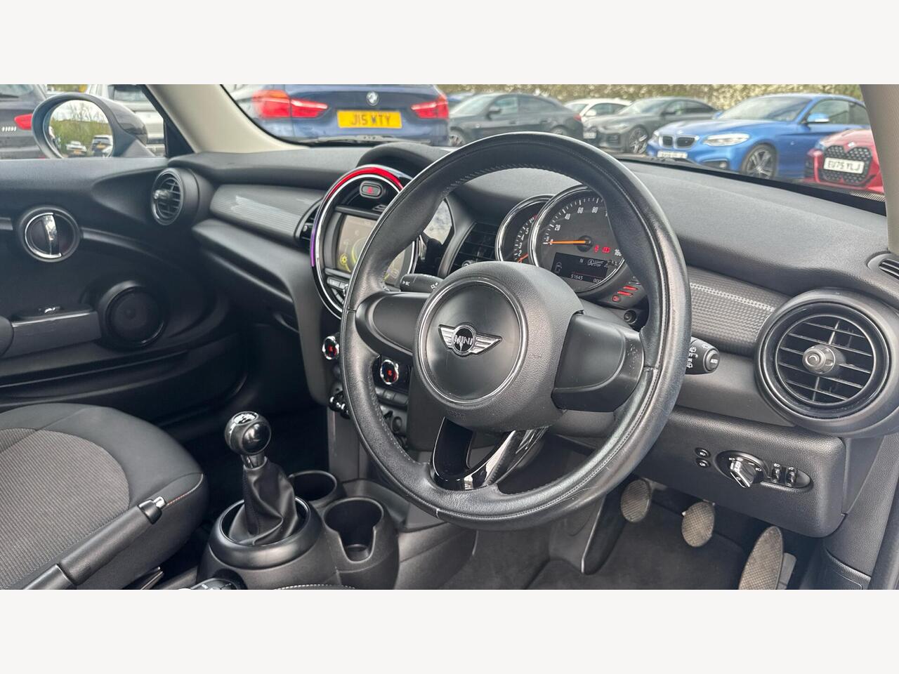 "Steering wheel, dashboard and central controls in black",