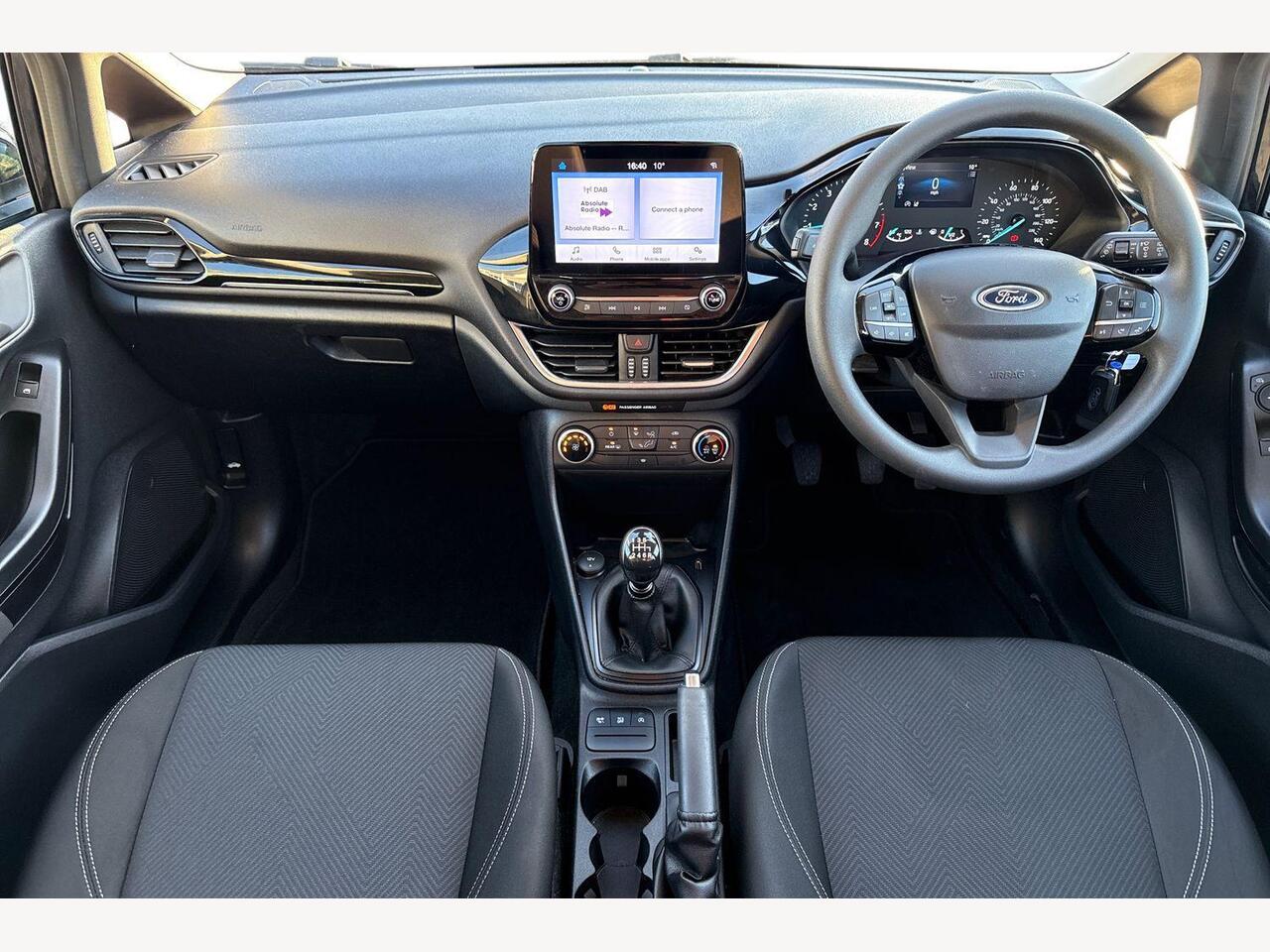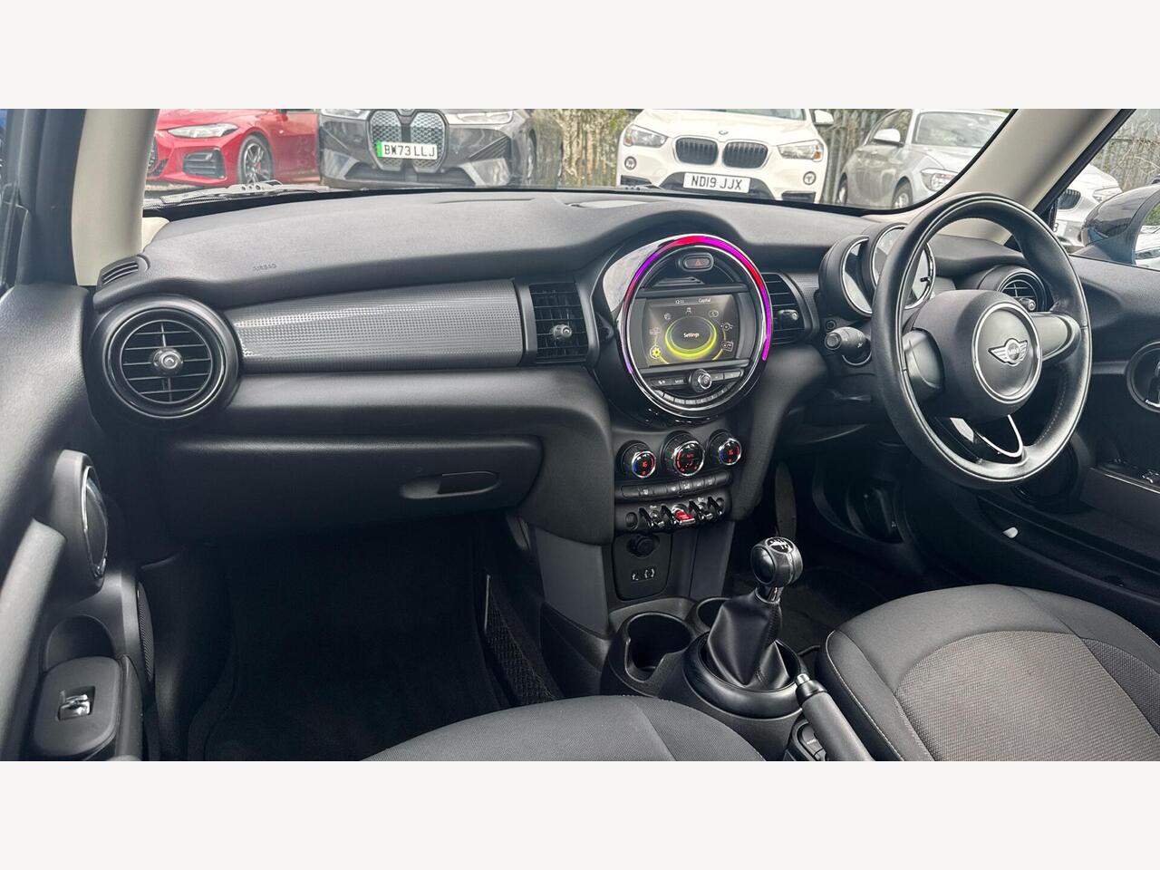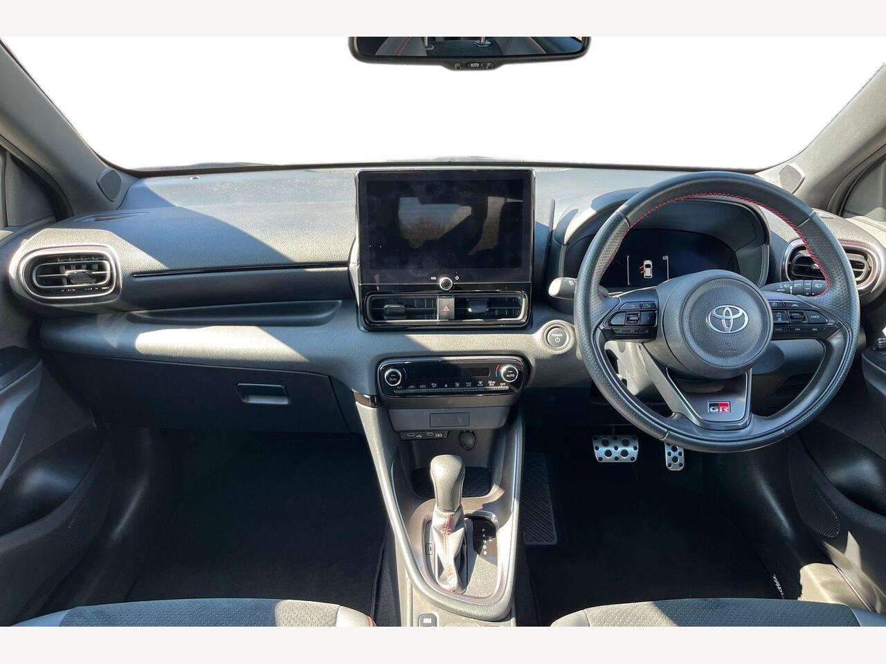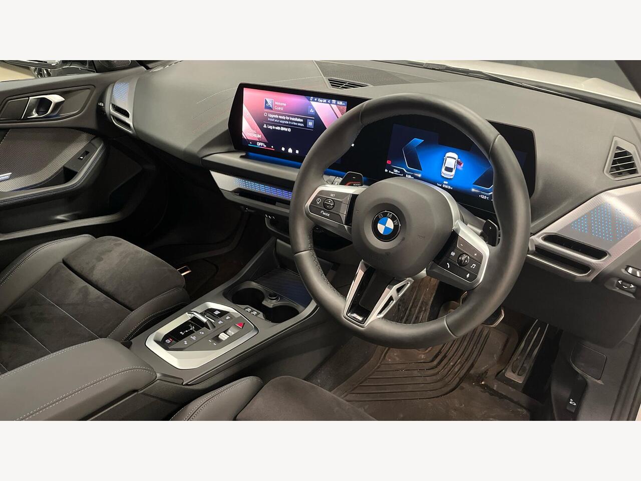 "Steering wheel, dashboard and central controls in black",