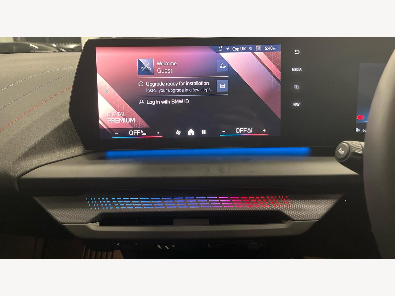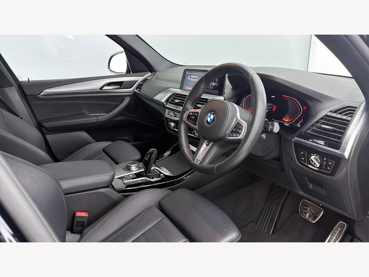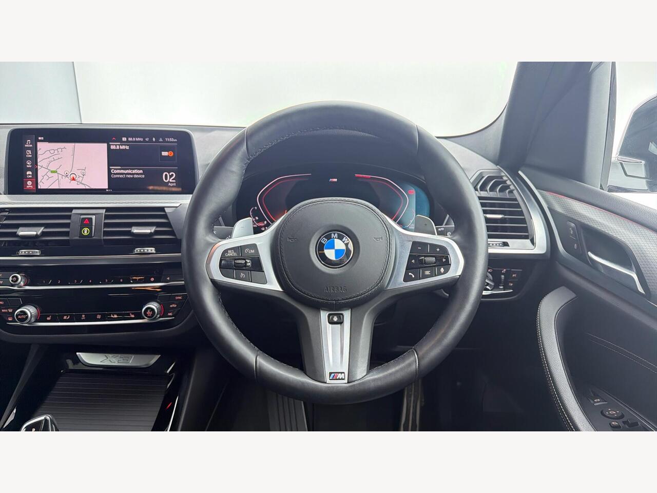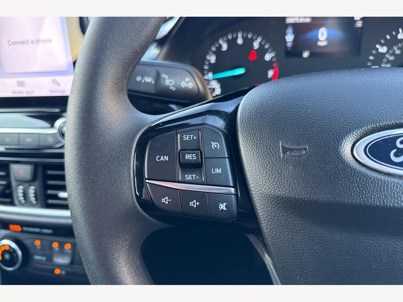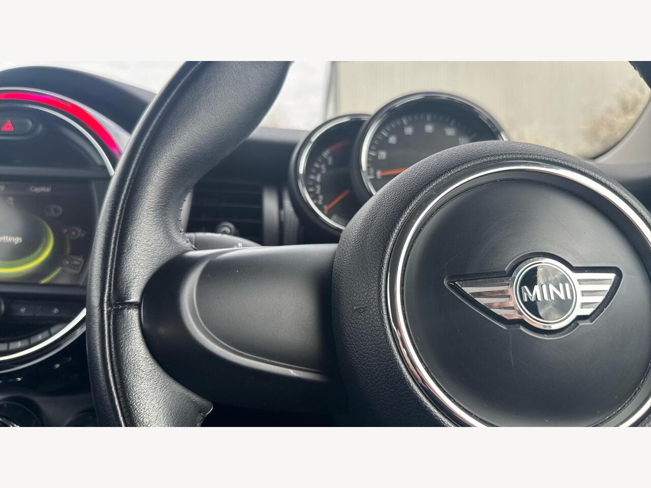 "Steering wheel, dashboard and central controls in black",