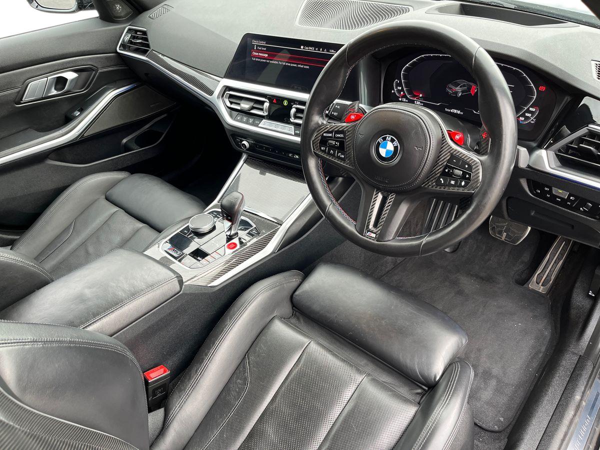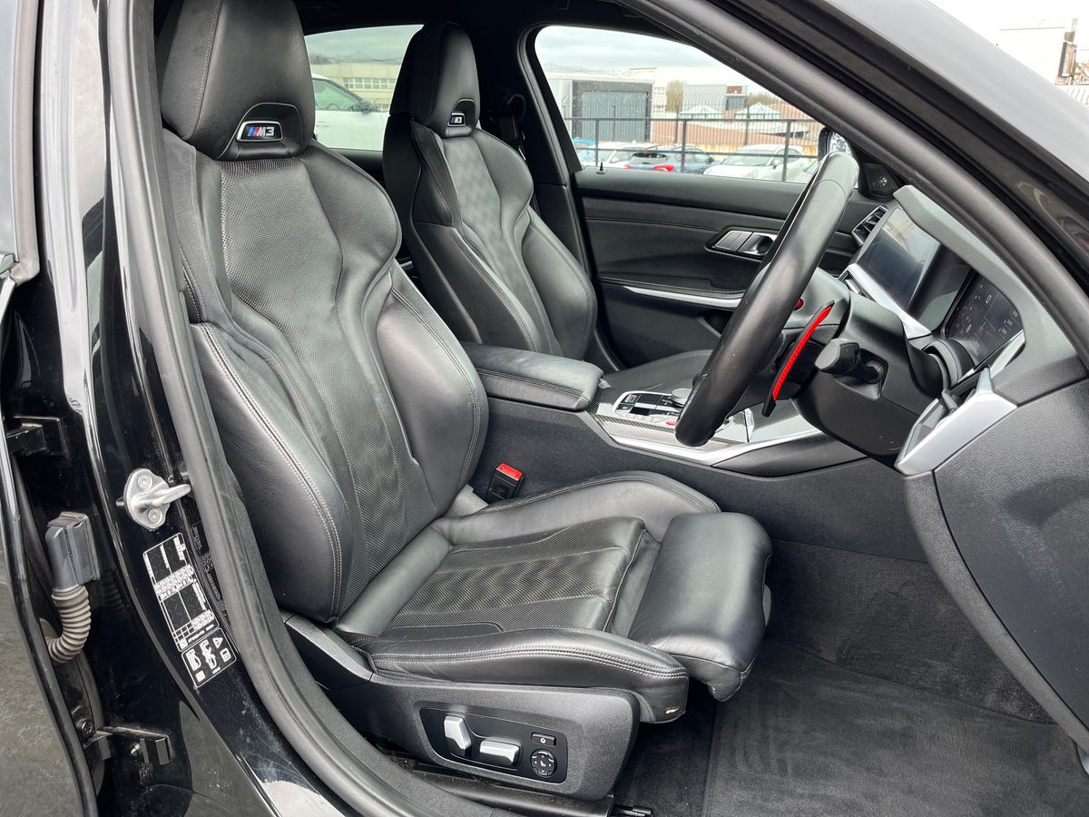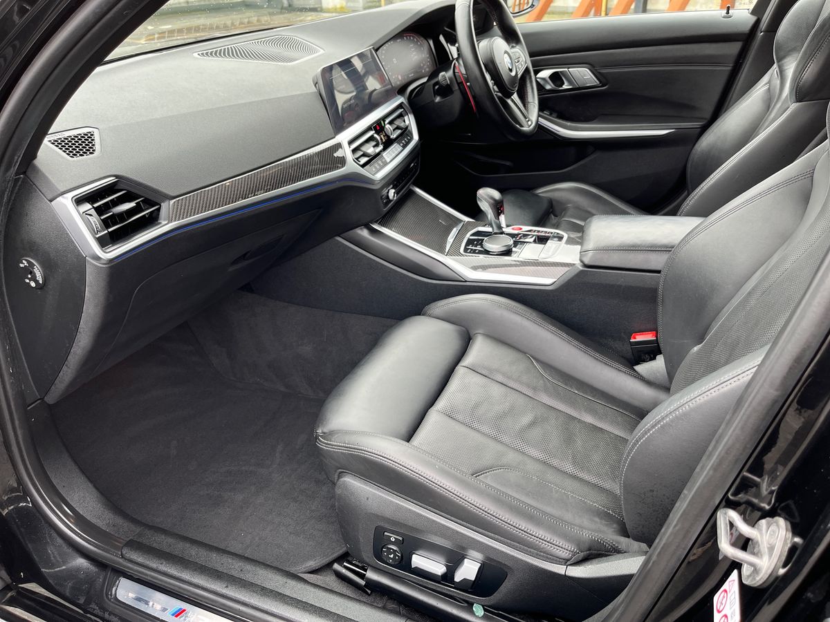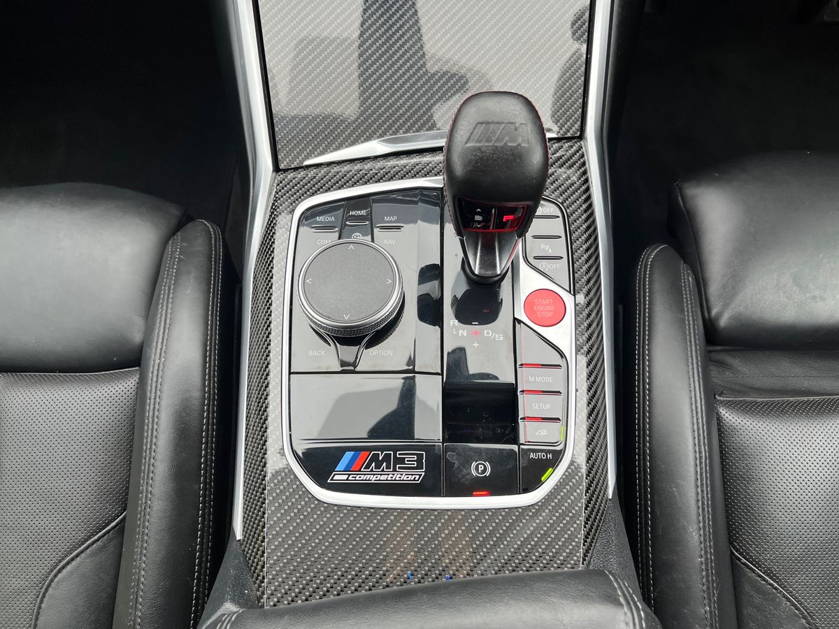 "features": "Active guard plus, Automatic start/stop system, Bluetooth functionality with Apple CarPlay/Android Auto, BMW iDrive controller on centre console, BMW legal emergency call, BMW Live Cockpit Professional sat nav system with 12.3\" instrument display and high resolution control display, BMW Online services, BMW Teleservices, Brake pad wear indicator warning light, Condition based service, Connected drive services, Door/boot open warning light, Driving experience switch, Electric Power Steering (EPS) with Servotronic, Instrument cluster with extended contents, Lights on warning, M drive buttons, Oil sensor for level and grade, warning by check control system, Oil temperature gauge, On board computer, On board diagnostics, Optimum shift indicator, Outside temperature display, Pull away assistant, Run flat indicator, Service interval indicator, Speed limiter, Widescreen display, Adaptive M Sport suspension, Double joint spring strut front axle, Electronic differential lock control (EDLC), M Drive Professional including track mode, laptimer, traction control & Drift analyser, M Sport differential, M steptronic sport transmission with drivelogic, Safety battery terminal clamp, 8 programmable favourite buttons, Auxiliary point for auxiliary devices, BMW professional radio/CD/MP3, DAB Digital radio, Harman/Kardon loudspeaker system, 3rd brake light, Acoustic glazing, Auto dimming driver's door mirror, Auto dimming rear view mirror, Automatic headlights + automatic windscreen wipers, Black chrome exhaust tailpipes, Black model designation badges, BMW emblem on engine compartment lid and tailgate, BMW high gloss shadow line with extended contents, BMW Individual shadowline lights, Body colour bumpers, Body colour door handles, Carbon fibre reinforced plastic (CFRP) roof, Day time running light, Door mirror integrated indicators, Door sill finishers with aluminium inserts, Dynamic brake lights, Electric adjustable heated door mirrors, Electric folding door mirrors, Electric front and rear windows with one touch/convenient open/close function, Follow me home headlights, Front and rear apron plastic in body colour, Front and rear bumper system, Headlight beam throw control, Heat protection, sun protection glazing, Heated rear window with automatic switch off, High beam assistant, High gloss black frameless kidney grille with M badge, LED number plate light, LED tail lights with 3D L-shaped LED light design, M designation, Mirror glass aspheric on driver's side, convex on passenger side, Rear boot, Rear fog lights, Rear reflectors, Rear right M3 competition inscription, Rear side wing doors, Reversing light, Shark fin roof aerial, Strakes in front side panel, black matt/black high-gloss, with model badge, Visible VIN plate, Welcome lighting, Windscreen wipers with integrated washing jets, 2 cupholders in front centre console, 2 x 12 V Power sockets (luggage compartment and front centre console), 2 x USB Type C ports for charging and data transmission in front centre console, 2 x USB Type C ports for charging in rear centre console, 3 folding rear headrests, 3 seat bench in 2nd row, Ambient lighting, Anthracite headlining, Battery in luggage compartment, Carbon fibre centre console incl. cover for cupholders, Carbon fibre decorative steering wheel finishers, Carbon fibre shift paddles, Carbon fibre strip in instrument panel on front passenger side, Centre console armrest with storage compartment, Compartment in front of cupholder, Driver/passenger sunvisors with illuminated vanity mirrors + covers, Electric front seats + driver memory, English handbook, Floor mats in velour, Footwell lighting, Front and rear door exit lights, Front door storage bins with bottle holder, Front interior light, Front isofix attachment + airbag deactivation, Front seat backrest width adjustment, Front seats lumbar support, Front/rear door armrests, Gearshift lever with embossed M badge, Heated front seats, Height adjustable front headrests, Interior mirror lighting, Isofix on 2nd row outer seats, Lockable/illuminated glovebox, Luggage compartment lighting, Manual 40:20:40 split folding rear seat with two tilt positions for backrest, Rake/reach adjustable steering wheel, Single front passenger seat, Storage compartment in rear doors, Storage tray and compartment with cover in centre console, Three zone automatic air conditioning, Through loading system, Toolkit located in luggage compartment, Wireless charging tray, Additional storage compartment pack - M3, Connected package professional - M3, High gloss shadowline exterior trim pack - M3, 3 point seatbelts on all seats, ABS/EBD, Automatic Stability Control (ASC), Brake energy regeneration, Brake fade compensation, Compound structure brake discs, Cornering brake control (CBC), Crash sensor, Driver/Front Passenger airbags, Dry braking, Dynamic brake control, Dynamic Stability Control with M Dynamic mode, Dynamic Traction Control - DTC, Electromechanical parking brake, Front and rear head airbags, Front seat side impact airbags, Front seatbelt pretensioners + load limiters, Hill start assist, M Sport seat belts, Rear child proof door locks, Seatbelt warning, Side impact protection, Two tone horn, Tyre pressure sensor, Warning triangle and first aid kit, Digital key, Electronic immobiliser, Remote central locking, Thatcham cat 1 remote alarm, Vehicle Key with 4 buttons including the integrated key, Galvanic finish to control surrounds, High gloss black interior trim, Tyre repair kit, ",