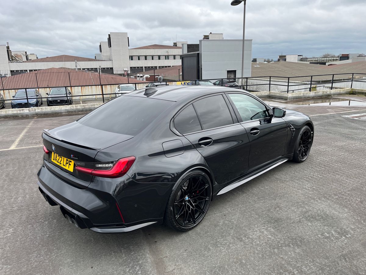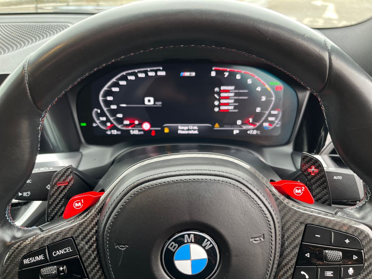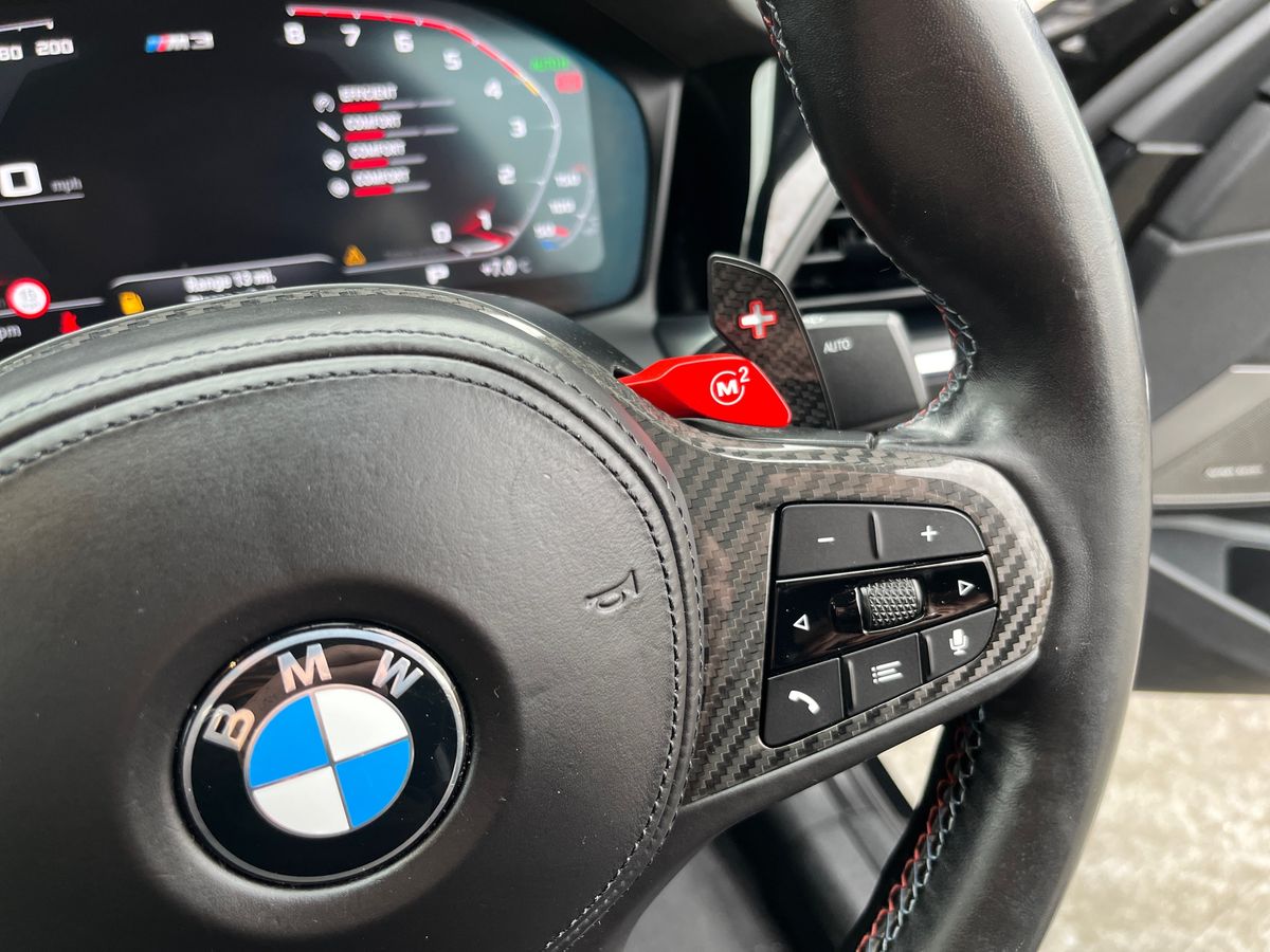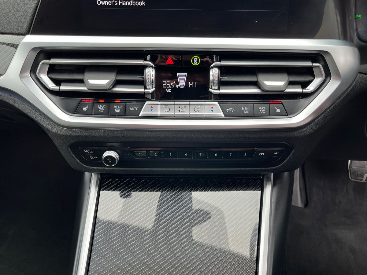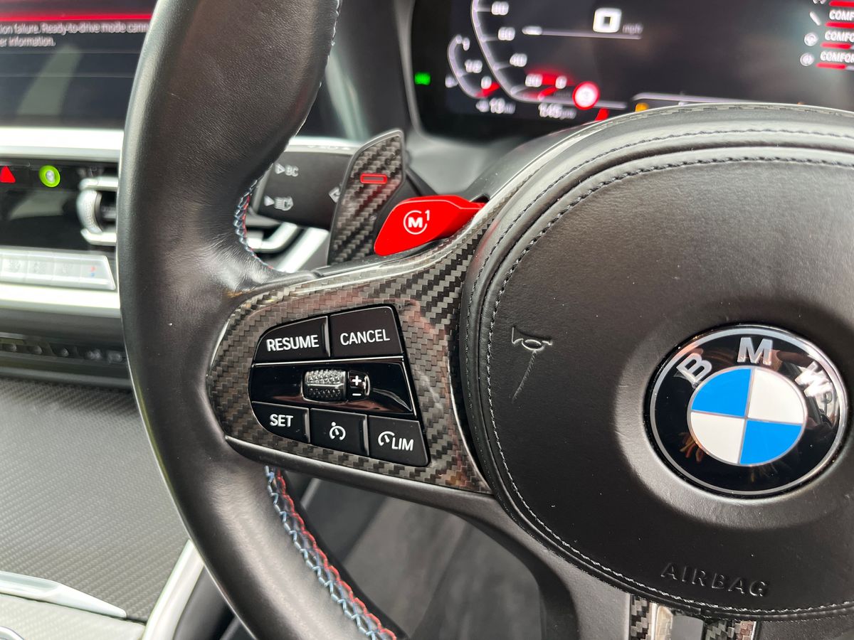 "features": "Active guard plus, Automatic start/stop system, Bluetooth functionality with Apple CarPlay/Android Auto, BMW iDrive controller on centre console, BMW legal emergency call, BMW Live Cockpit Professional sat nav system with 12.3\" instrument display and high resolution control display, BMW Online services, BMW Teleservices, Brake pad wear indicator warning light, Condition based service, Connected drive services, Door/boot open warning light, Driving experience switch, Electric Power Steering (EPS) with Servotronic, Instrument cluster with extended contents, Lights on warning, M drive buttons, Oil sensor for level and grade, warning by check control system, Oil temperature gauge, On board computer, On board diagnostics, Optimum shift indicator, Outside temperature display, Pull away assistant, Run flat indicator, Service interval indicator, Speed limiter, Widescreen display, Adaptive M Sport suspension, Double joint spring strut front axle, Electronic differential lock control (EDLC), M Drive Professional including track mode, laptimer, traction control & Drift analyser, M Sport differential, M steptronic sport transmission with drivelogic, Safety battery terminal clamp, 8 programmable favourite buttons, Auxiliary point for auxiliary devices, BMW professional radio/CD/MP3, DAB Digital radio, Harman/Kardon loudspeaker system, 3rd brake light, Acoustic glazing, Auto dimming driver's door mirror, Auto dimming rear view mirror, Automatic headlights + automatic windscreen wipers, Black chrome exhaust tailpipes, Black model designation badges, BMW emblem on engine compartment lid and tailgate, BMW high gloss shadow line with extended contents, BMW Individual shadowline lights, Body colour bumpers, Body colour door handles, Carbon fibre reinforced plastic (CFRP) roof, Day time running light, Door mirror integrated indicators, Door sill finishers with aluminium inserts, Dynamic brake lights, Electric adjustable heated door mirrors, Electric folding door mirrors, Electric front and rear windows with one touch/convenient open/close function, Follow me home headlights, Front and rear apron plastic in body colour, Front and rear bumper system, Headlight beam throw control, Heat protection, sun protection glazing, Heated rear window with automatic switch off, High beam assistant, High gloss black frameless kidney grille with M badge, LED number plate light, LED tail lights with 3D L-shaped LED light design, M designation, Mirror glass aspheric on driver's side, convex on passenger side, Rear boot, Rear fog lights, Rear reflectors, Rear right M3 competition inscription, Rear side wing doors, Reversing light, Shark fin roof aerial, Strakes in front side panel, black matt/black high-gloss, with model badge, Visible VIN plate, Welcome lighting, Windscreen wipers with integrated washing jets, 2 cupholders in front centre console, 2 x 12 V Power sockets (luggage compartment and front centre console), 2 x USB Type C ports for charging and data transmission in front centre console, 2 x USB Type C ports for charging in rear centre console, 3 folding rear headrests, 3 seat bench in 2nd row, Ambient lighting, Anthracite headlining, Battery in luggage compartment, Carbon fibre centre console incl. cover for cupholders, Carbon fibre decorative steering wheel finishers, Carbon fibre shift paddles, Carbon fibre strip in instrument panel on front passenger side, Centre console armrest with storage compartment, Compartment in front of cupholder, Driver/passenger sunvisors with illuminated vanity mirrors + covers, Electric front seats + driver memory, English handbook, Floor mats in velour, Footwell lighting, Front and rear door exit lights, Front door storage bins with bottle holder, Front interior light, Front isofix attachment + airbag deactivation, Front seat backrest width adjustment, Front seats lumbar support, Front/rear door armrests, Gearshift lever with embossed M badge, Heated front seats, Height adjustable front headrests, Interior mirror lighting, Isofix on 2nd row outer seats, Lockable/illuminated glovebox, Luggage compartment lighting, Manual 40:20:40 split folding rear seat with two tilt positions for backrest, Rake/reach adjustable steering wheel, Single front passenger seat, Storage compartment in rear doors, Storage tray and compartment with cover in centre console, Three zone automatic air conditioning, Through loading system, Toolkit located in luggage compartment, Wireless charging tray, Additional storage compartment pack - M3, Connected package professional - M3, High gloss shadowline exterior trim pack - M3, 3 point seatbelts on all seats, ABS/EBD, Automatic Stability Control (ASC), Brake energy regeneration, Brake fade compensation, Compound structure brake discs, Cornering brake control (CBC), Crash sensor, Driver/Front Passenger airbags, Dry braking, Dynamic brake control, Dynamic Stability Control with M Dynamic mode, Dynamic Traction Control - DTC, Electromechanical parking brake, Front and rear head airbags, Front seat side impact airbags, Front seatbelt pretensioners + load limiters, Hill start assist, M Sport seat belts, Rear child proof door locks, Seatbelt warning, Side impact protection, Two tone horn, Tyre pressure sensor, Warning triangle and first aid kit, Digital key, Electronic immobiliser, Remote central locking, Thatcham cat 1 remote alarm, Vehicle Key with 4 buttons including the integrated key, Galvanic finish to control surrounds, High gloss black interior trim, Tyre repair kit, ",