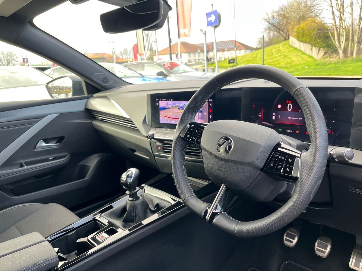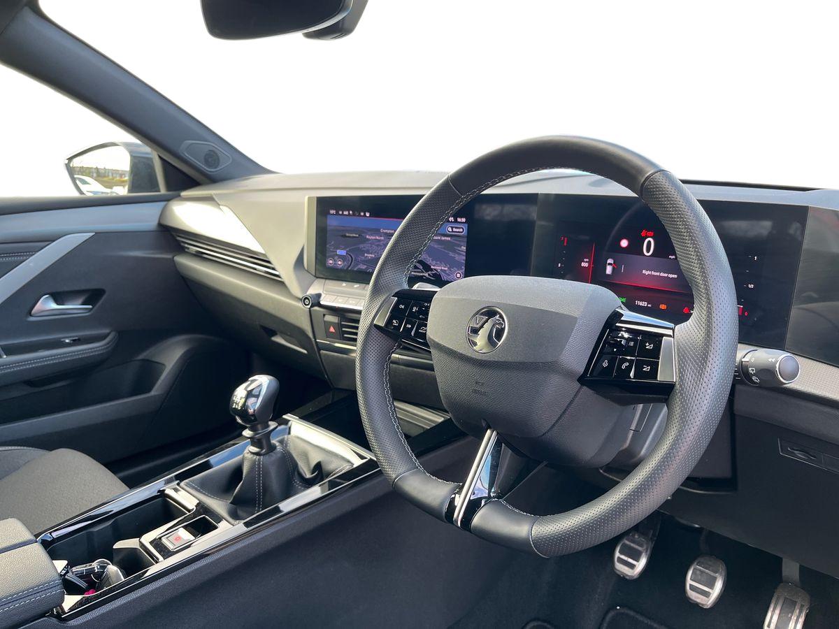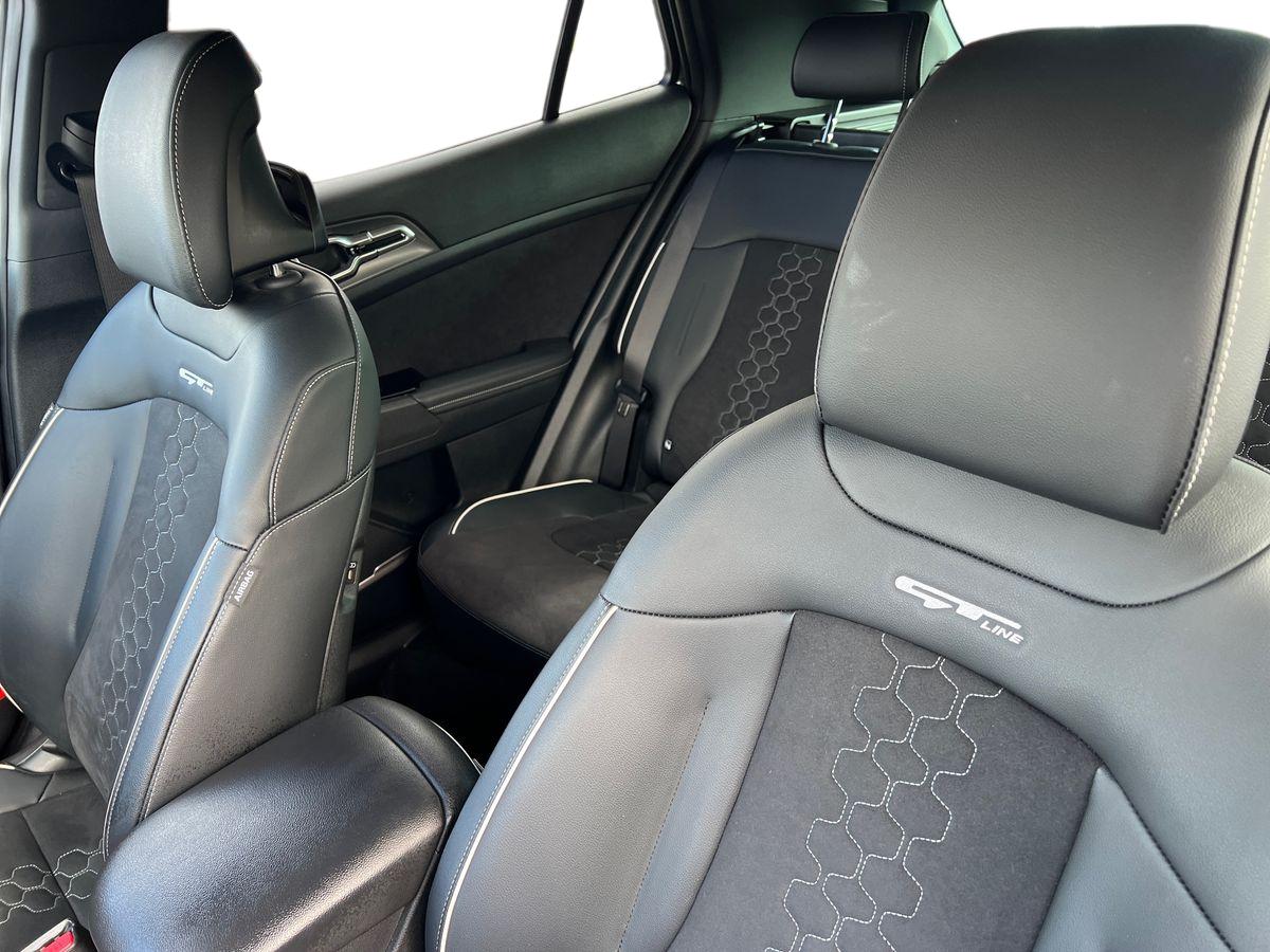 "D-Shaped sports leather steering wheel and perforated inserts with GT-Line logo",