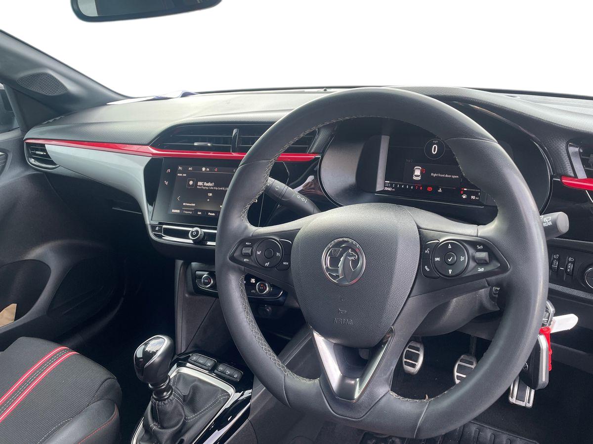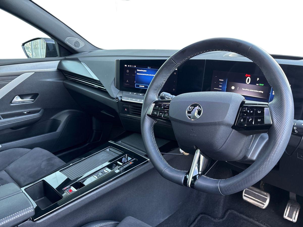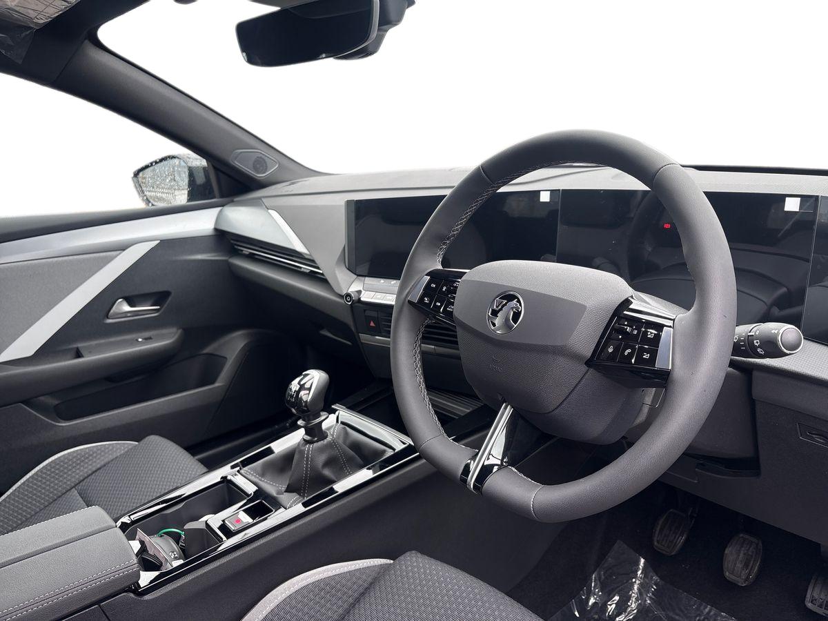 "D-Shaped sports leather steering wheel and perforated inserts with GT-Line logo",