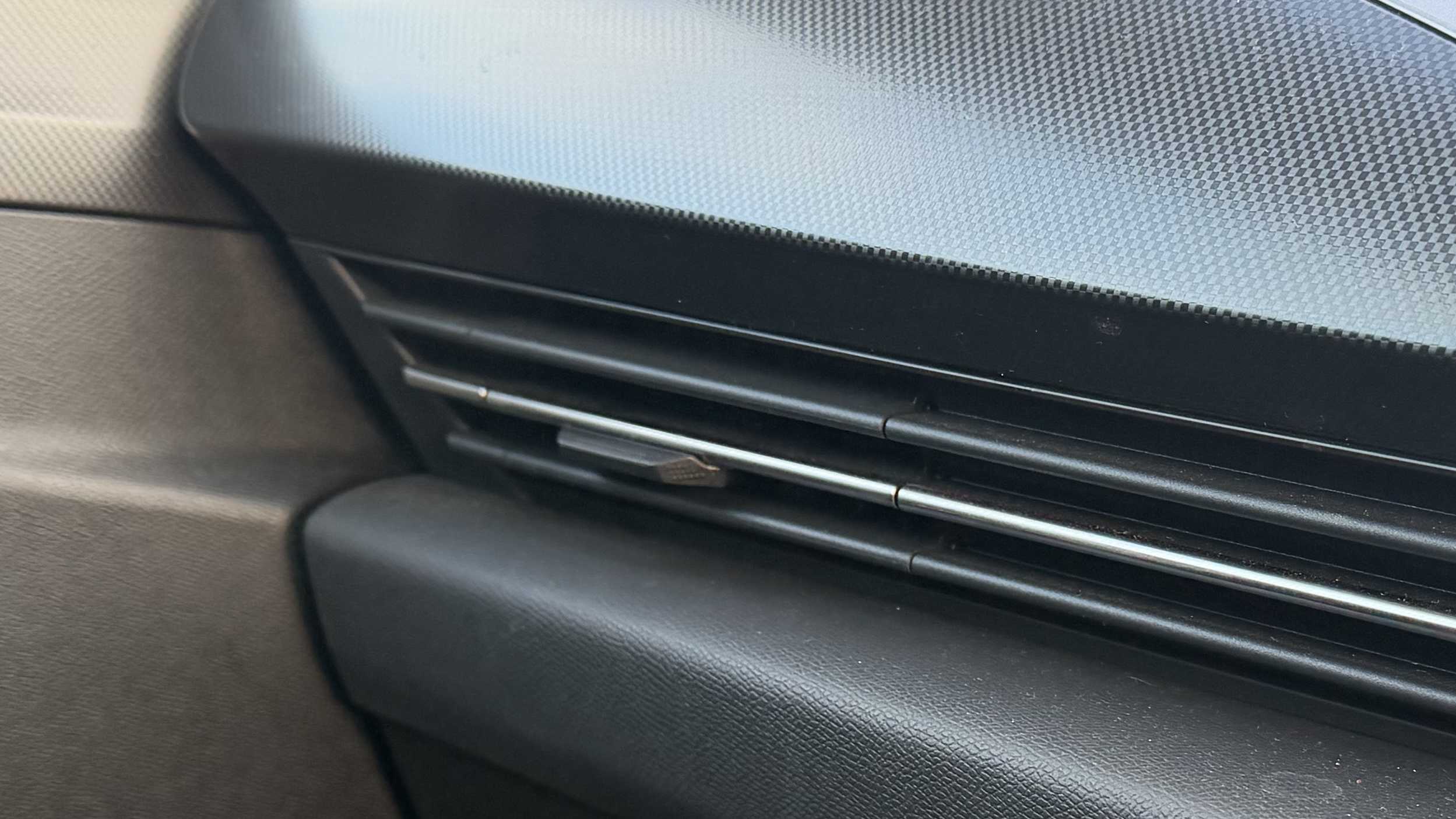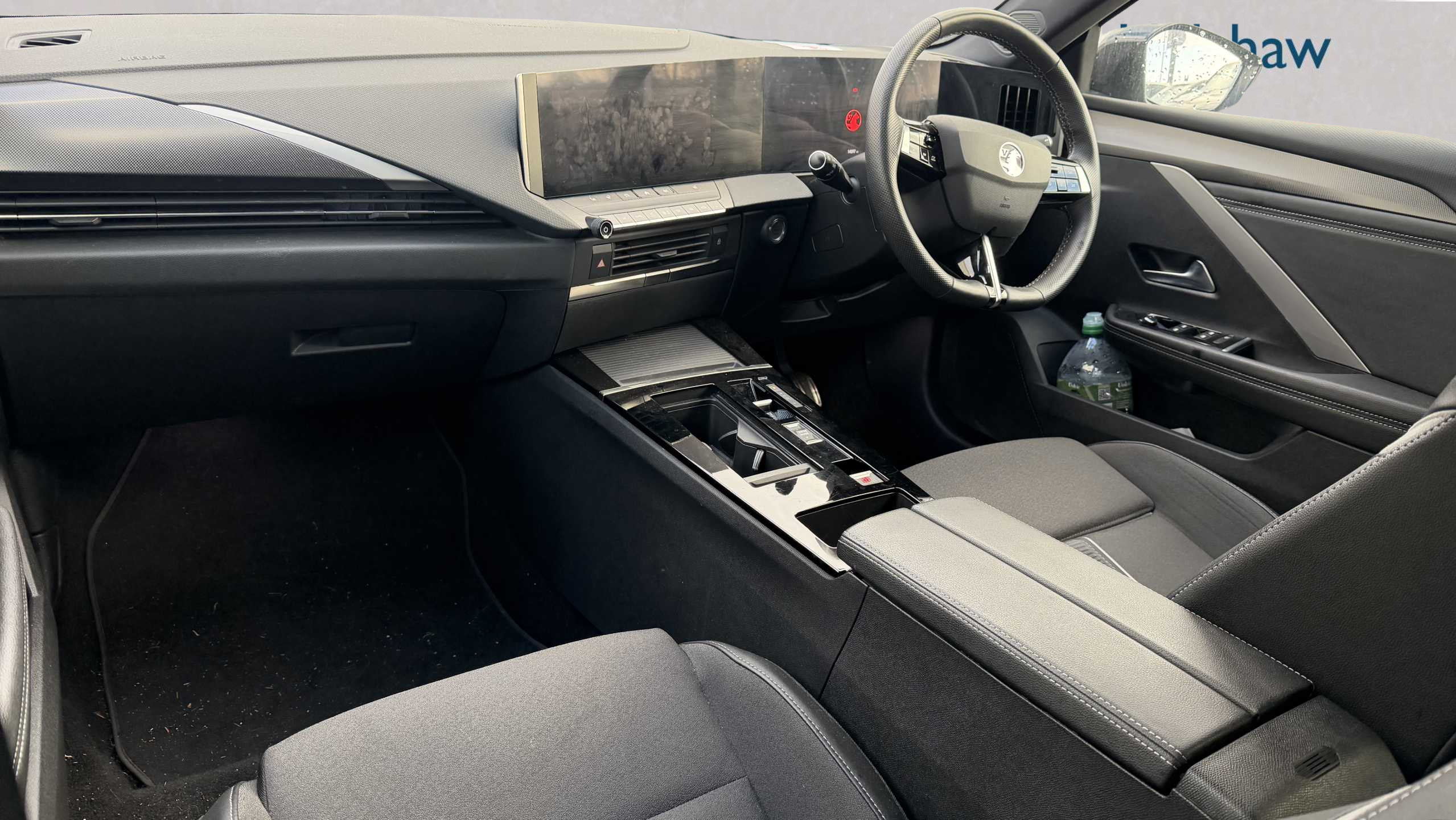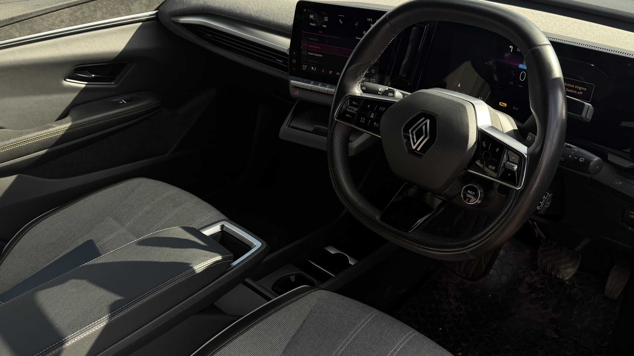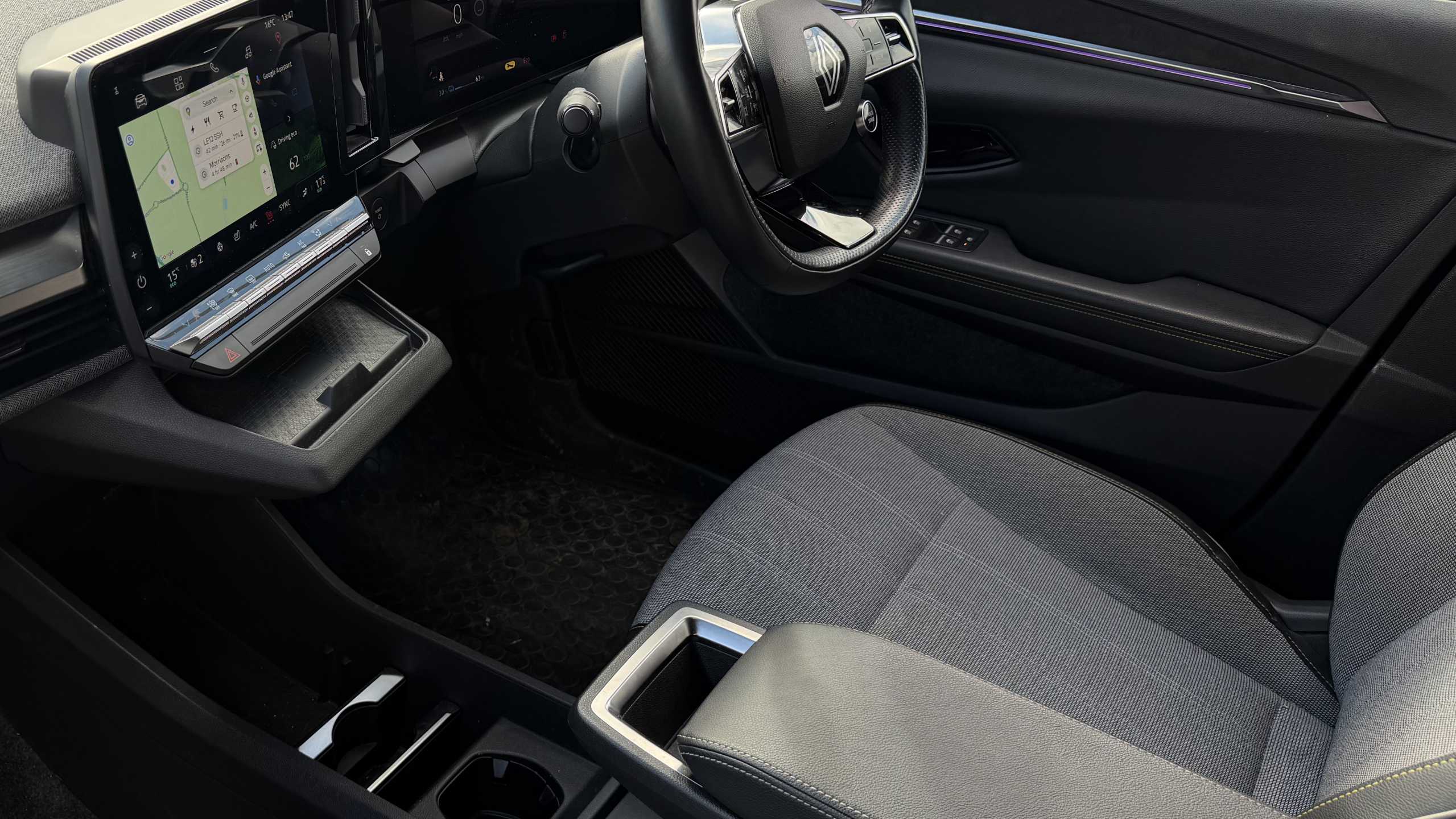 "Anthracite linestructure lime wood trim with mixed fabric look metal finish centre console"