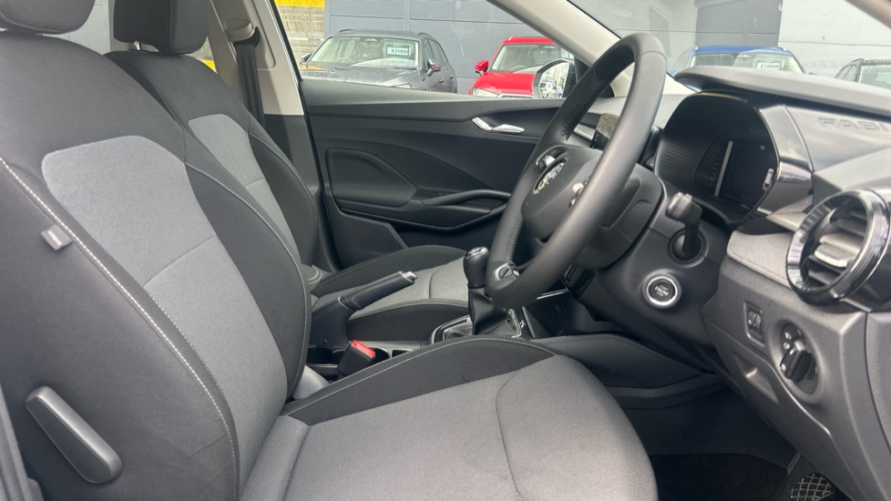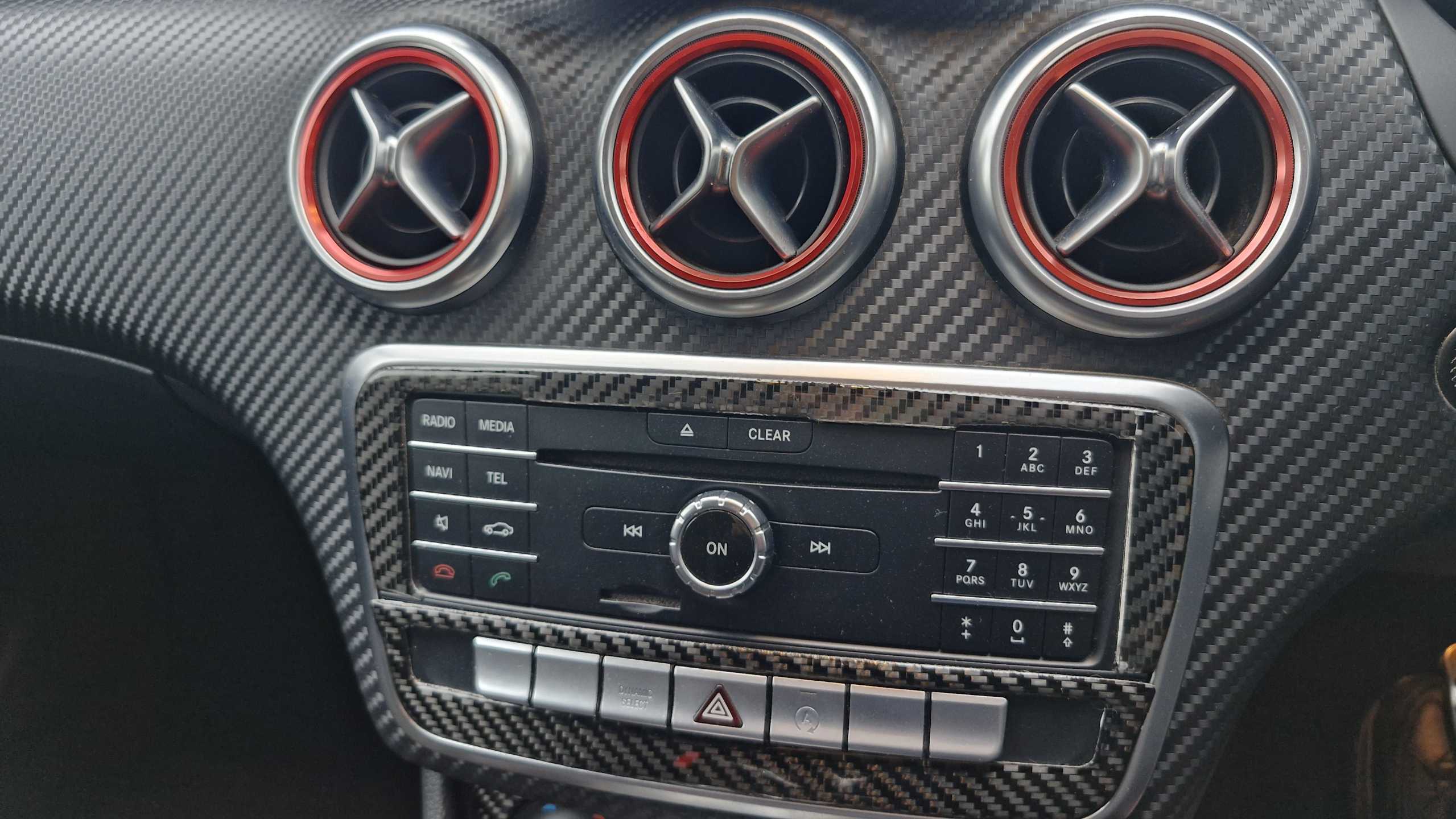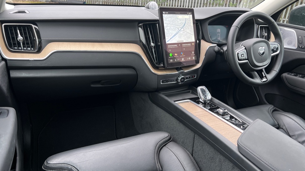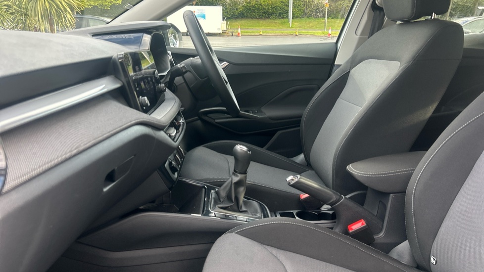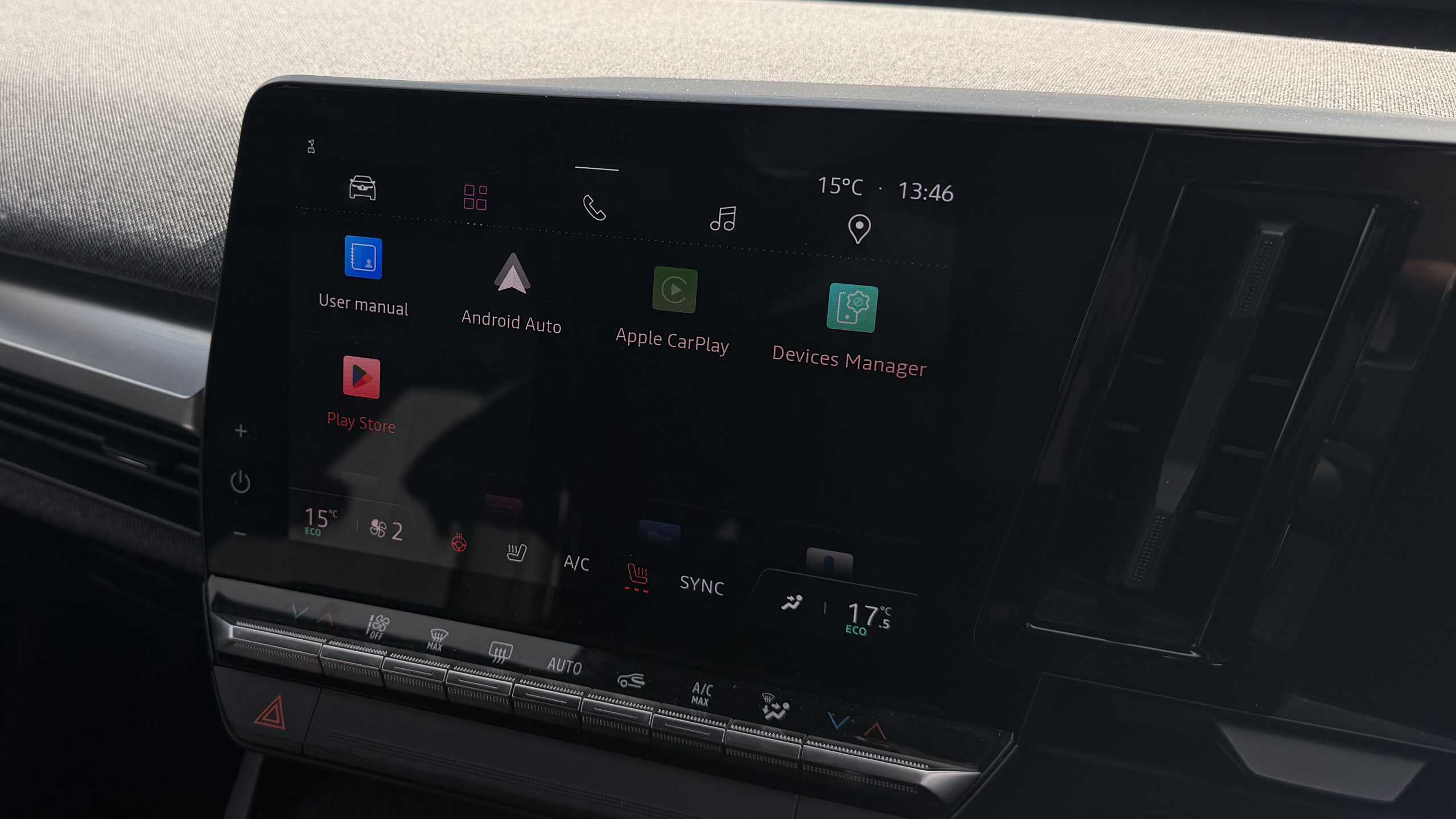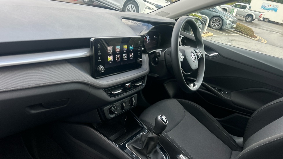 "Anthracite linestructure lime wood trim with mixed fabric look metal finish centre console"
