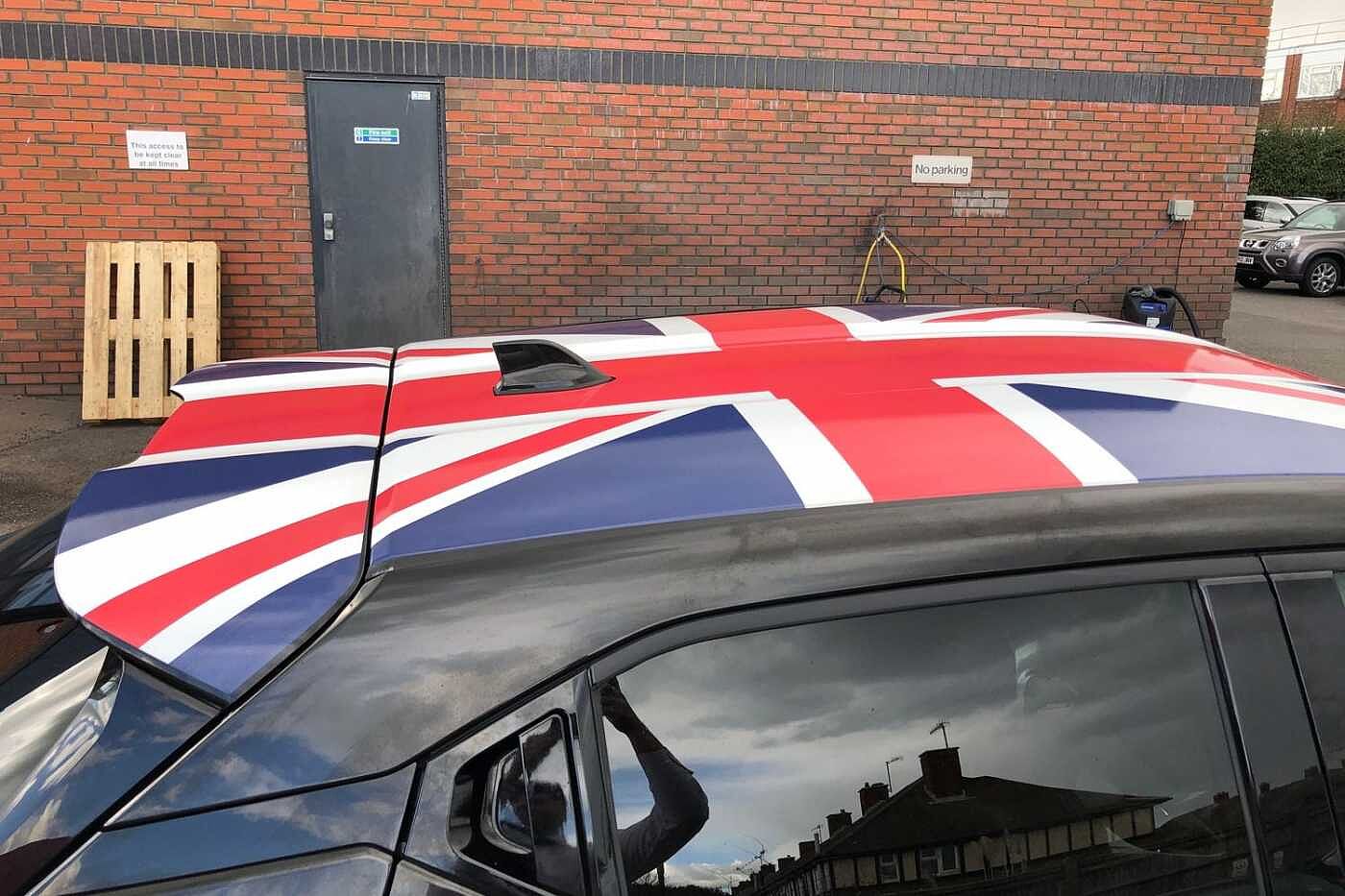 "Satin aluminium side window graphic",
