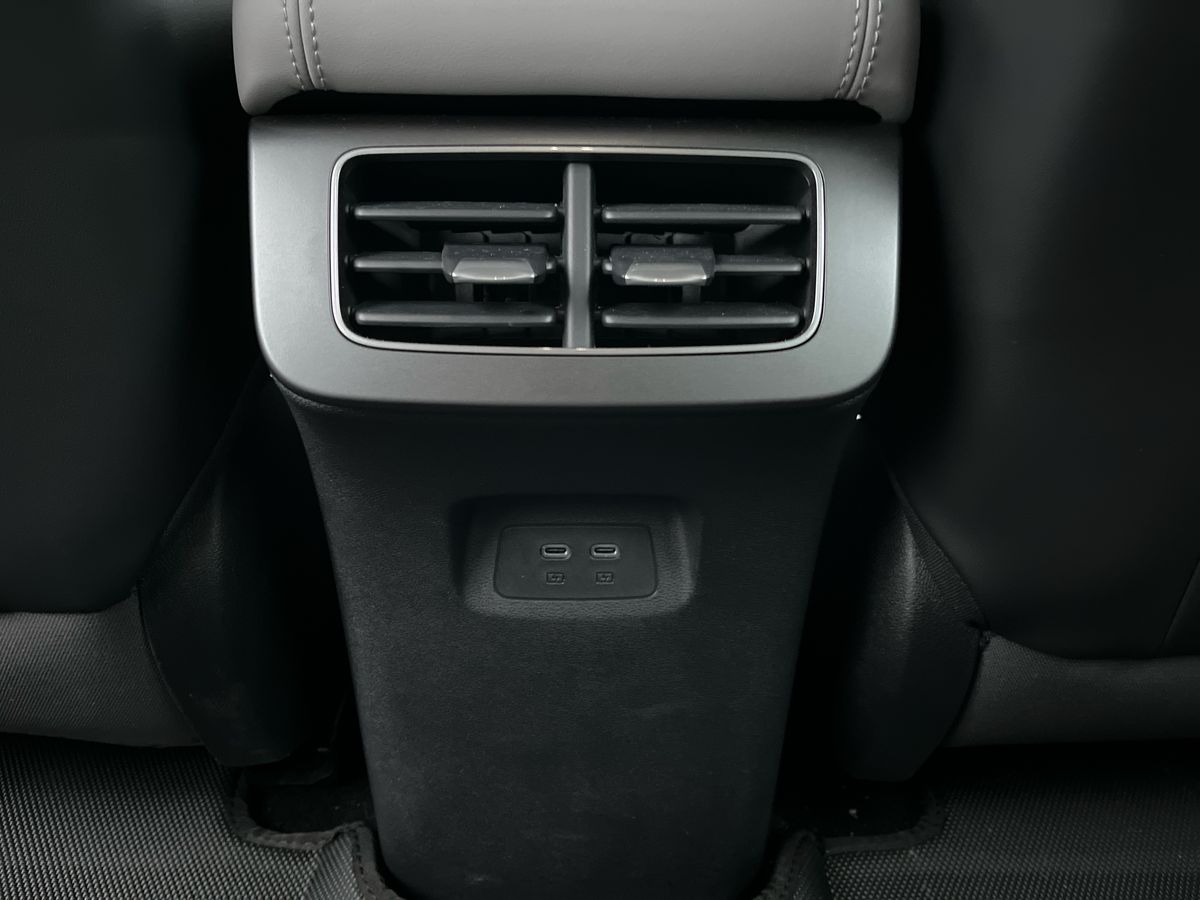 "2 USB charging ports in front inner central armrest",
