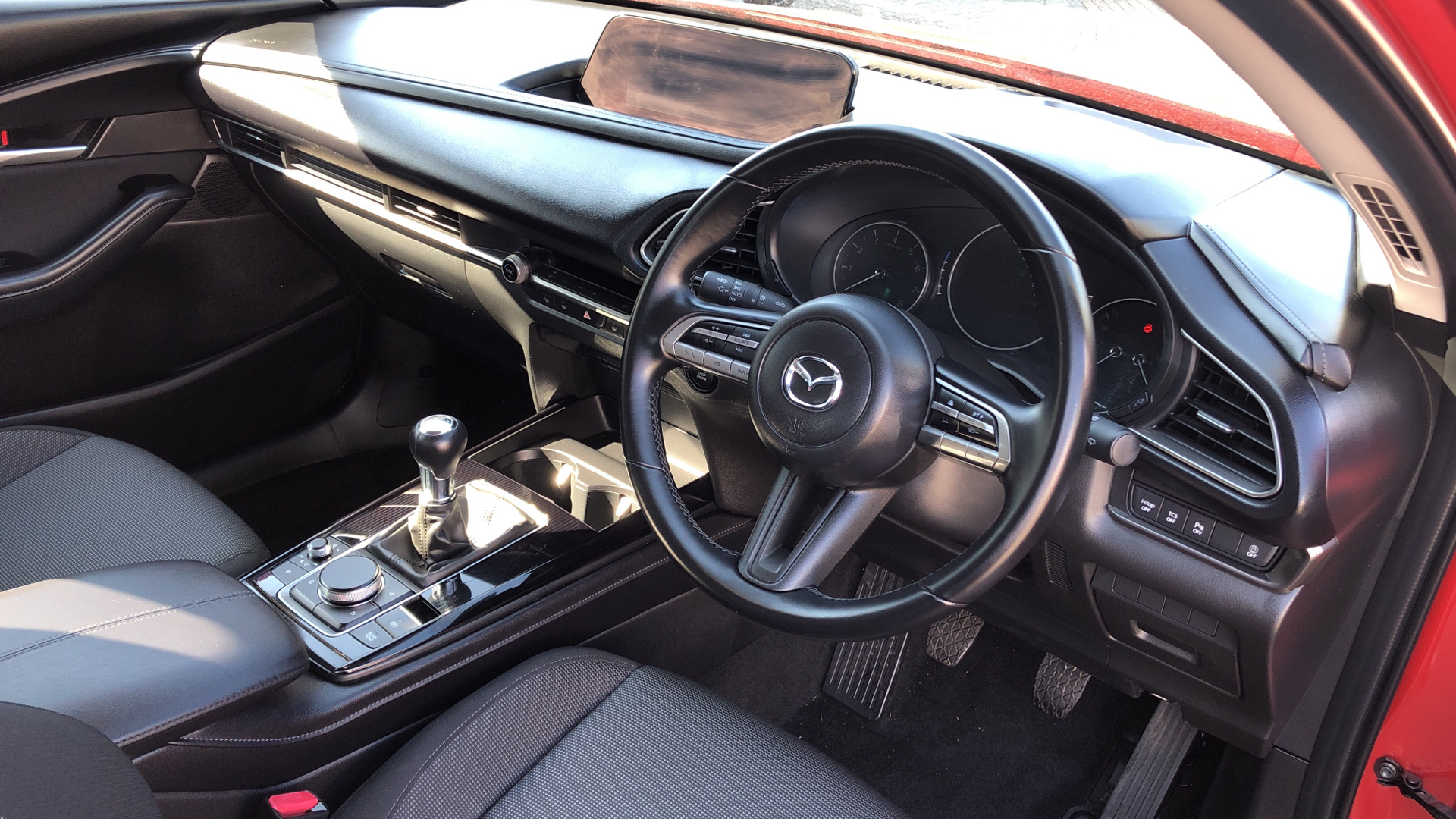 "remarks": "Specification of our Mazda CX-30 includes Mazda Navigation, Heated Front Seats, DAB Radio, Cruise Control with Speed Limiter and even Reverse Camera. Navigate your world effortlessly with the 8.8in TFT Colour Centre Display and integrated Apple CarPlay and Android Auto. Stay connected through integrated Bluetooth and guided by the Mazda Navigation System. Safety meets sophistication with Blind Spot Monitoring, Rear Cross Traffic Alert, and Mazda Radar Cruise Control. Enjoy precise control with the Multimedia Commander. Effortless parking becomes reality with front and rear sensors, and a reversing camera. Comfort awaits with three-stage heated front seats. Elevate your drive with Mazda.",