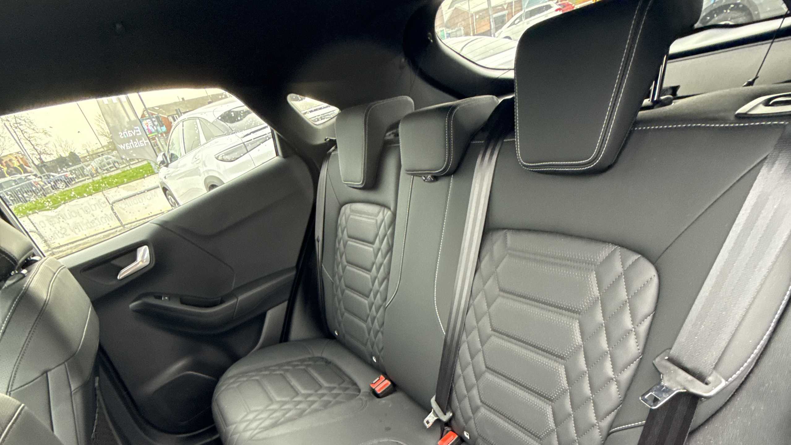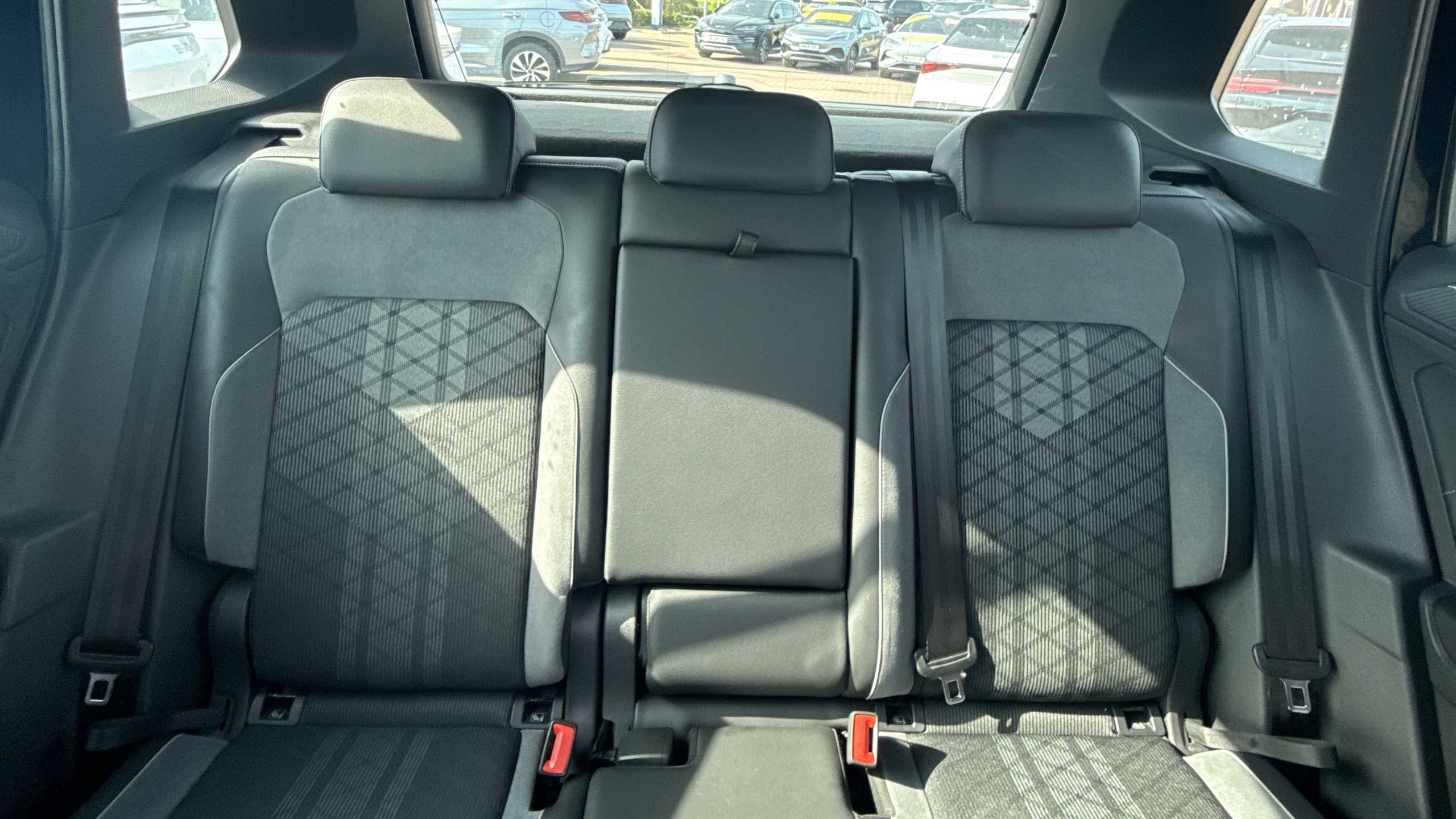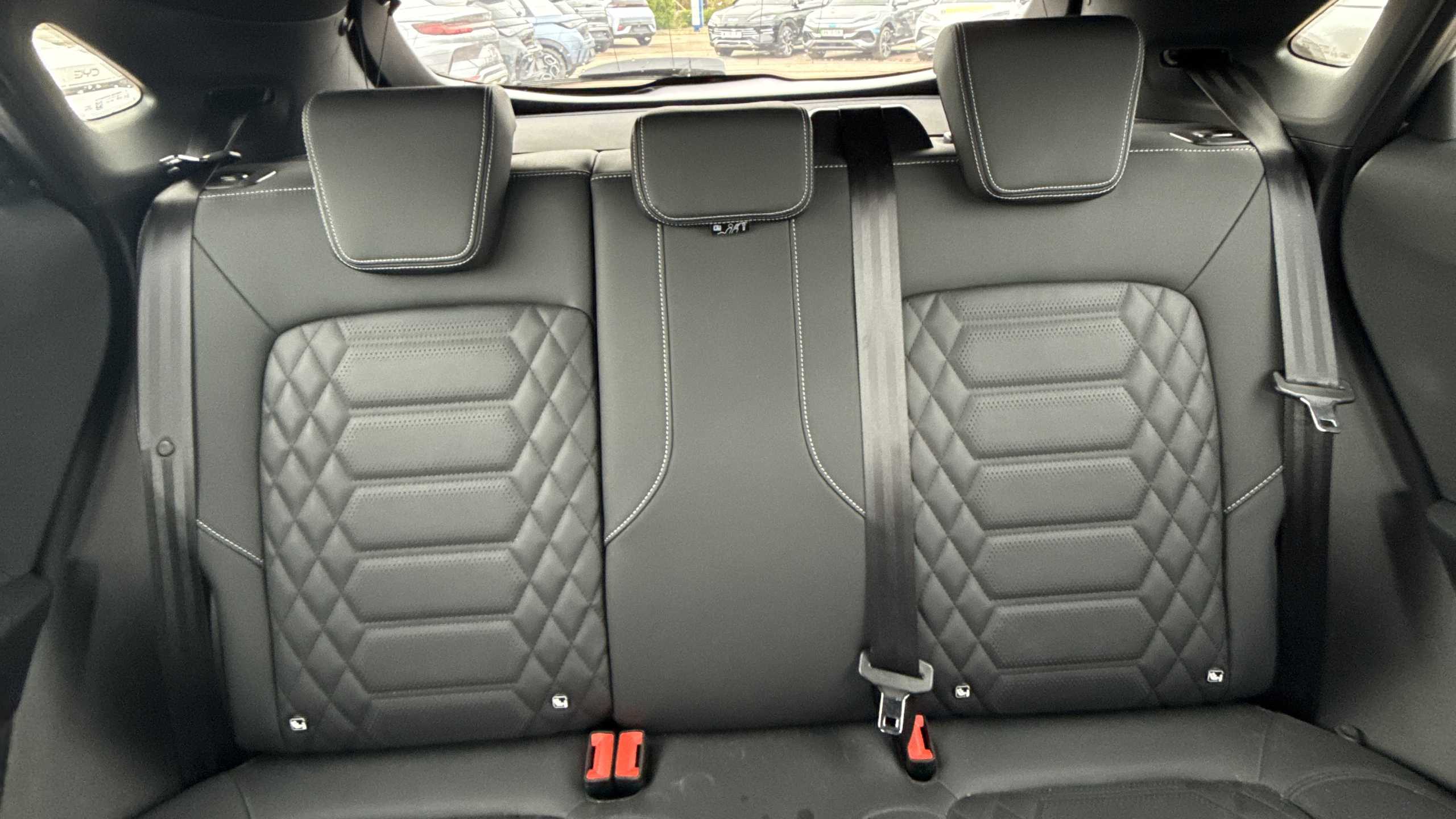"Black and red accents front door armrest",