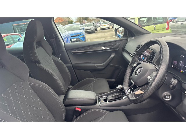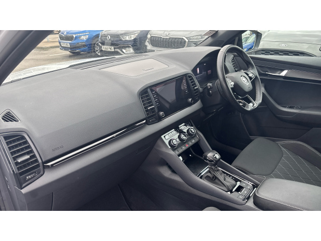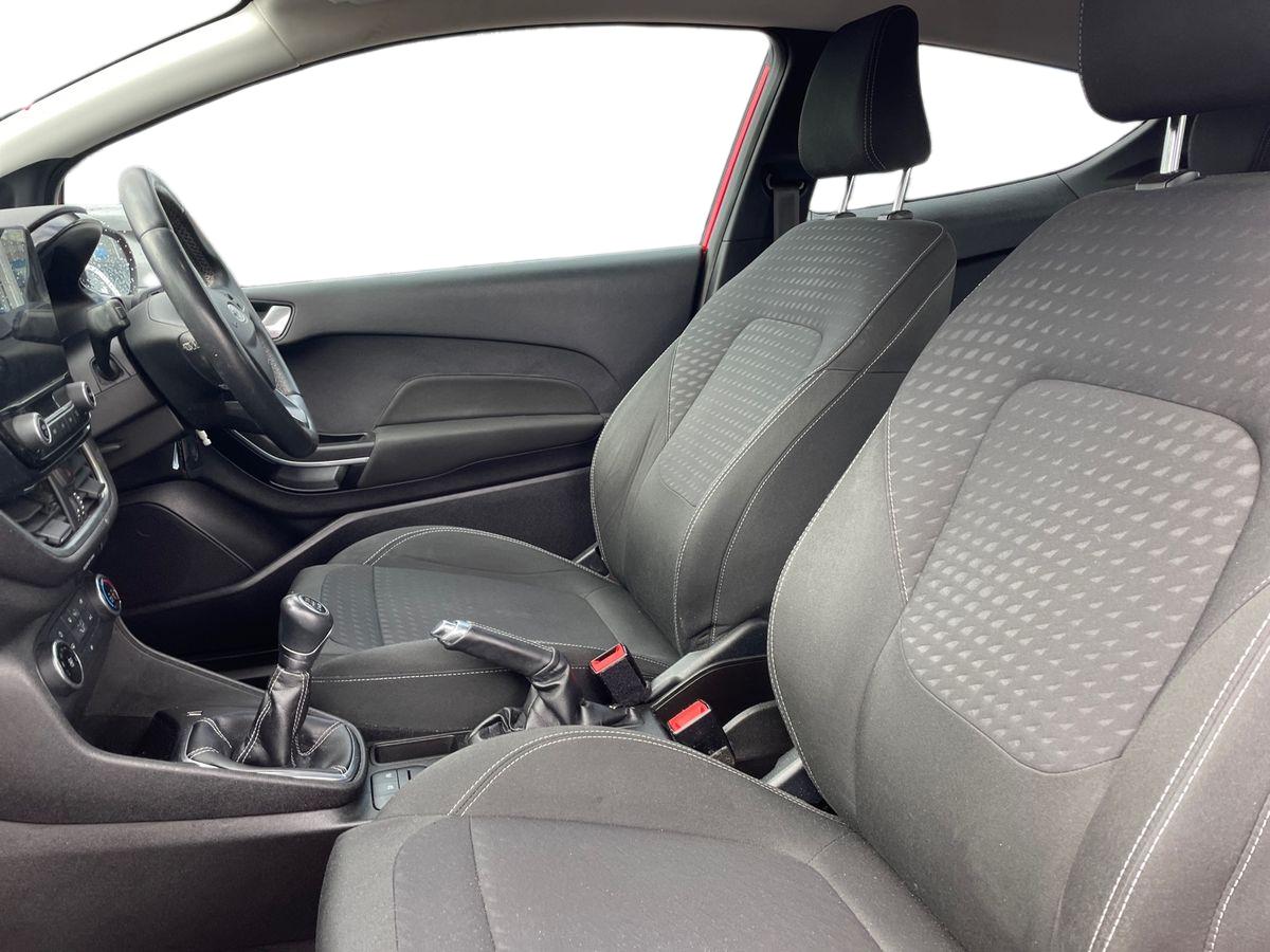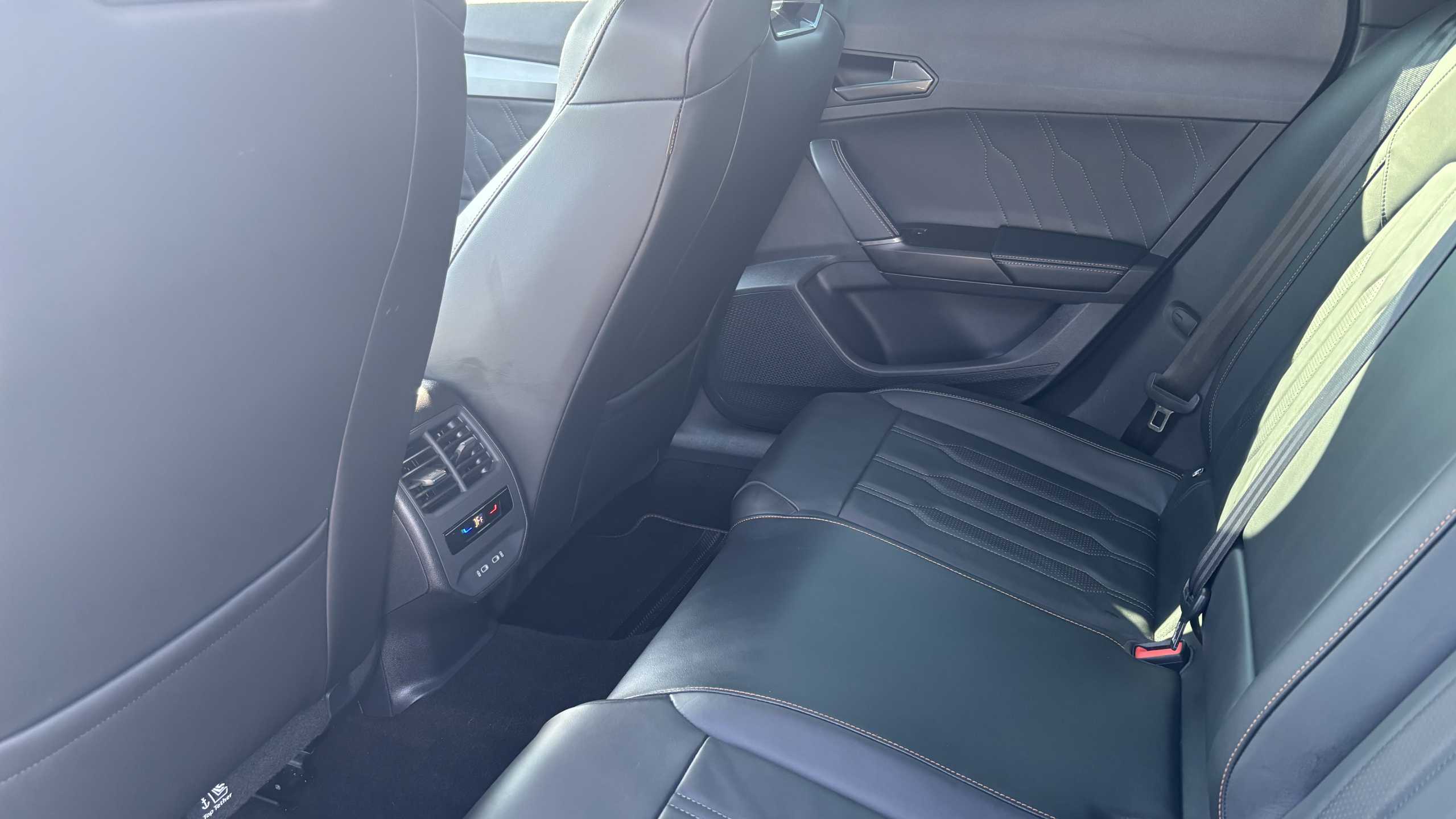 "Black and red accents front door armrest",