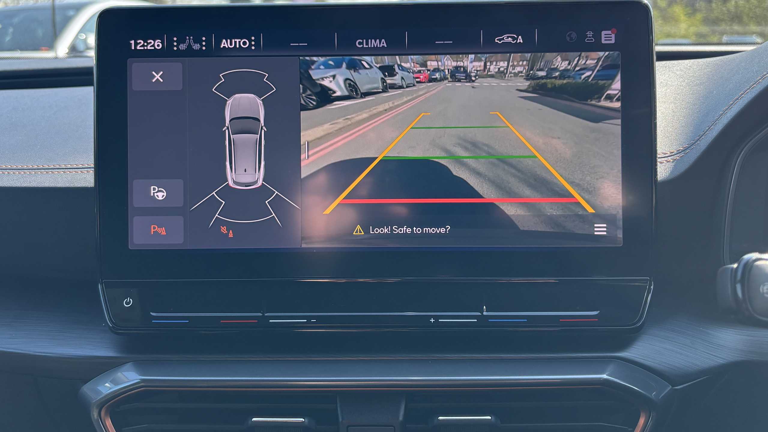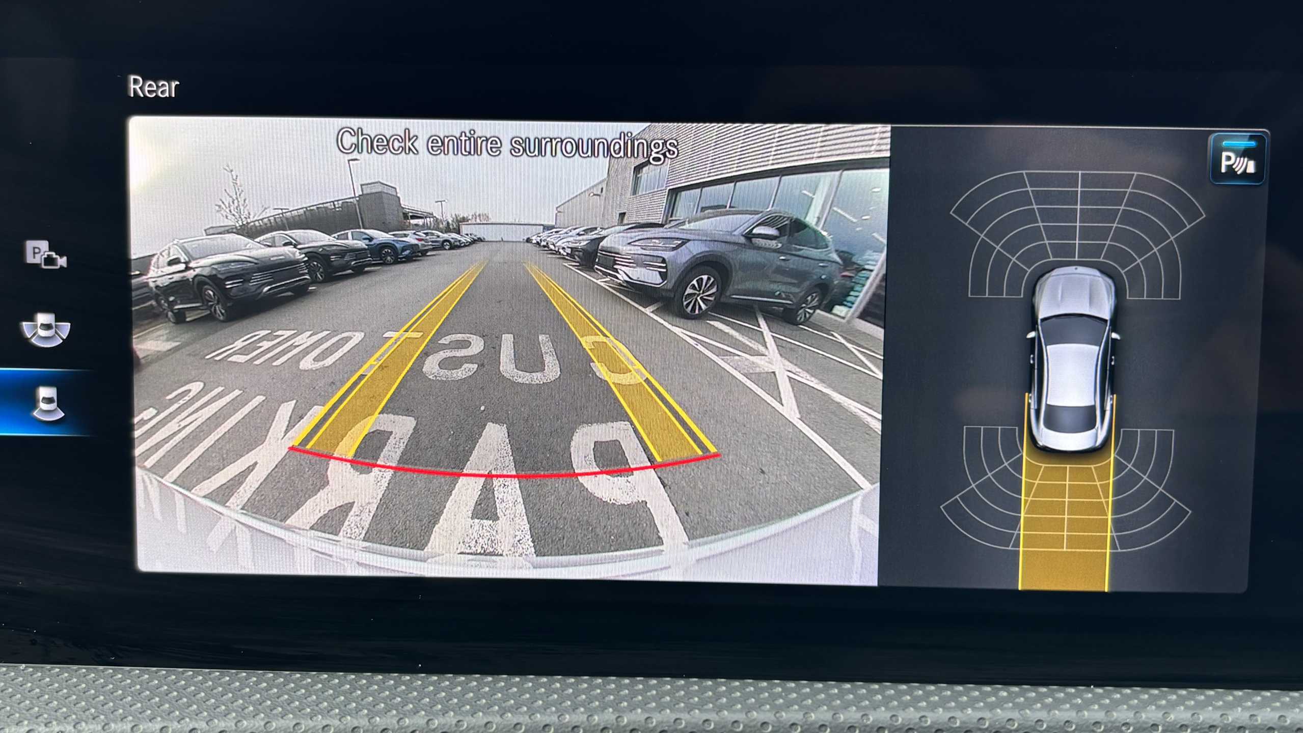 "Reversing camera system with dynamic guidelines (Integrated into centre fascia screen)",