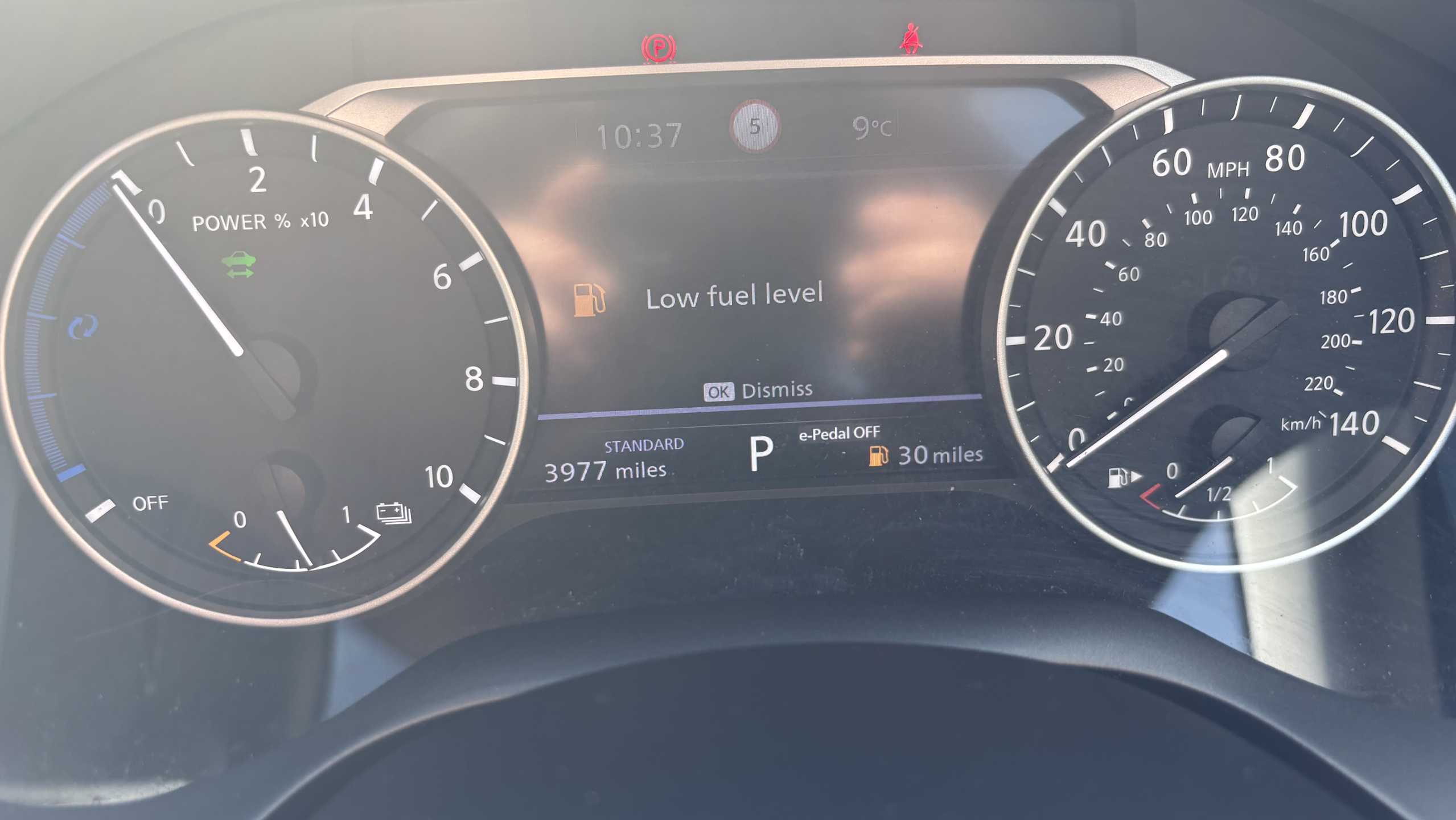 "Digital fuel gauge with low fuel level warning light",