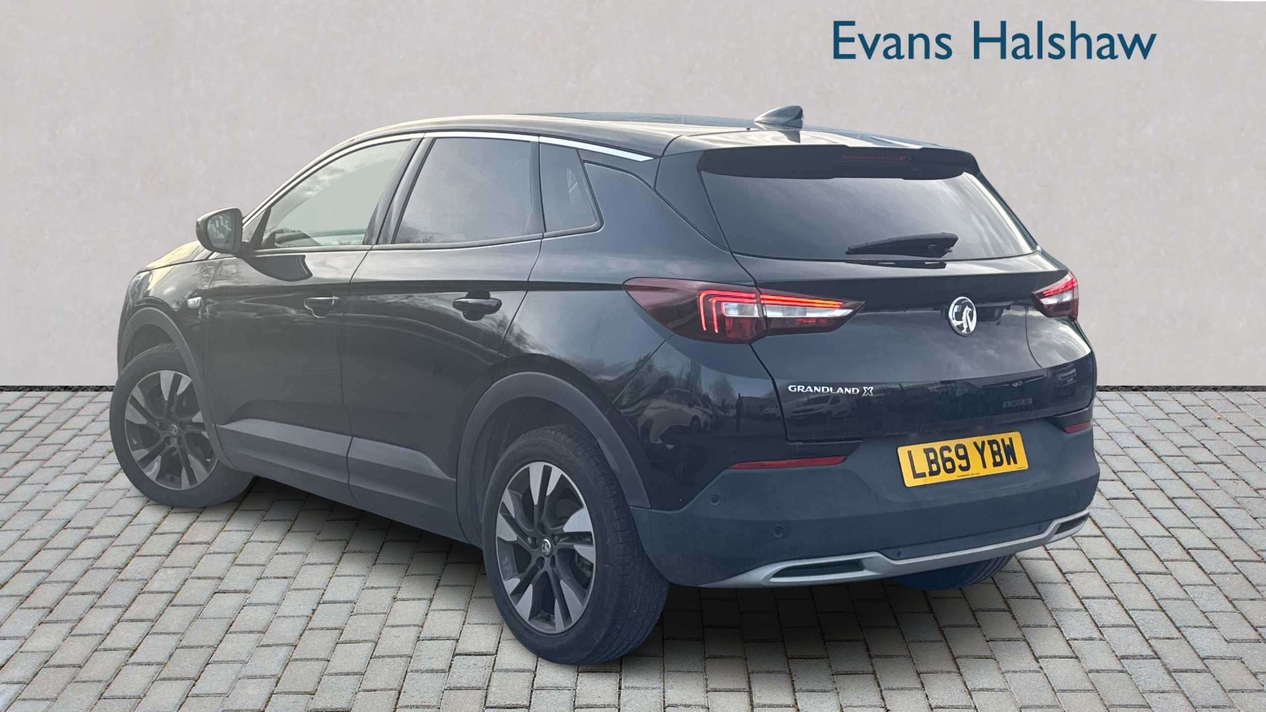 "High gloss black Griffin for Vizor and tailgate with high gloss black Grandland tailgate lettering",