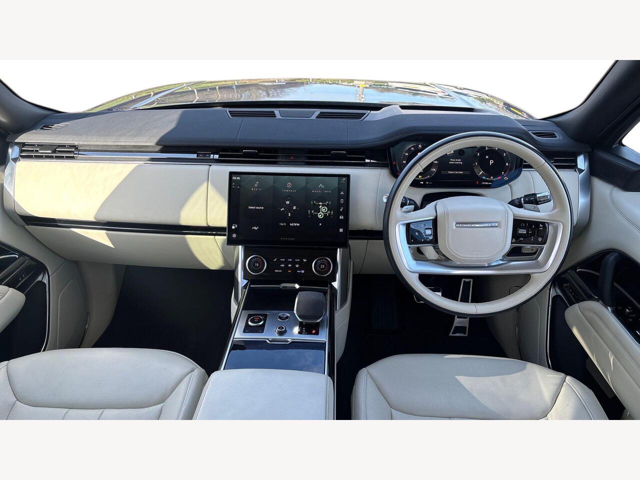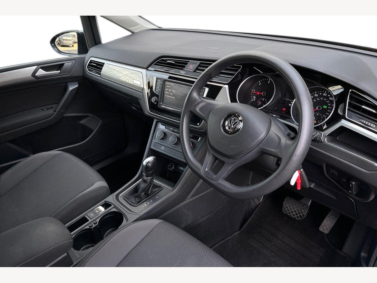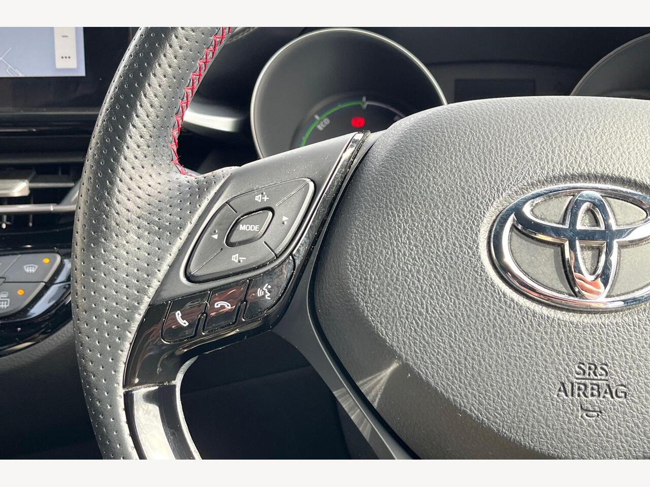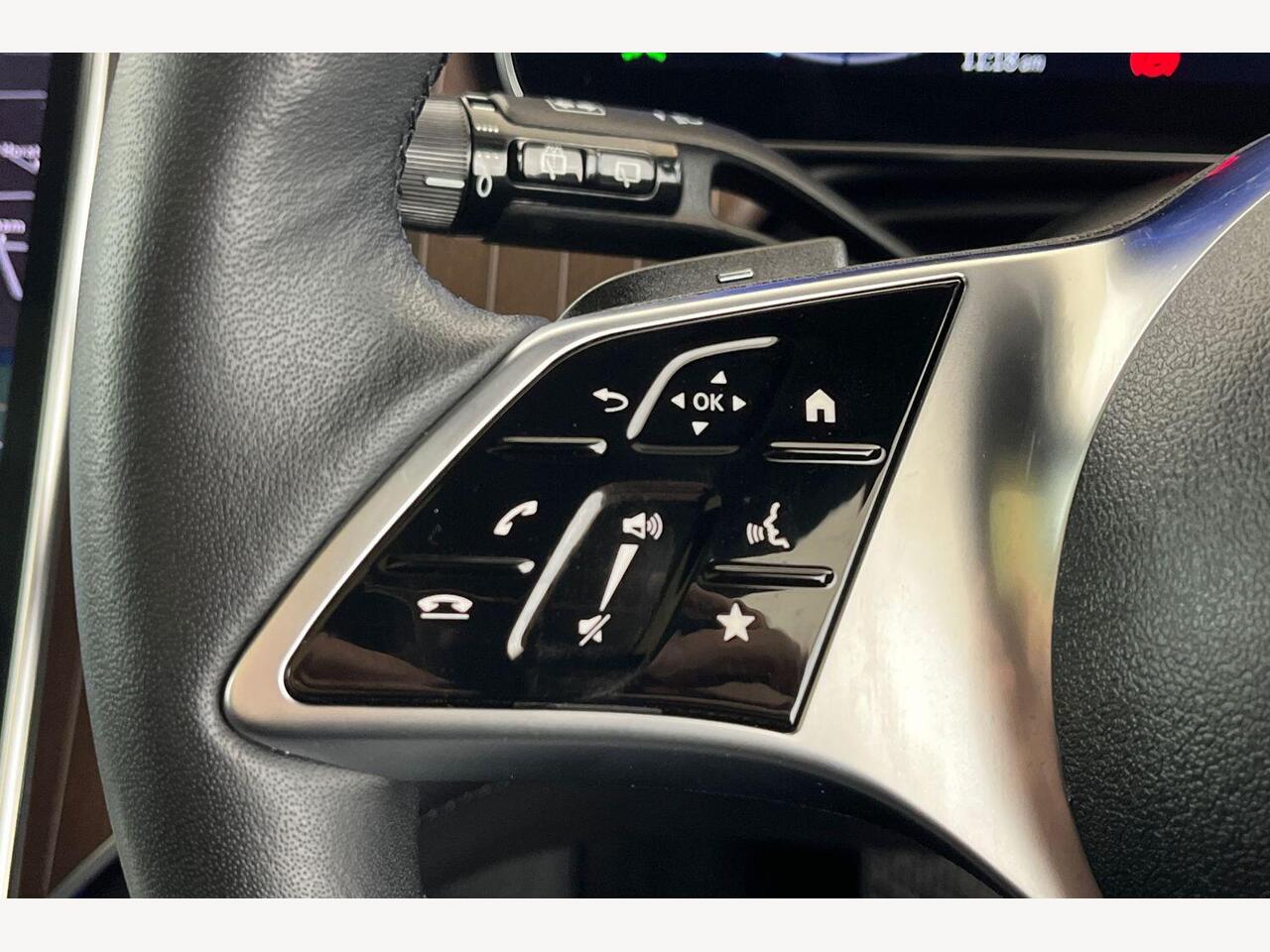 "3 spoke multifunction heated leather steering wheel with touch control, flat on top and bottom, with 'S' badge,contrast stitch",