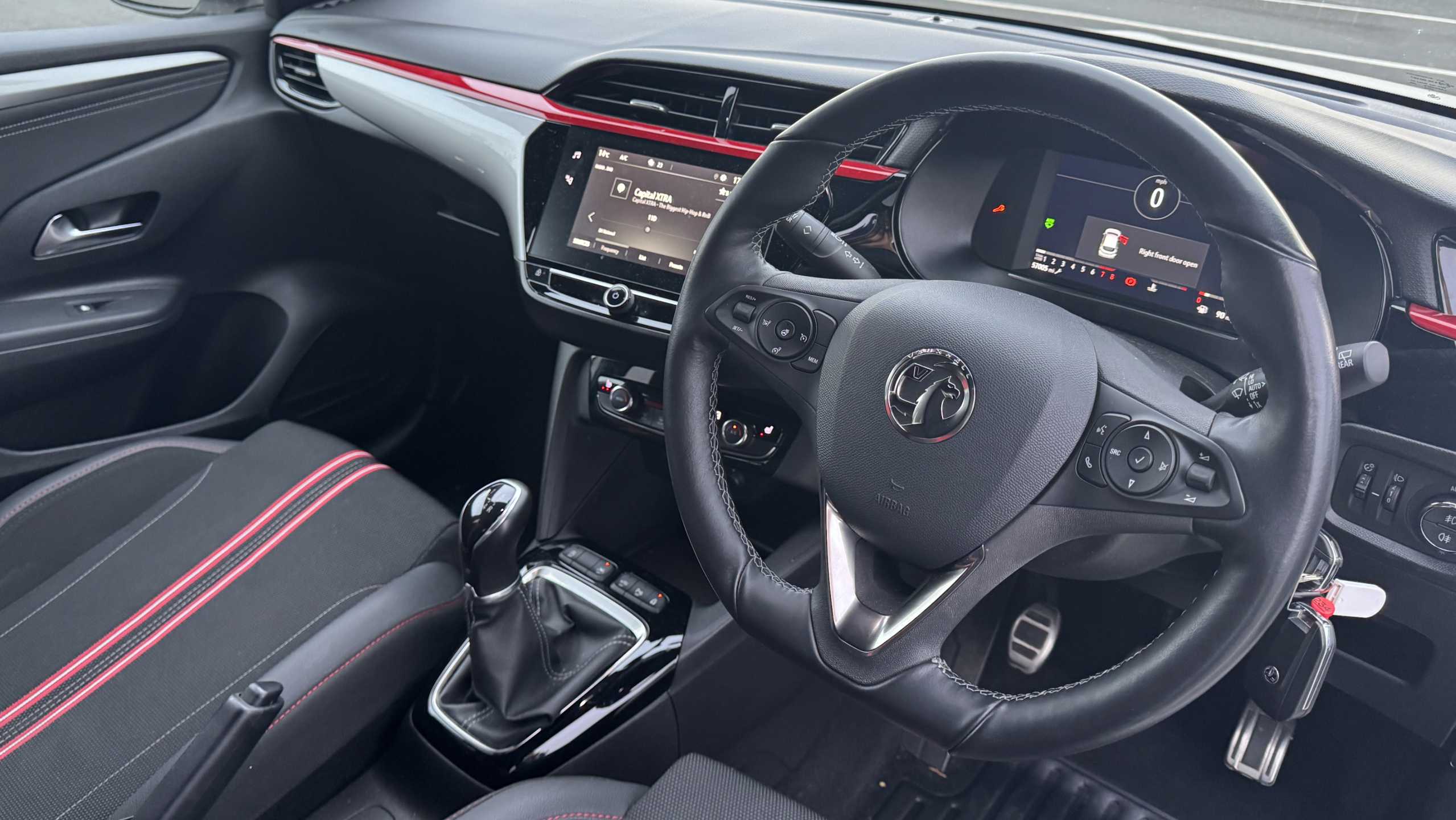 "features": "180 degree panoramic rear view camera, 2D/3D street level mapping, 7 inch digital instrument cluster display, Auto tele unit 3S vehicle communication system, Breakdown call (b-call), Central facia display with digital clock, outside air temperature and audio information, Cruise control with intelligent speed limiter, Driver drowsiness alert system, E-call, Engine oil life indicator, Enhanced traffic sign recognition, European coverage, Front and rear parking sensors, Front camera system, Instrumentation - Speedometer, rev counter, low fuel gauge warning light + water temperature gauge warning light, Lane departure warning, Lane keep assist, Lights on audible warning, MAP OTA updates, Multi function trip computer, POI (search), RDS with traffic programme, Service indicator, Side blind spot alert, Smartphone projection, Speed sensitive power steering, Speed sign recognition, Sport drive mode selector, Start/stop system, Vauxhall connect box, Voice recognition, Wireless Apple CarPlay/Android Auto, Wireless charger, Electronic returnless fuel system, Petrol Particulate Filter, Under body shield for aero, AM/FM stereo radio, Bluetooth A2DP audio streaming function (Advanced audio distribuition profile), DAB Digital radio, Multimedia Navi with 10-inch touchscreen, Rear USB port, Six speakers, Steering wheel audio, phone and cruise controls, USB type C port, 3rd brake light, Automatic headlamp levelling, Automatic headlight control system, Black door mirror housings, Black Griffin logo and vizor frame, Black lower side window mouldings, Body colour door handles, Body colour front and rear bumpers, Bonnet/headlight/wiper structure, Corsa lettering in tailgate, Dark tinted rear side windows + tailgate window, Electrically adjustable and heated door mirrors, Electrically folding door mirrors, Electrically operated front and rear windows with safety auto reverse and one touch up/down facility, Electrochromic automatic anti-dazzle rear view mirror, Glazed tailgate and heated rear window with wash/wipe facility, Hazard warning lights, Headlamps for left side traffic, High beam assist, High gloss black finish B pillar, Intelli-Lux Matrix LED Headlights, LED daytime running lights, LED front fog lights, LED tail lamp, Rain sensitive windscreen wipers, Rear fog lamp, Rear reversing lights, Rear side wing doors, Rear wiper, Shark fin aerial, Solar heat absorbing windscreen and windows, Sports front and rear body styling for upper and lower bumper design, Two speed windscreen wipers with variable intermittent wipe, Windscreen and side window demist vents, 12V power sockets, 3 bench rear seats in 2nd row, 3 spoke steering wheel, 4 speed fan with illuminated controls, 6 way manual adjustable co-driver seat height up/down, reach fore/aft, backrest upright/recline, 6 way manual adjustable driver seat with massage function height up/down, reach fore/aft, backrest upright/recline, 60/40 split folding rear seat, Alcantara upholstery, Black headliner, Cabin particulate filter - removes dust, airborne particles and pollen, Comfort front seats, Driver's seat lumbar support, Driver/passenger sunvisors with vanity mirrors + covers, Electronic climate control (ECC), Four adjustable facia vents, Front centre armrest with storage, Front cupholder, Front headrests, Height adjustable head restraints, Illuminated glovebox with lid, Interior courtesy light, Internal chrome door handles, LED ambient lighting, LED boot light, Polyurethane gear knob/lever, Reach and rake adjustable steering column, Rear cupholder, Rear headrests, Right hand drive (RHD), Single dome lamp with dual front reading lamps, Single front passenger seat, Standard floor mats, Two litre open door pockets, Winter pack - Corsa, 3 rear 3 point seatbelts, Anti-lock braking system (ABS), Cornering brake control, Deactivation switch for front passenger's airbag, Drag torque control, Driver and front passenger airbags, front seat side impact airbags, full size curtain airbags, EBD - Electronic brakeforce distribution, Electrical child lock system in rear door latch, Electronic parking brake, Electronic Stability Programme (ESP), Emergency brake assist, Enhanced automatic emergency braking, Forward collision alert, Front seatbelt unfastened audible warning and warning light, Hill hold and start system, ISOFIX child seat mountings incorporating top tether anchor points located on second row rear seats, Seatbelt pretensioners, Single tone horn, Straight line stability control, Traction control, Tyre deflation detection system, 2 keys one folding with integral remote, Electronically protected audio equipment, Engine deadlock and immobiliser, Freewheeling door locks, Keyless entry and start, Locking wheel nuts, Remote control central locking, Remote control security alarm system, Remote locking fuel filler flap, Steering column lock, Visible vehicle identification number, Silent black fascia with blanc banquise insert, 17\" Diamond-cut hi-gloss black alloy wheels, ",