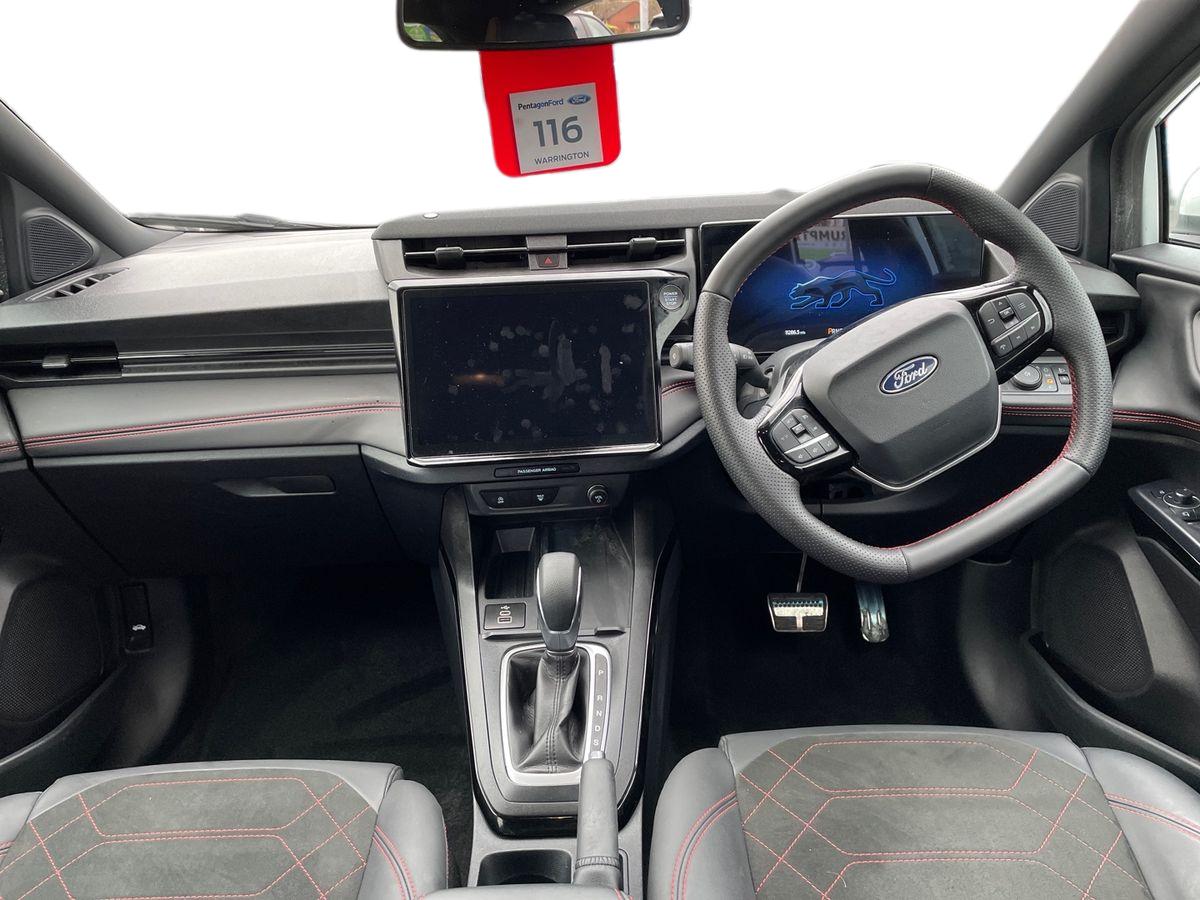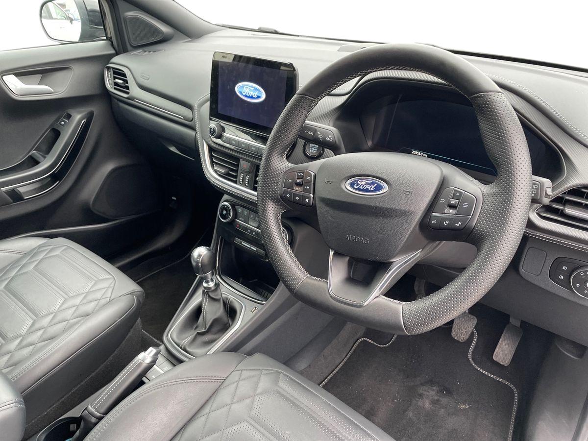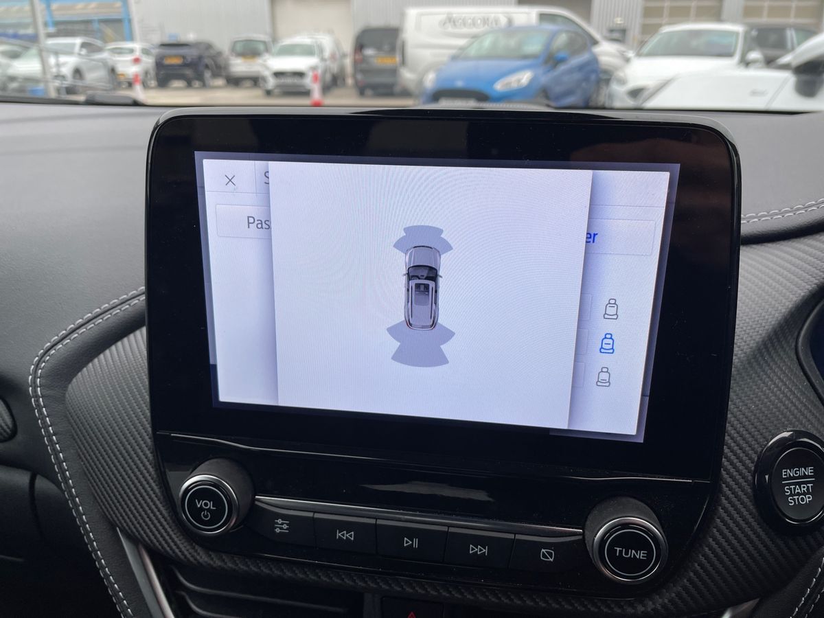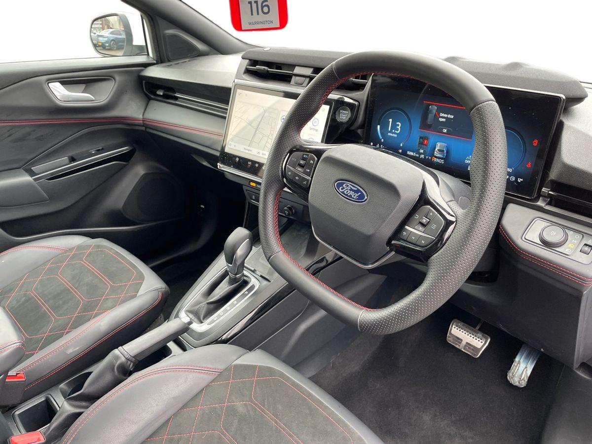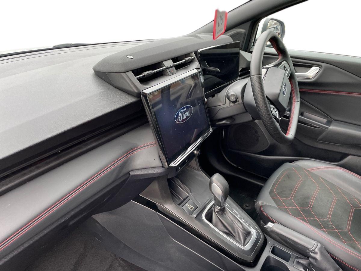 "features": "Driver impairment monitor, Emergency call service, Ford easy fuel, Full digital 12.8\" instrument cluster, Lane keeping aid with lane departure warning, Power assist steering, Selectable drive modes(Normal, Eco, Sport, Slippery and Trail), Speed sign recognition, Sport suspension, 12\" landscape touchscreen display with wireless apple car play and android auto premium B&O audio system with 10 speakers, Ford pass connect and emergency assistance, Ford SYNC4 with connected navigation, Automatic headlights with rain sensing wipers and auto high beam, Front fog lamps, LED daytime running lights, LED rear lamps, LED third brake light, Power foldable heated door mirrors with puddle lamps and puma logo protection, Quickclear heated windscreen, Rear privacy glass, Rear side wing doors, Rear wiper, ST-Line body styling kit with unique grille, 3 seat bench in 2nd row, 4 way lumbar support for passenger seat, Centre console with armrest and stowage, Electronic automatic temperature control (EATC), Ford megabox extended bootspace, Front and rear head restraints, Front floor mats, Manual 4 way driver seat adjust with lumbar adjustment, Single front passenger seat, ST-Line X Premium synthetic leather upholstery, Comfort pack with power lift tailgate - Puma, 3 rear seatbelts, Child safety lock, Electronic stability control (ESC) and hill start assist, Pre-collision assist with autonomous emergency braking, pedestrian/cyclist detection & post-collision braking, Tyre pressure monitoring system (TPMS), Thatcham alarm, ",