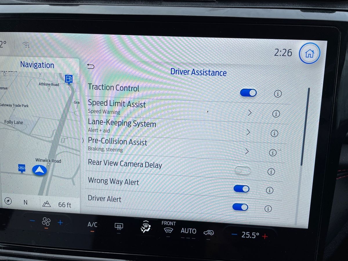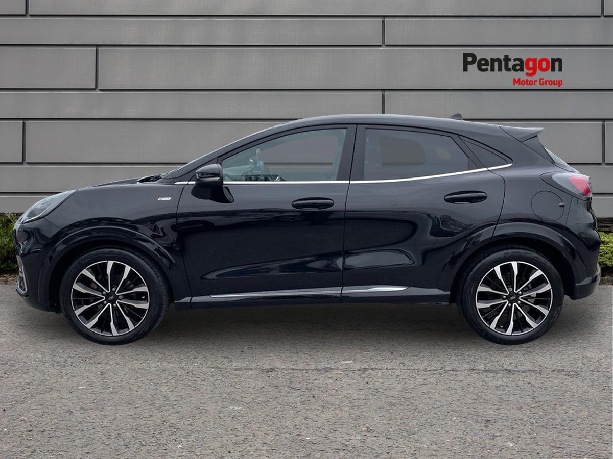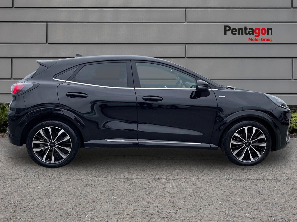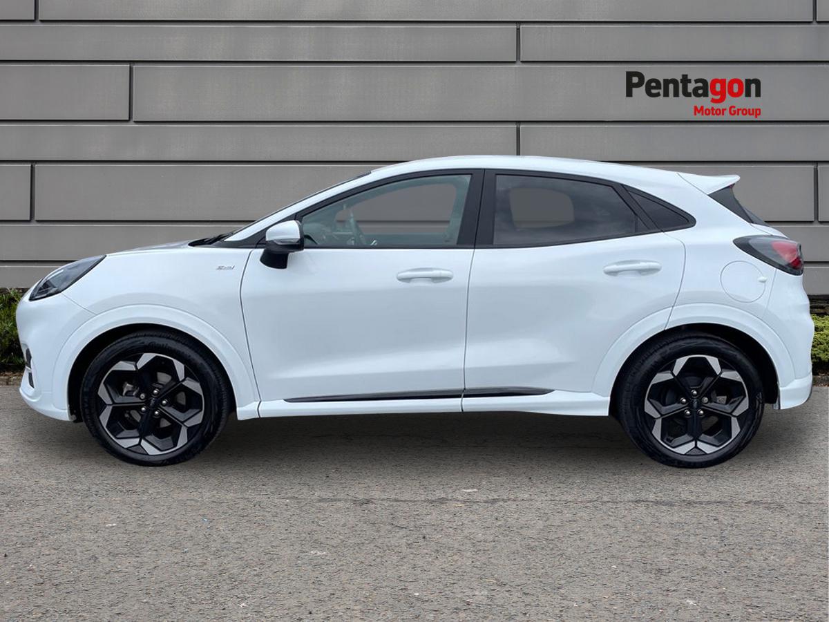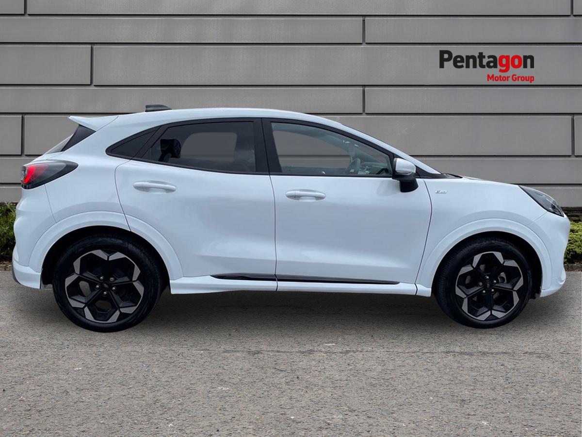 "features": "Driver impairment monitor, Emergency call service, Ford easy fuel, Full digital 12.8\" instrument cluster, Lane keeping aid with lane departure warning, Power assist steering, Selectable drive modes(Normal, Eco, Sport, Slippery and Trail), Speed sign recognition, Sport suspension, 12\" landscape touchscreen display with wireless apple car play and android auto premium B&O audio system with 10 speakers, Ford pass connect and emergency assistance, Ford SYNC4 with connected navigation, Automatic headlights with rain sensing wipers and auto high beam, Front fog lamps, LED daytime running lights, LED rear lamps, LED third brake light, Power foldable heated door mirrors with puddle lamps and puma logo protection, Quickclear heated windscreen, Rear privacy glass, Rear side wing doors, Rear wiper, ST-Line body styling kit with unique grille, 3 seat bench in 2nd row, 4 way lumbar support for passenger seat, Centre console with armrest and stowage, Electronic automatic temperature control (EATC), Ford megabox extended bootspace, Front and rear head restraints, Front floor mats, Manual 4 way driver seat adjust with lumbar adjustment, Single front passenger seat, ST-Line X Premium synthetic leather upholstery, Comfort pack with power lift tailgate - Puma, 3 rear seatbelts, Child safety lock, Electronic stability control (ESC) and hill start assist, Pre-collision assist with autonomous emergency braking, pedestrian/cyclist detection & post-collision braking, Tyre pressure monitoring system (TPMS), Thatcham alarm, ",