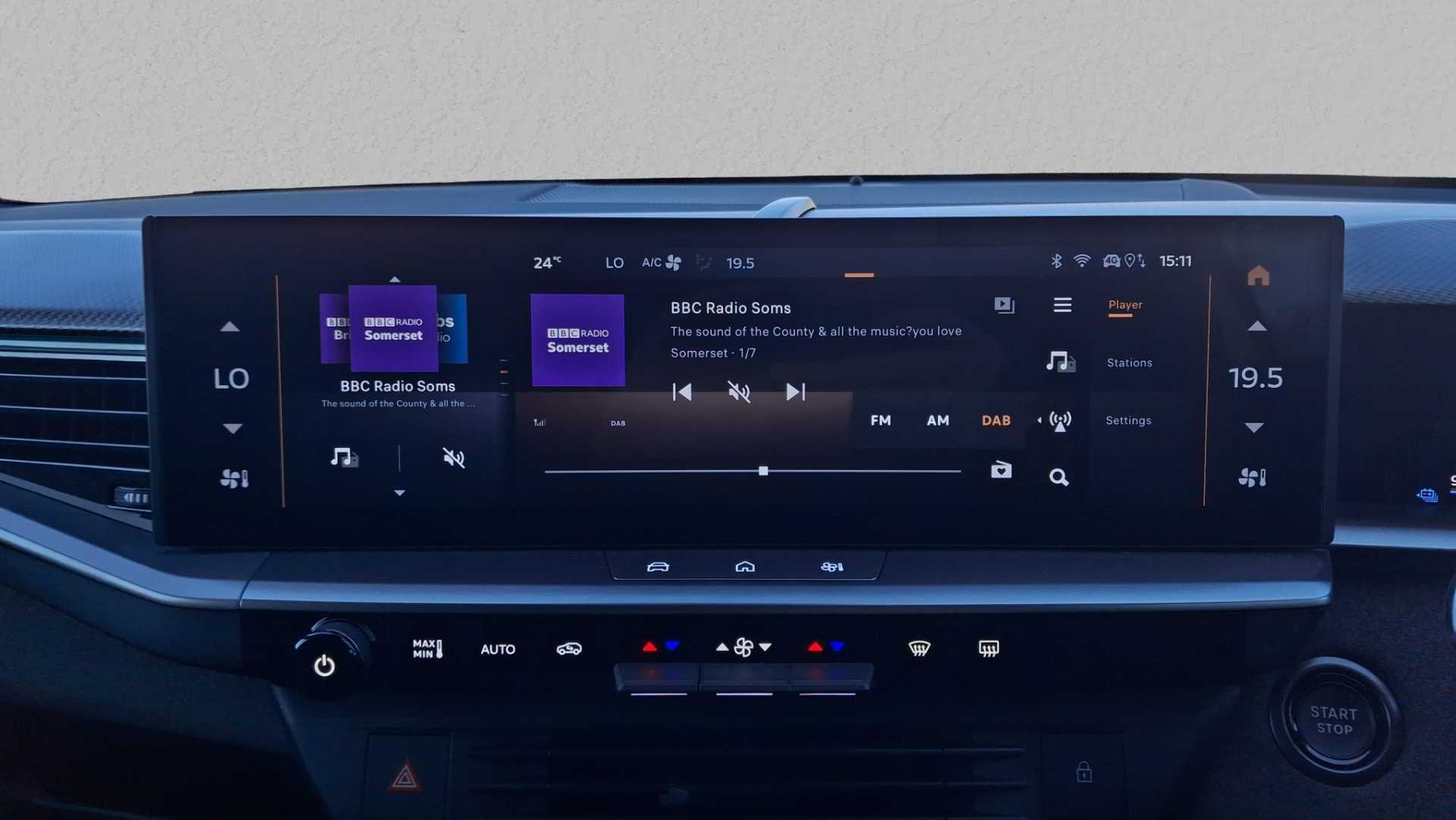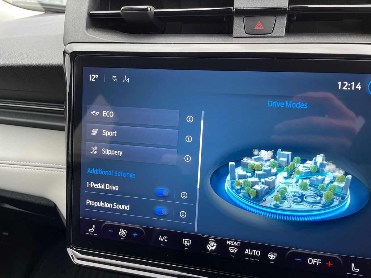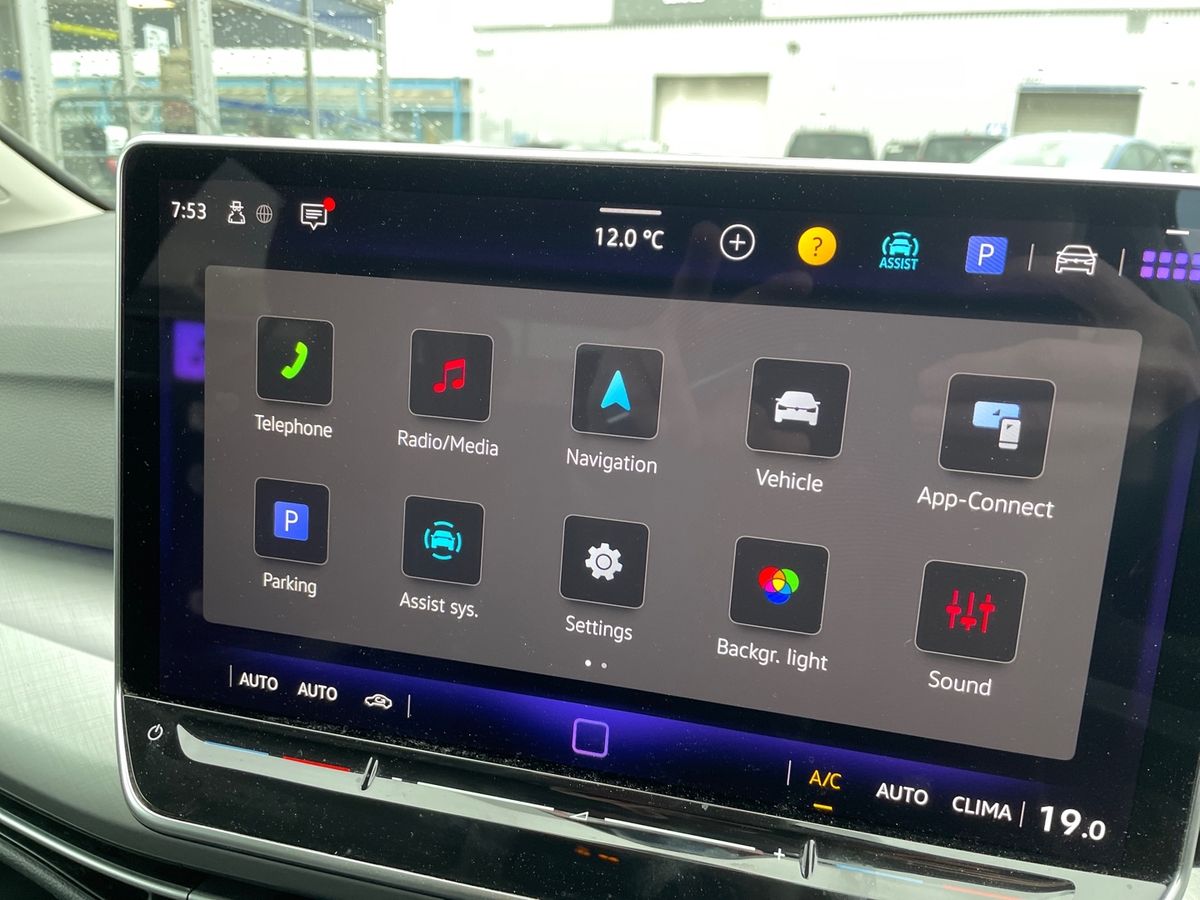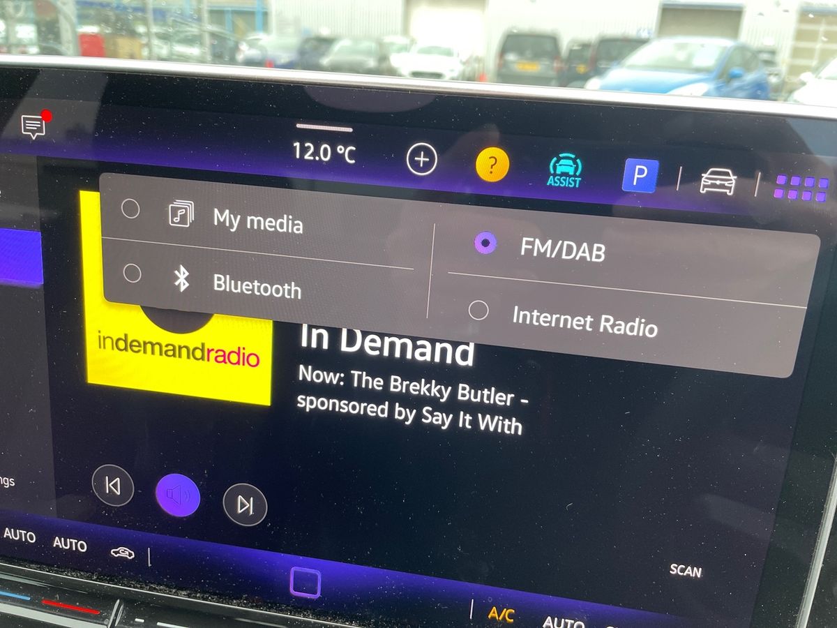 "12\" landscape touchscreen display with wireless apple car play and android auto premium B&O audio system with 10 speakers",