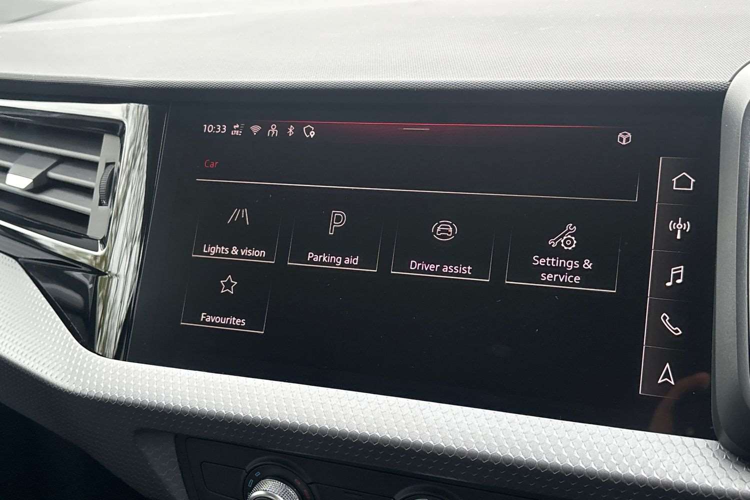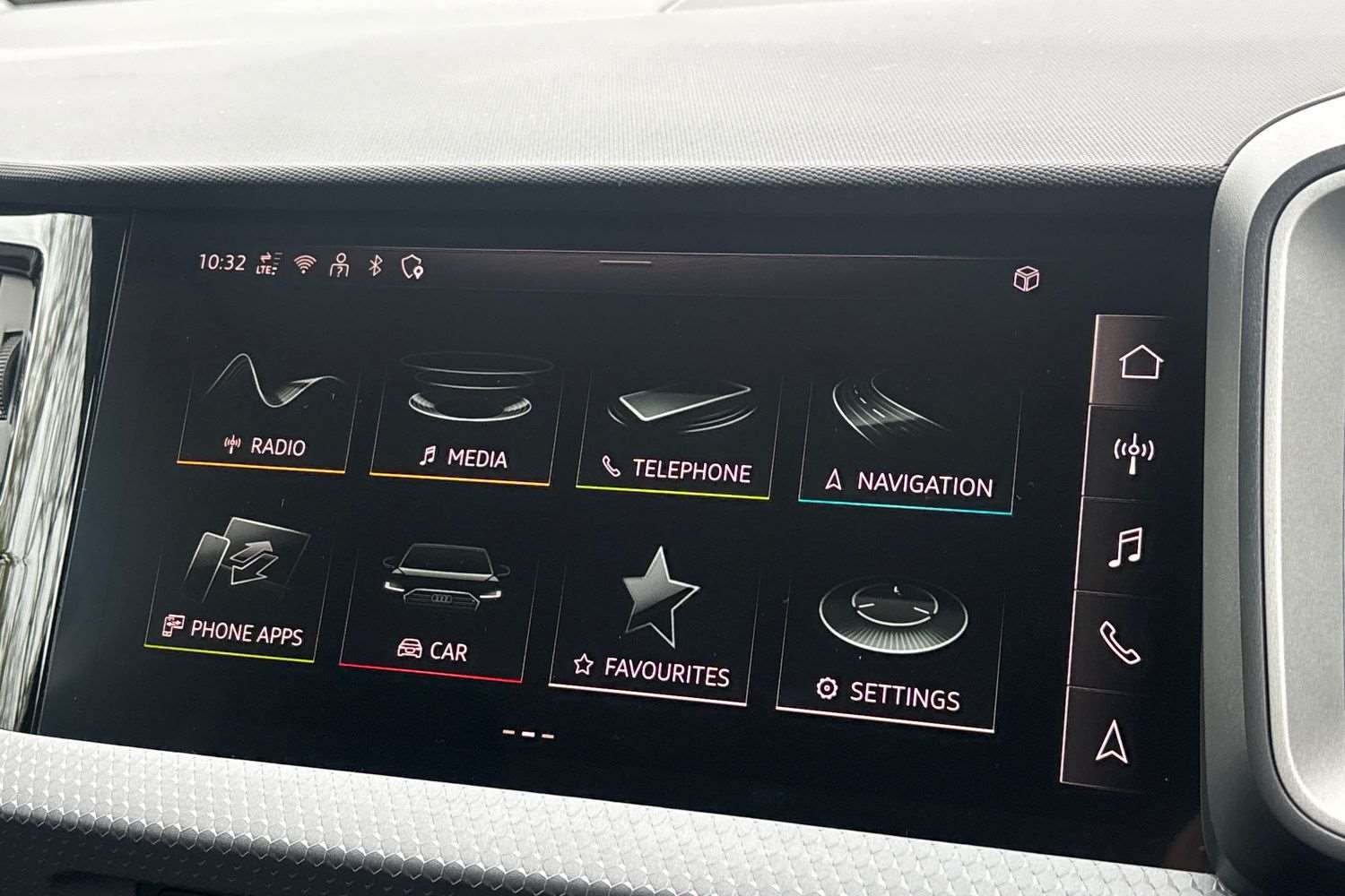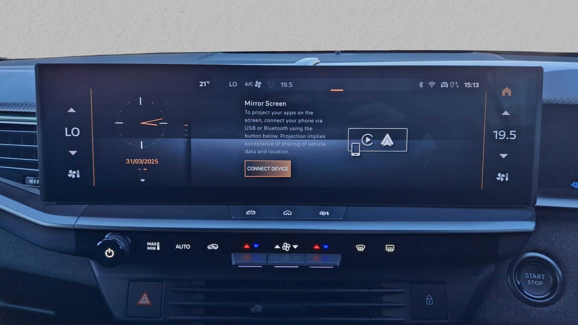 "12\" landscape touchscreen display with wireless apple car play and android auto premium B&O audio system with 10 speakers",