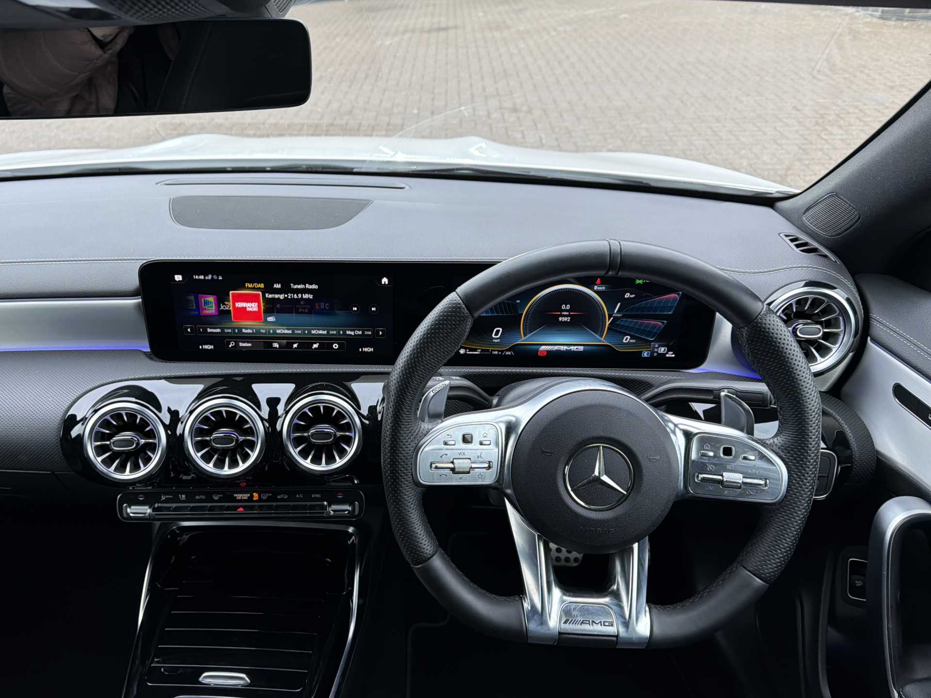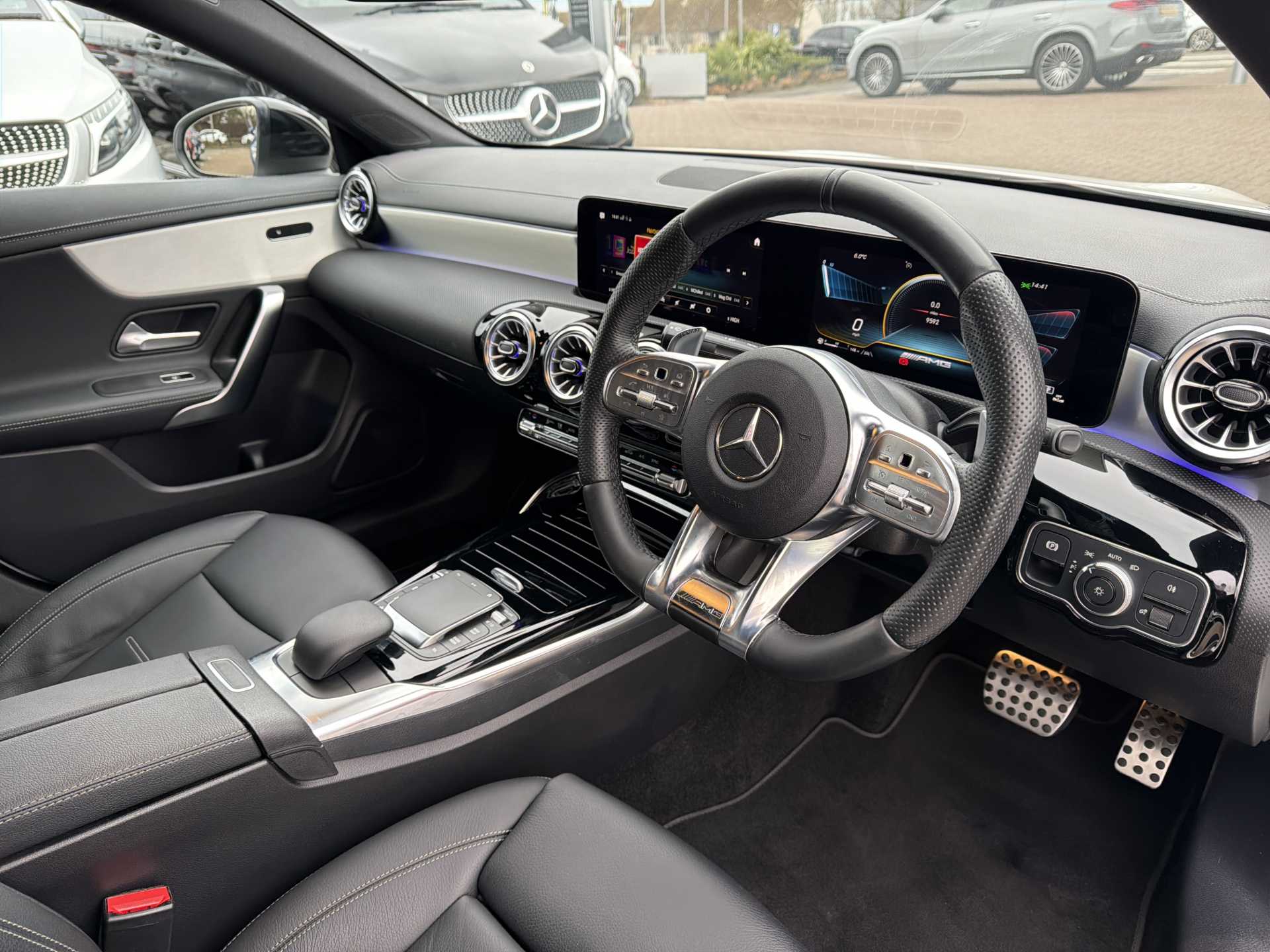 "Floor mats with stitched AMG lettering",