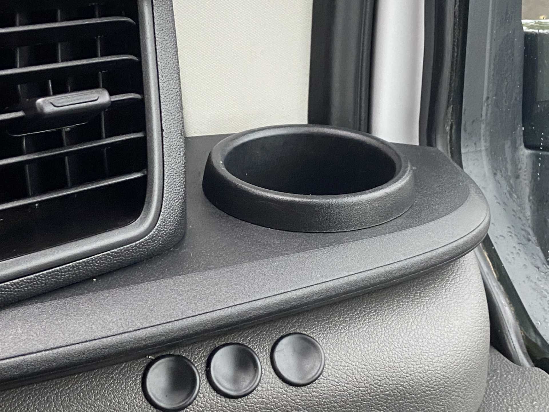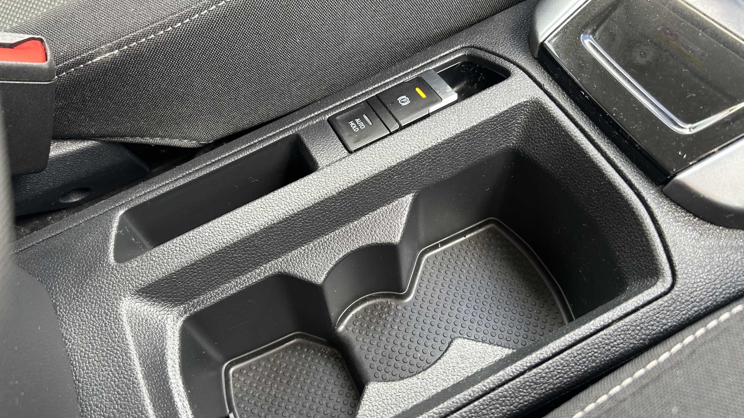 "Twin front cupholders",