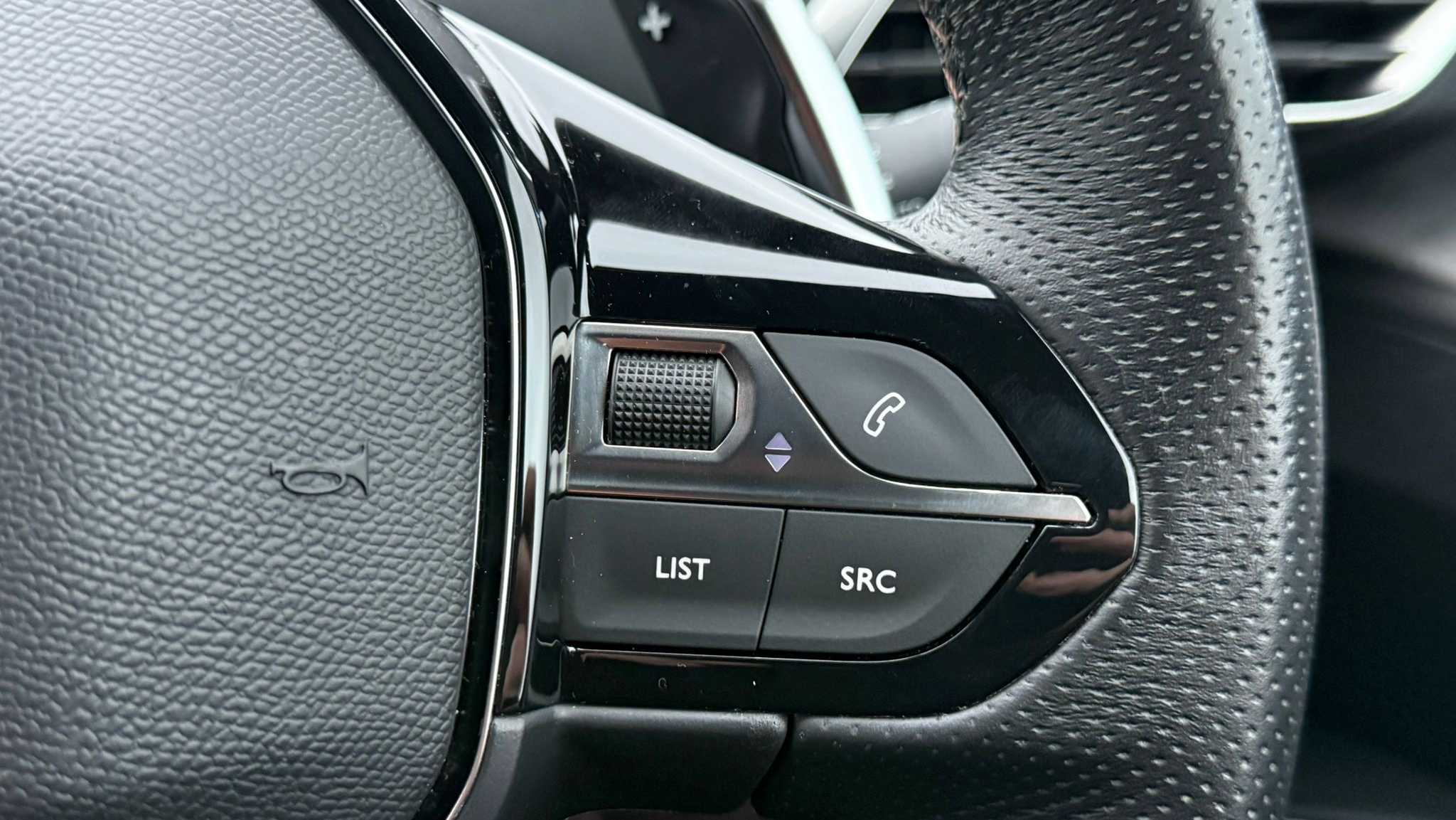 "Silver coloured aluminium gear shift paddles on steering wheel",