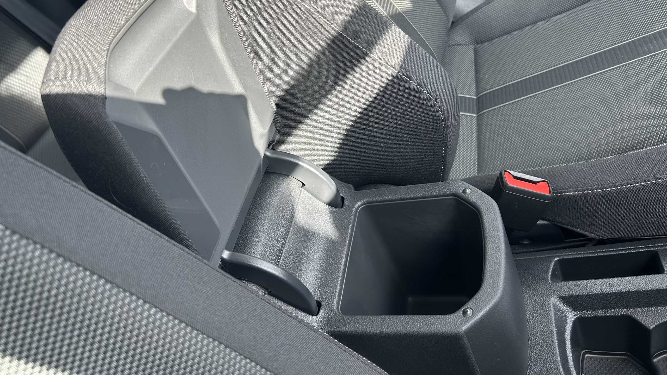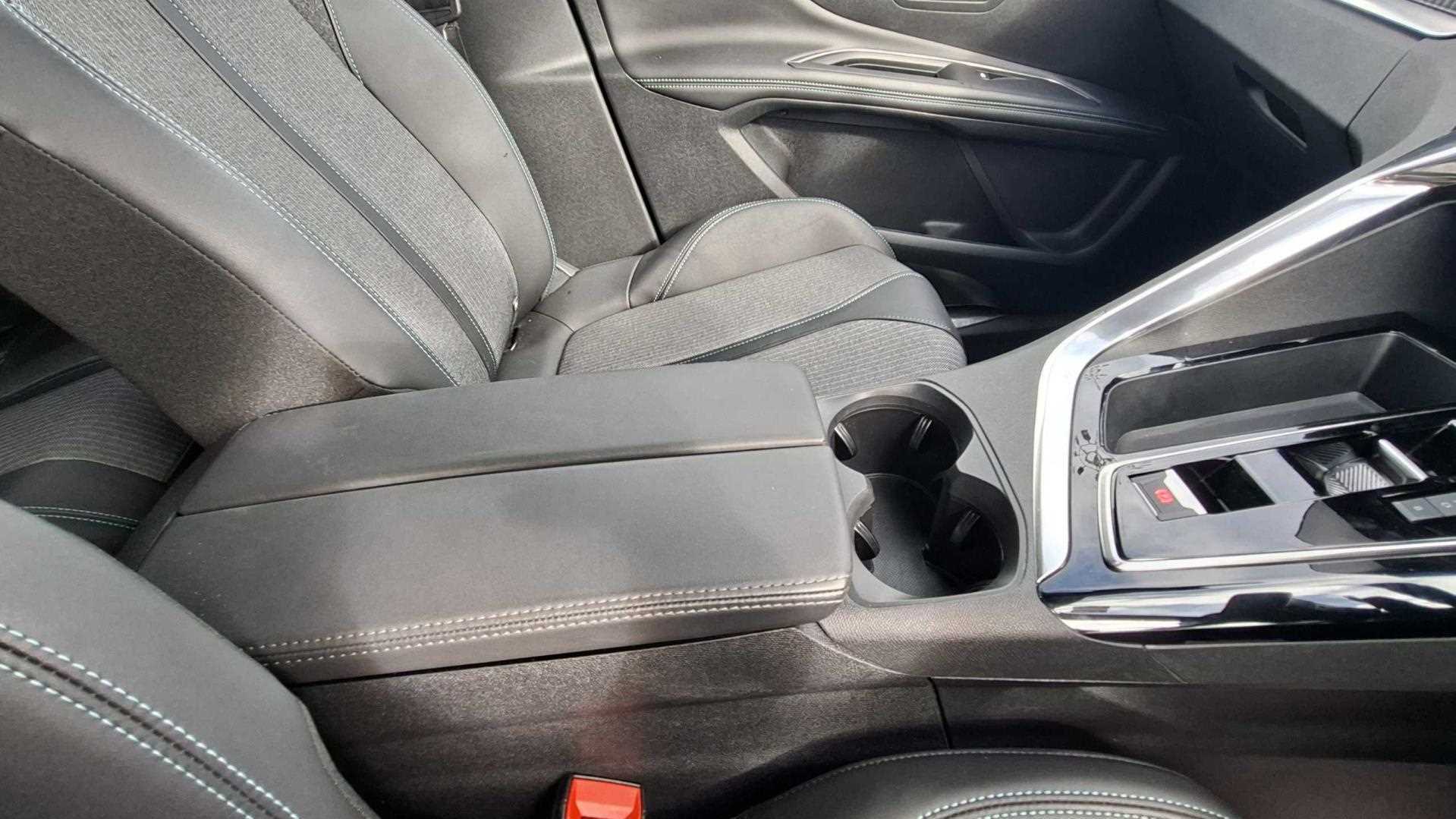 "Rear armrest with two integral cup holders for drinks",
