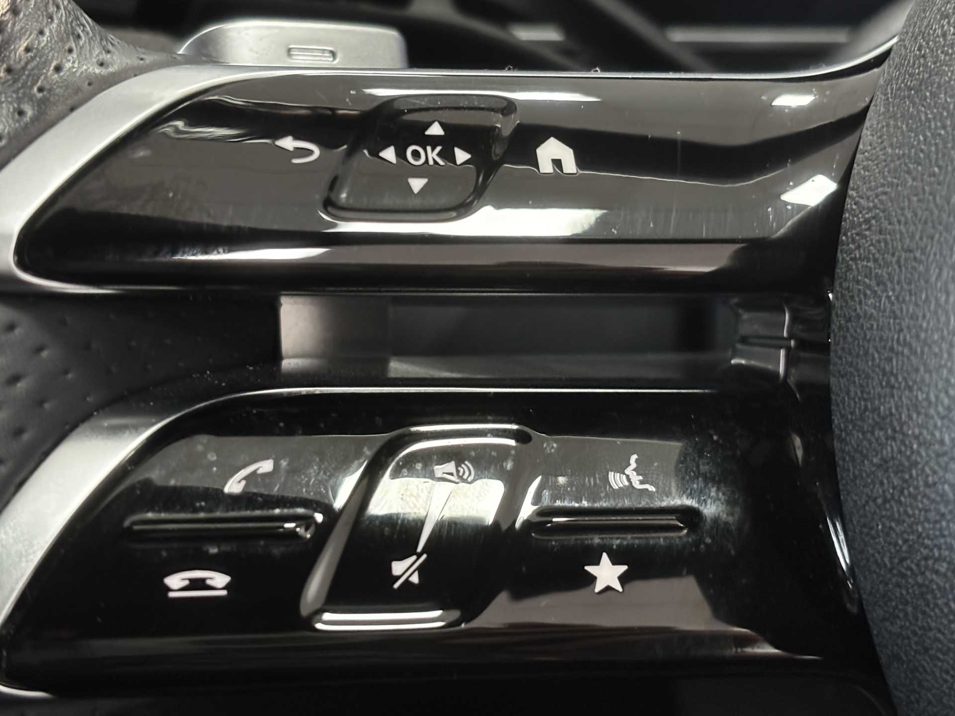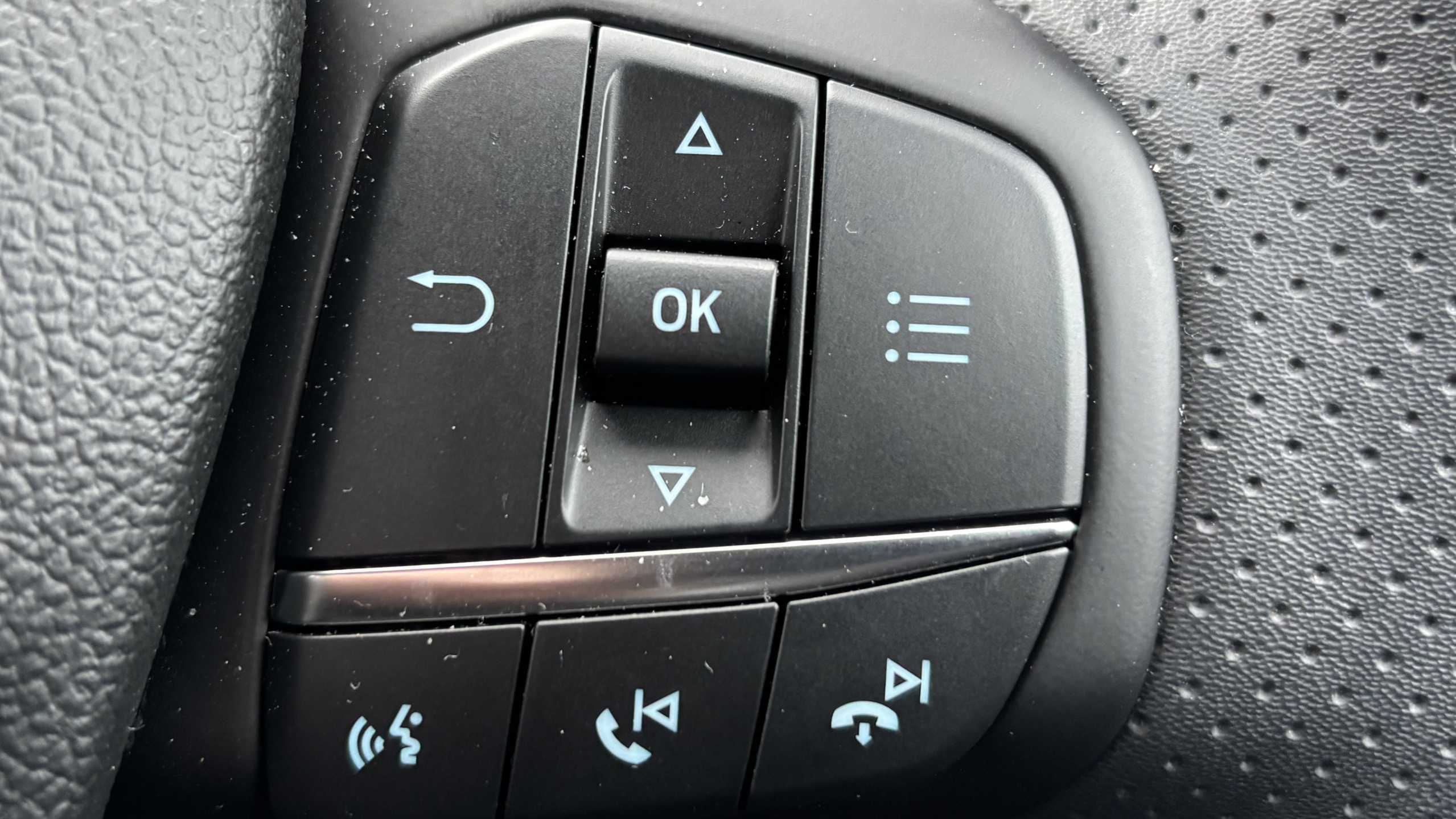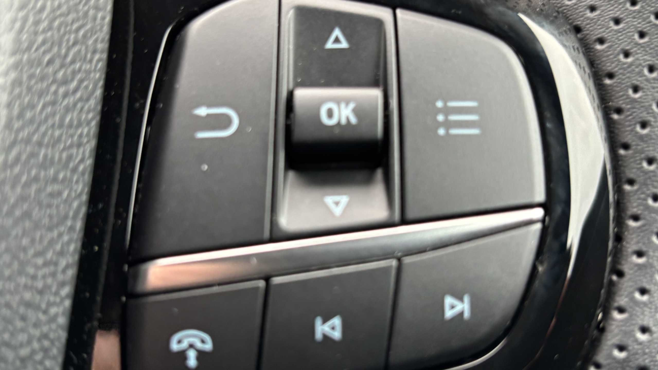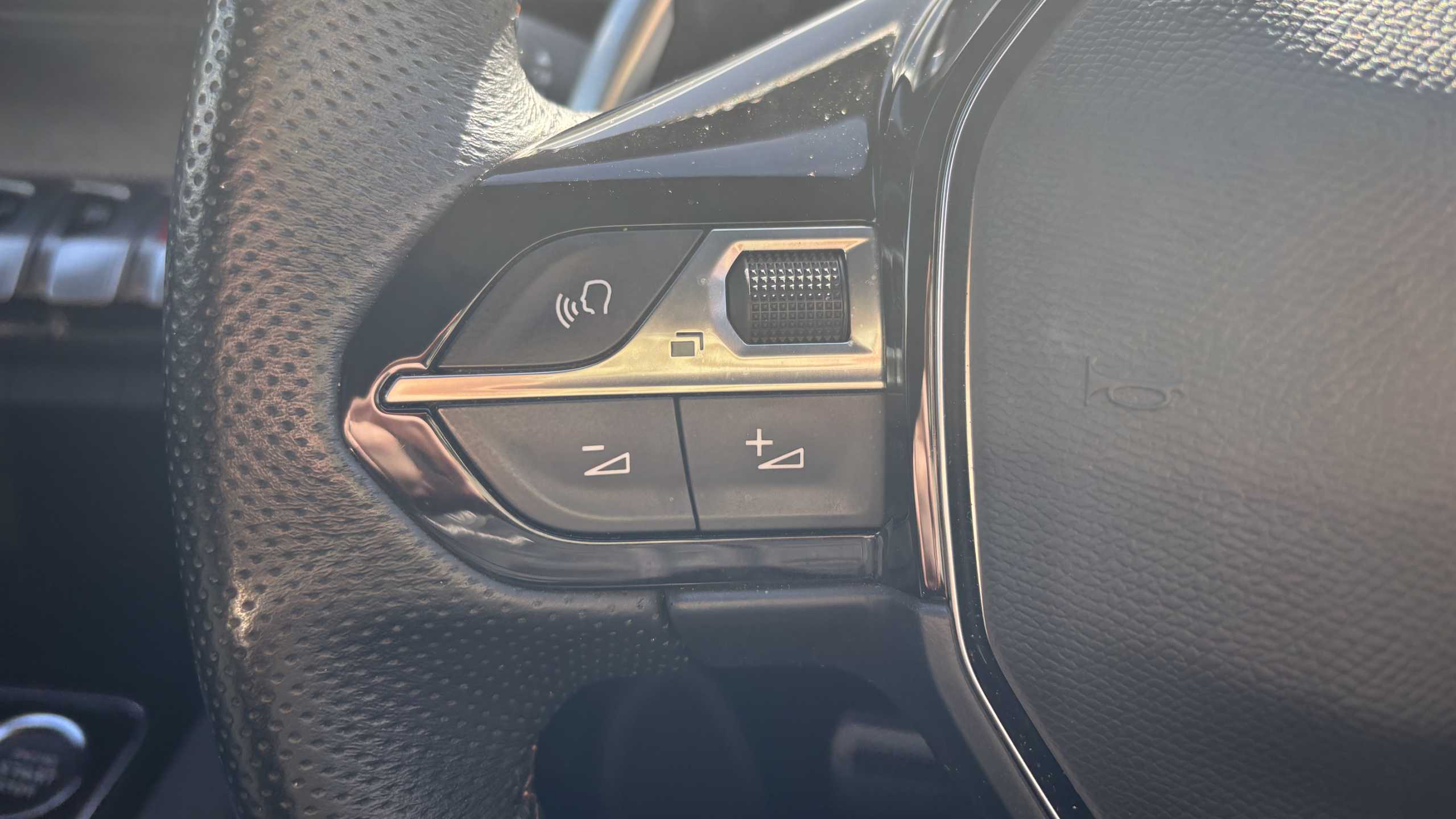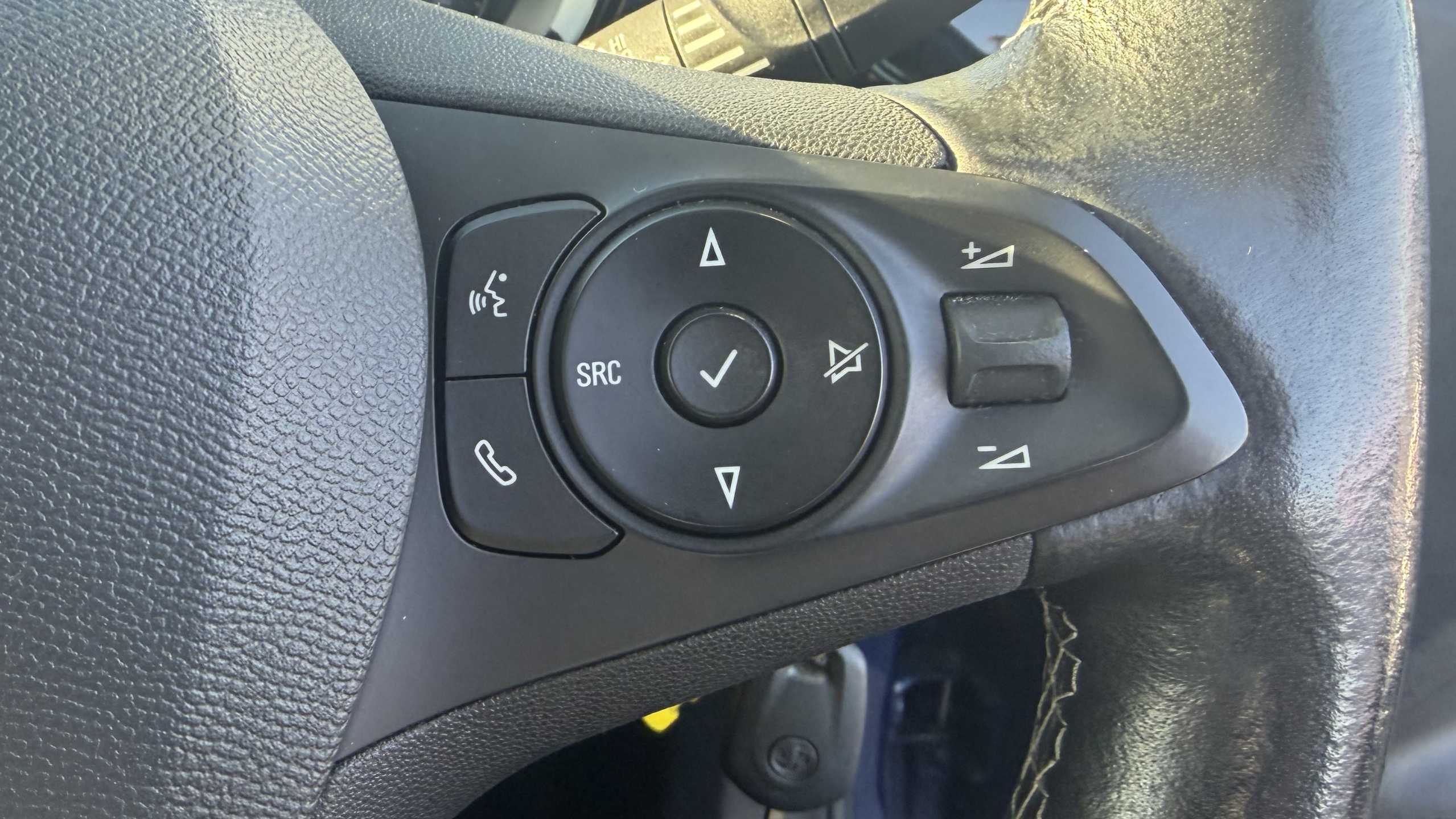 "3 spoke leather covered steering wheel with satin chrome effect bezel",