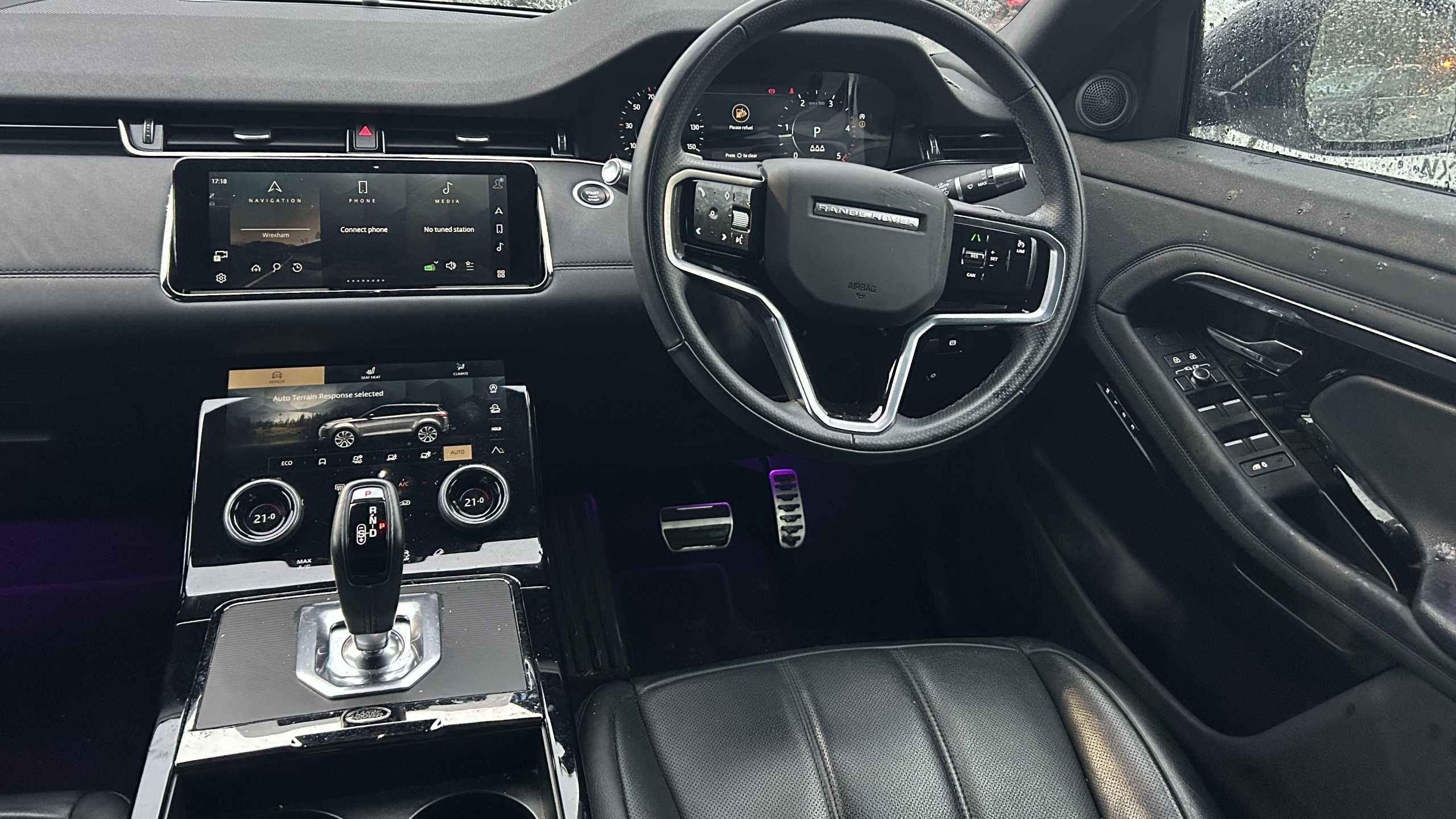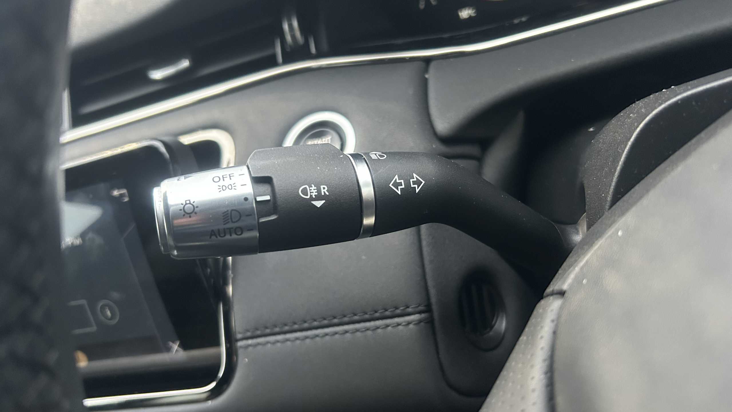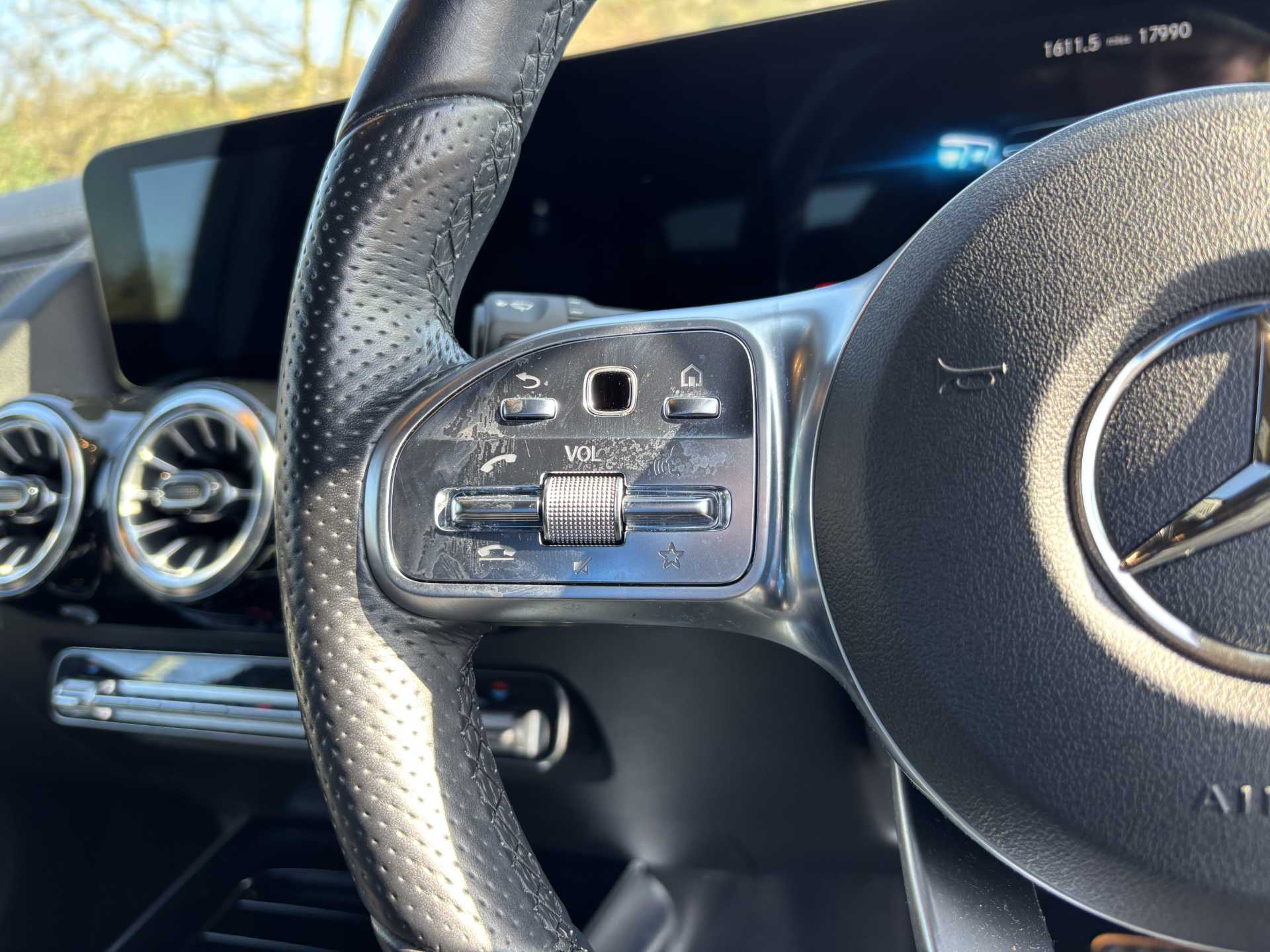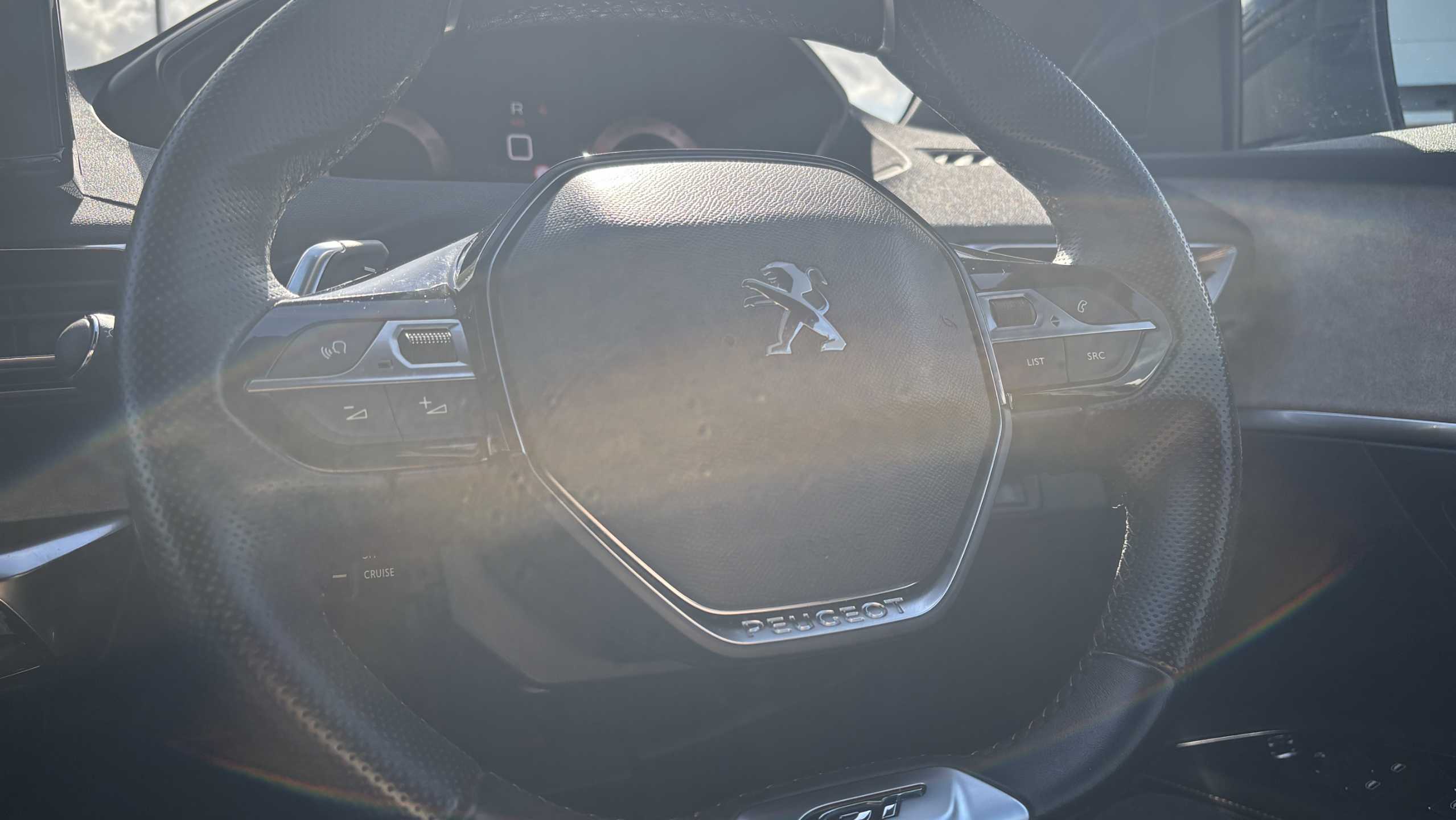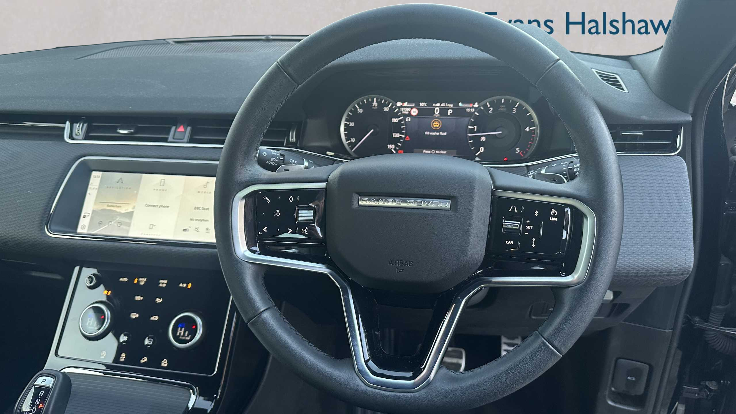 "3 spoke leather covered steering wheel with satin chrome effect bezel",