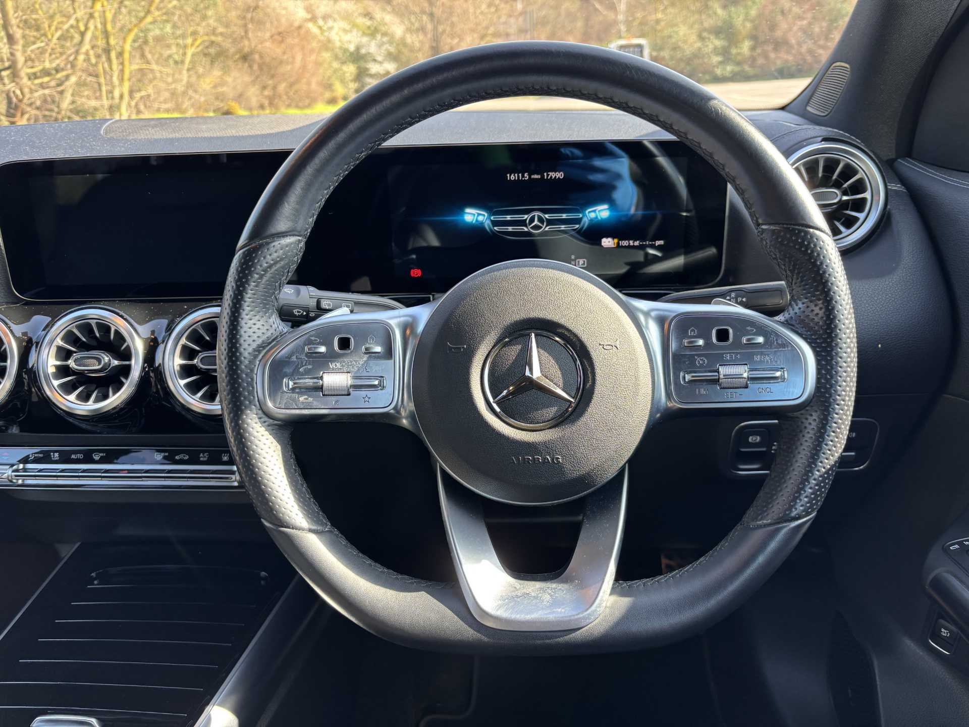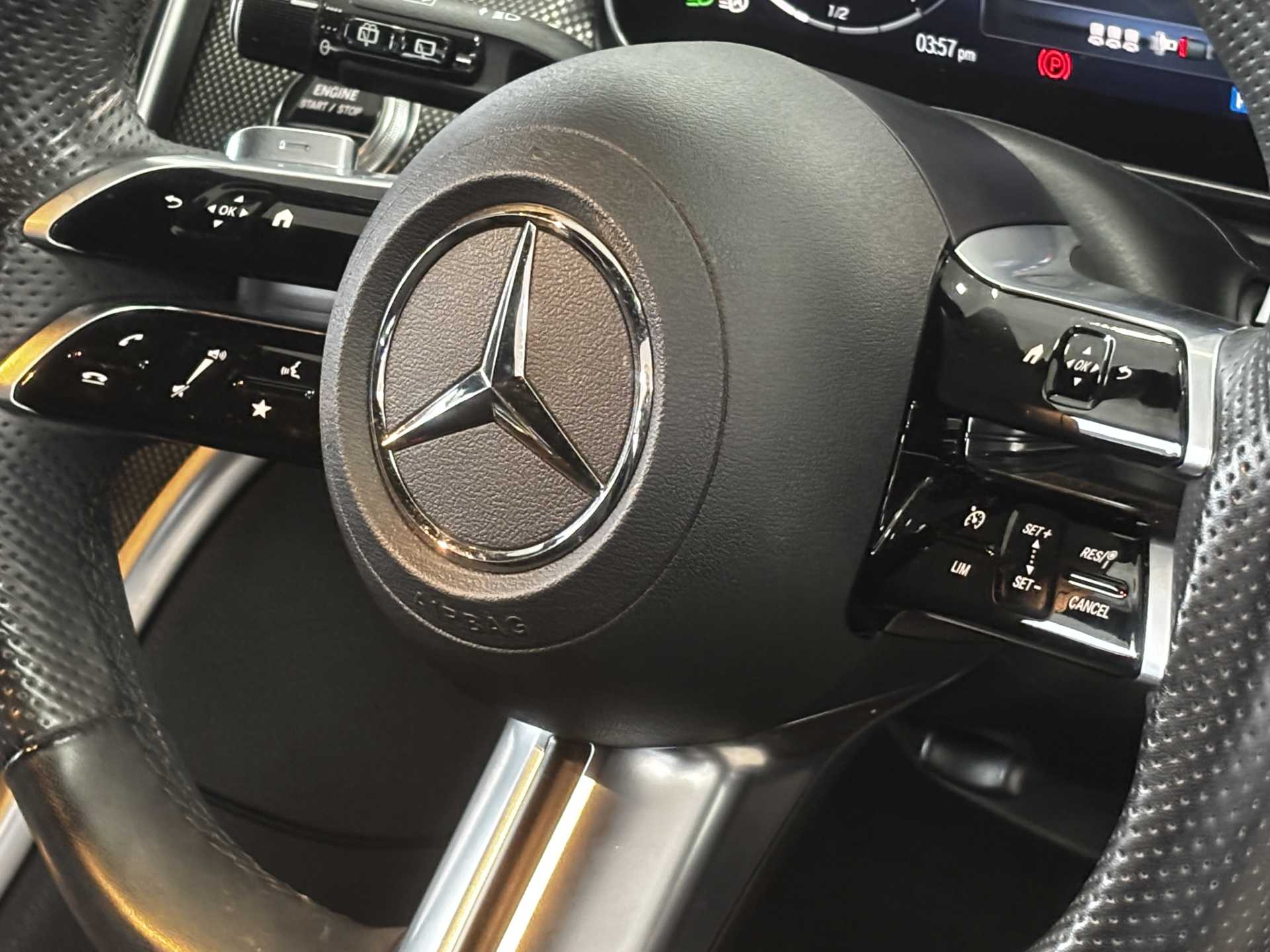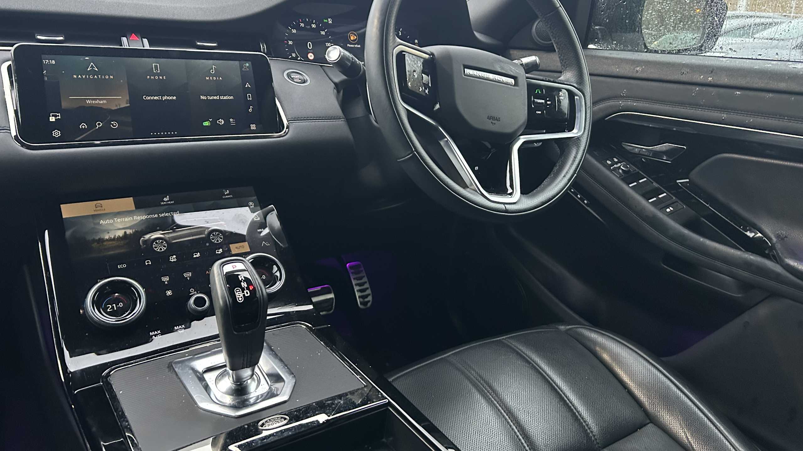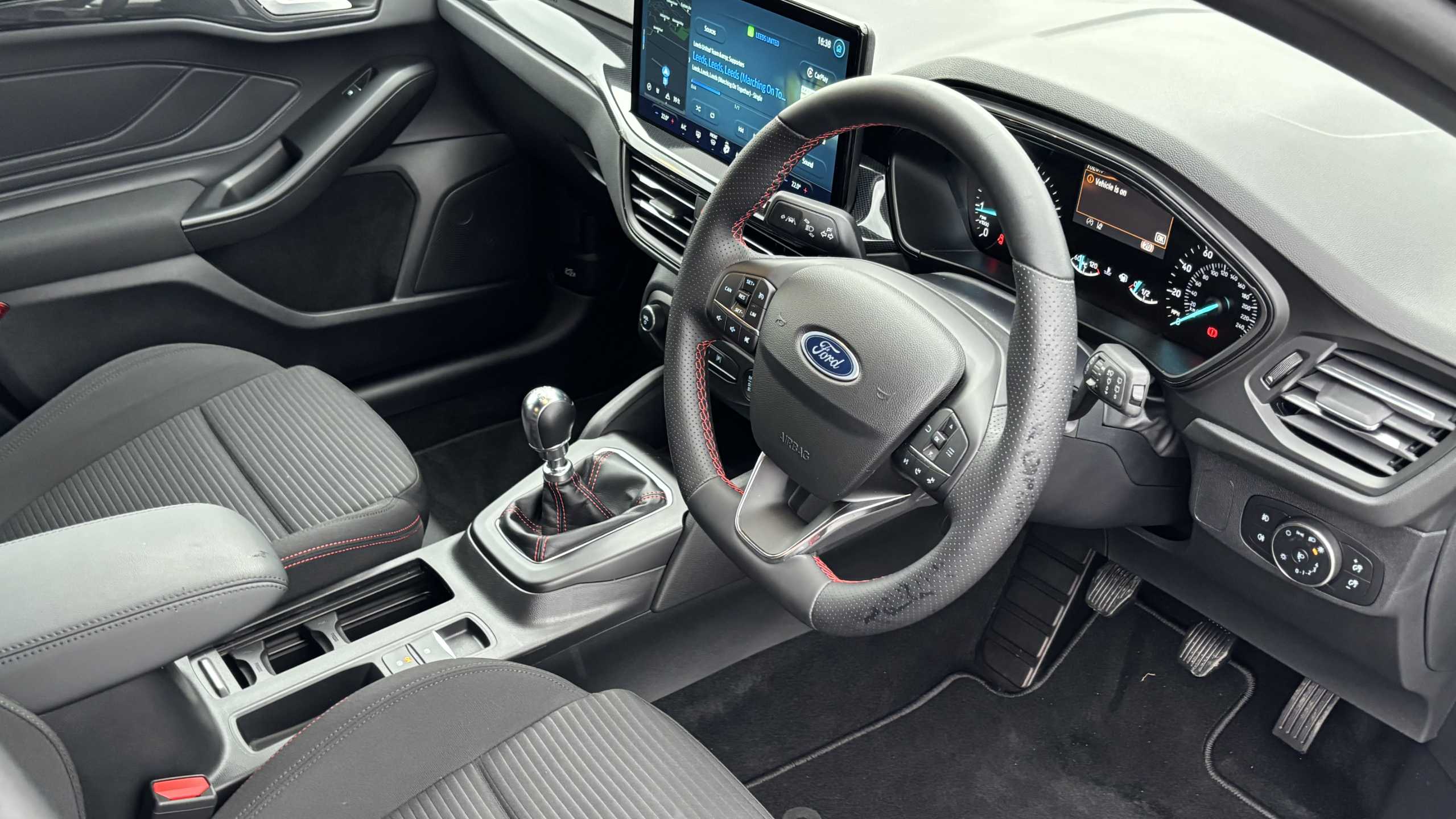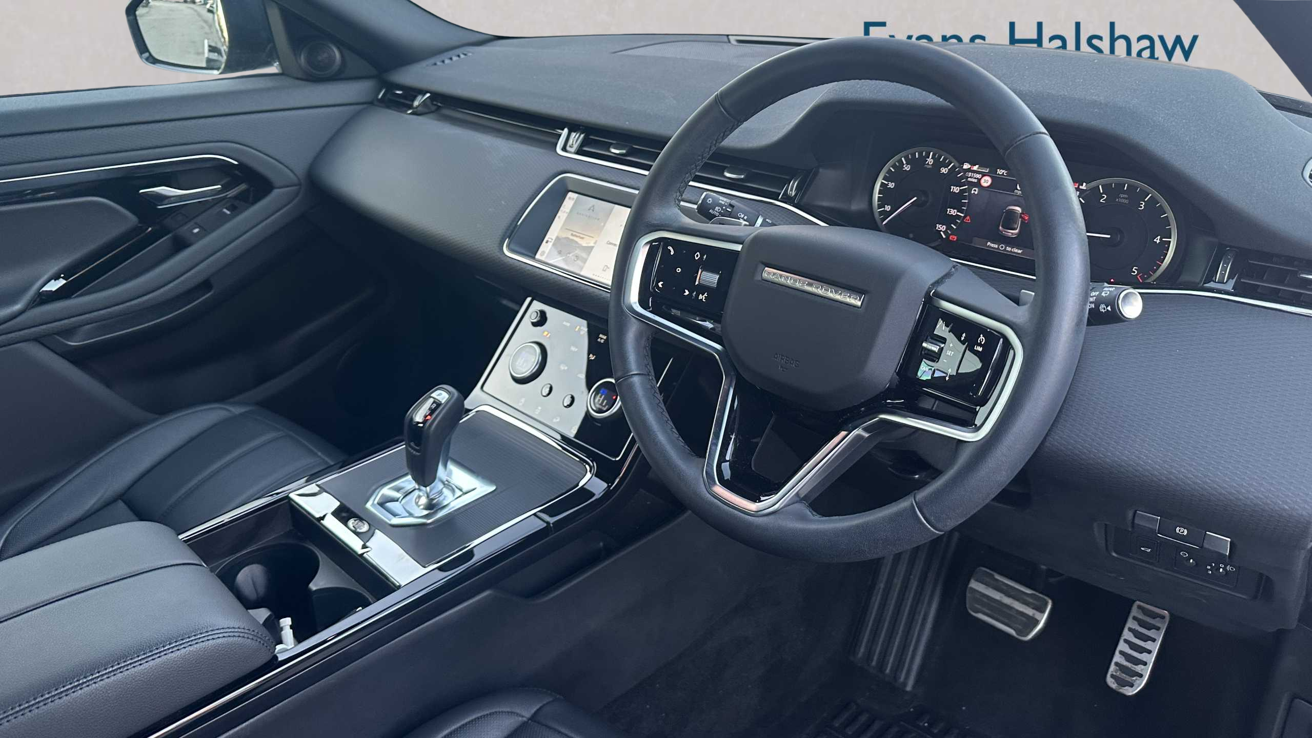 "3 spoke leather covered steering wheel with satin chrome effect bezel",