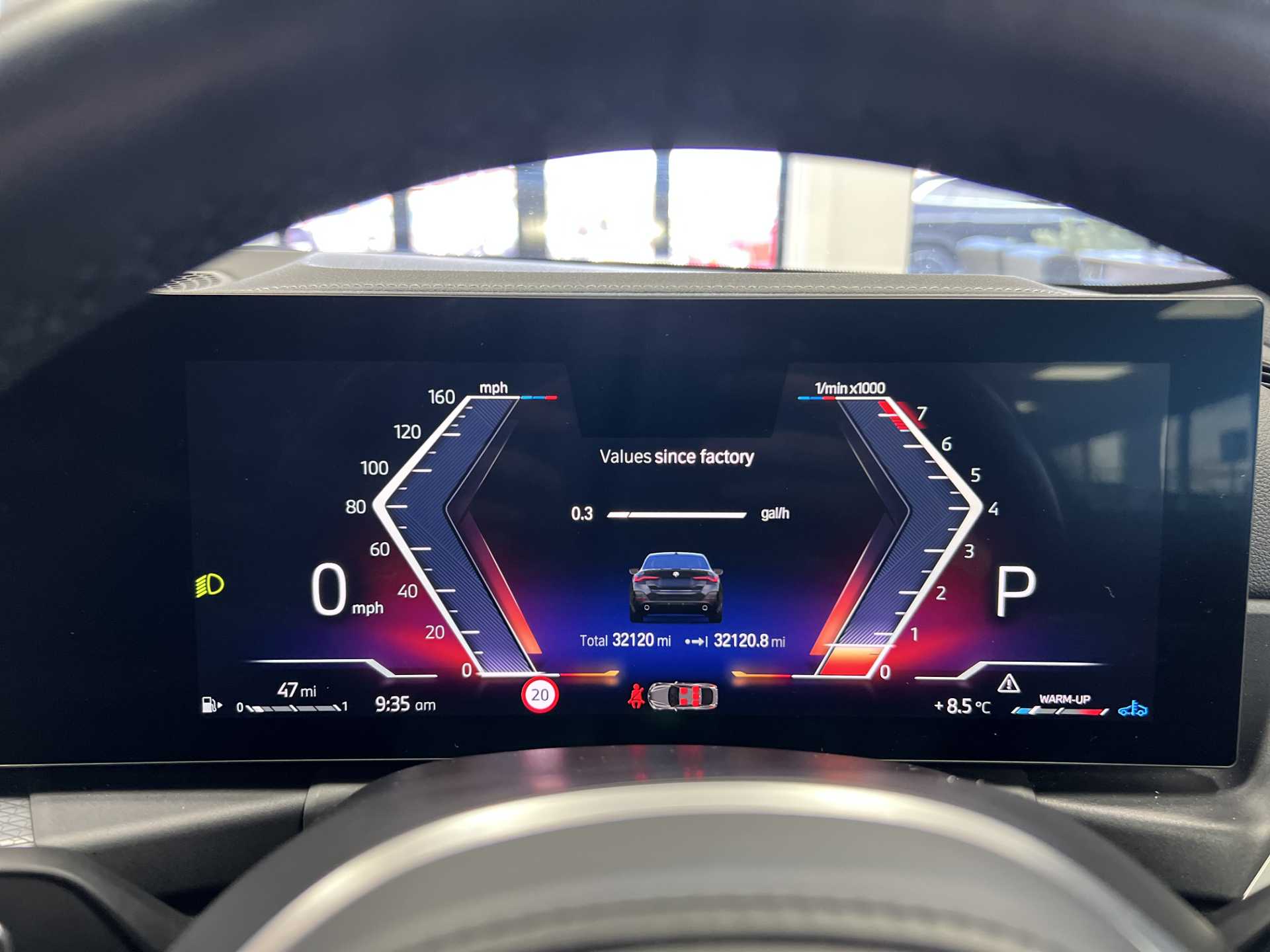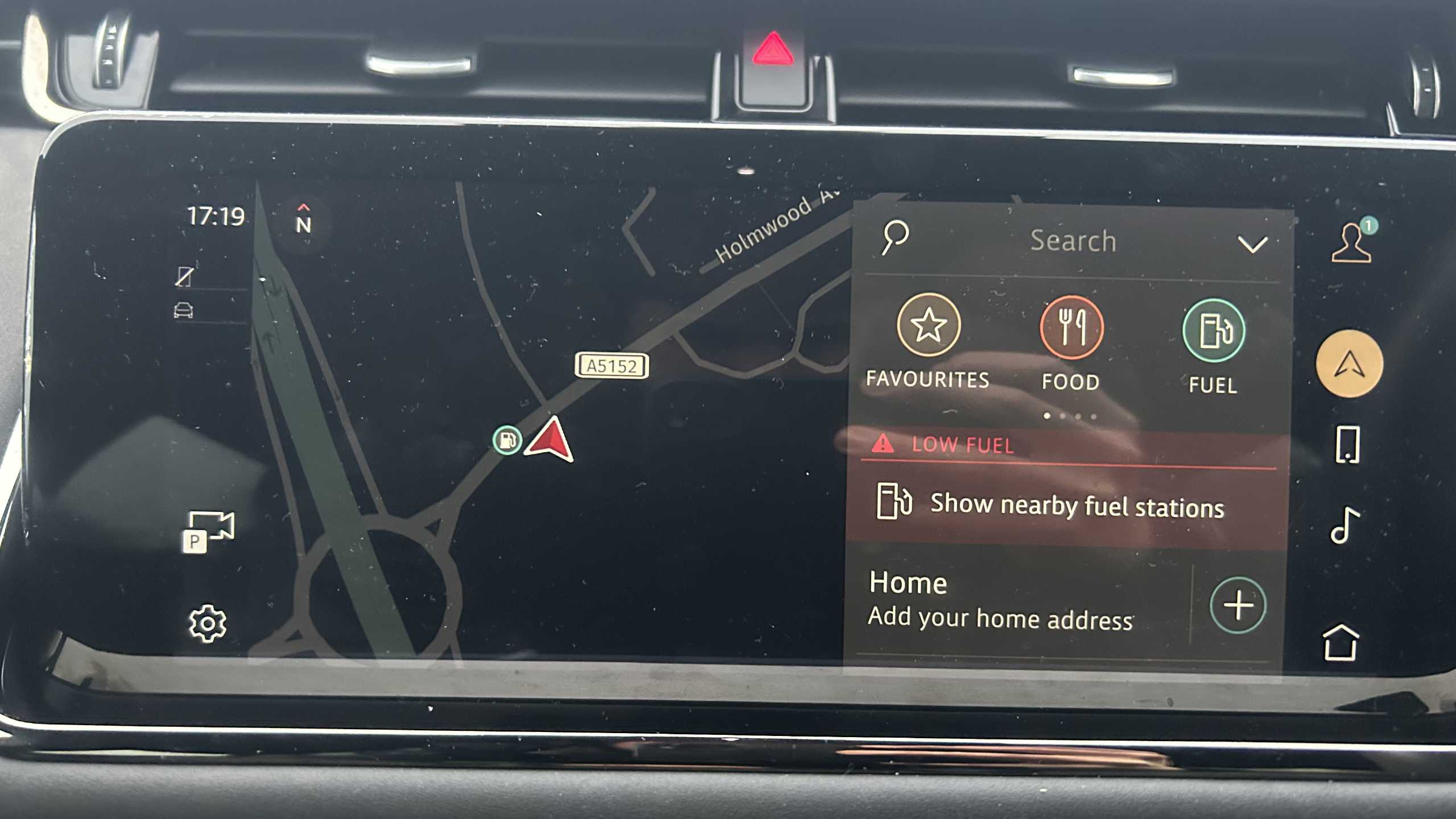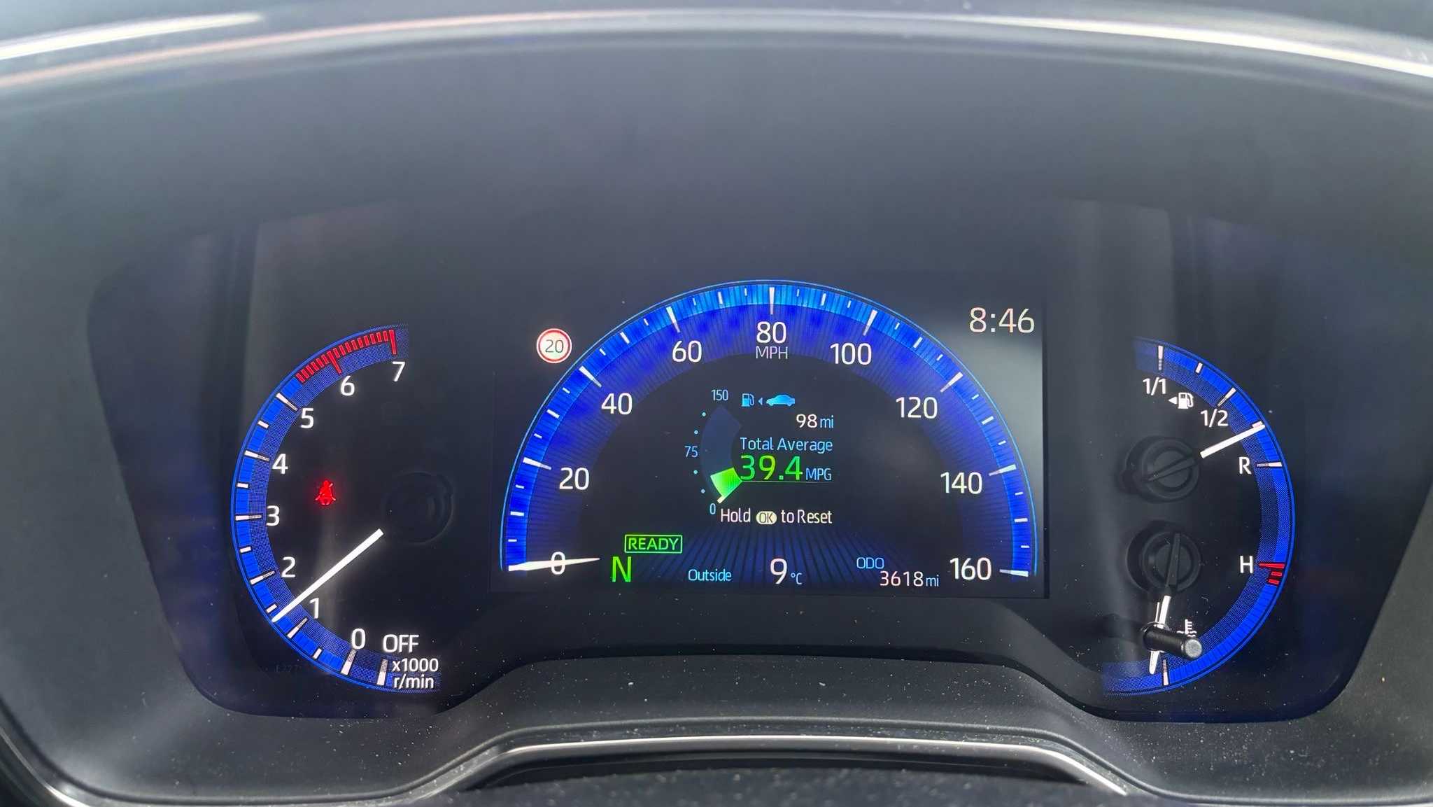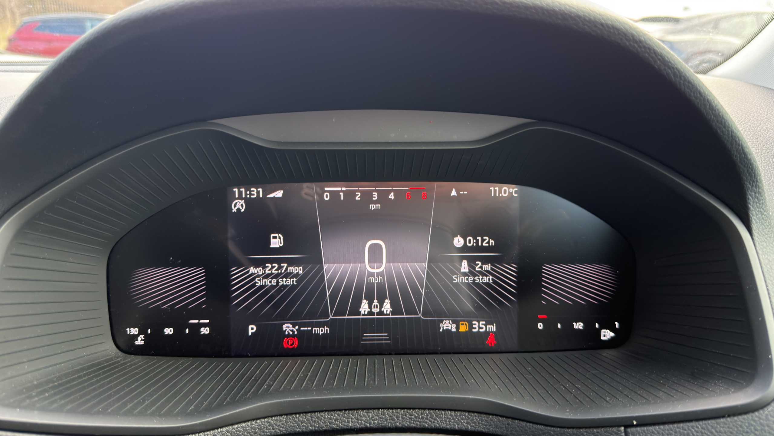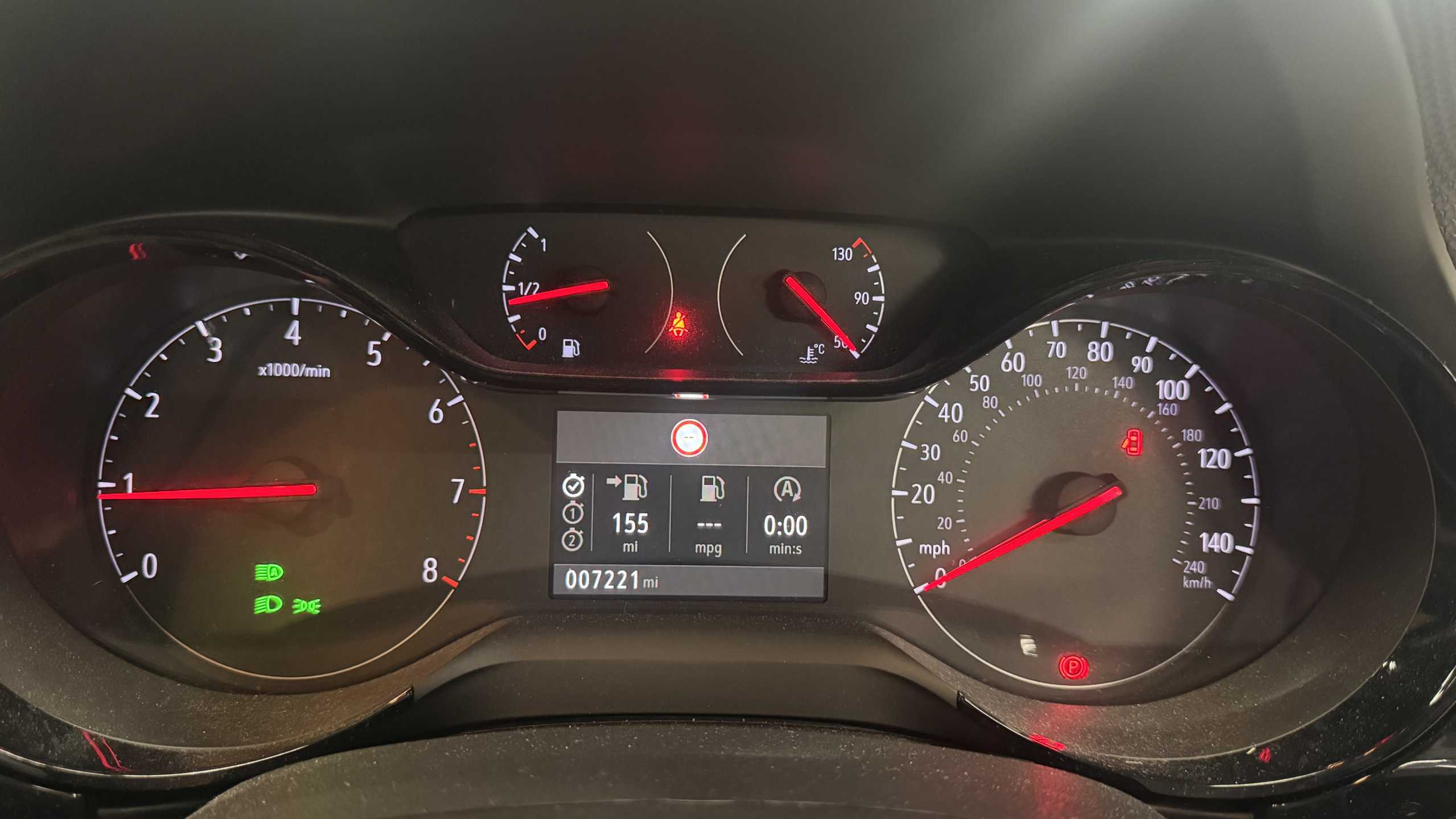 "Fuel gauge with low fuel level warning light",