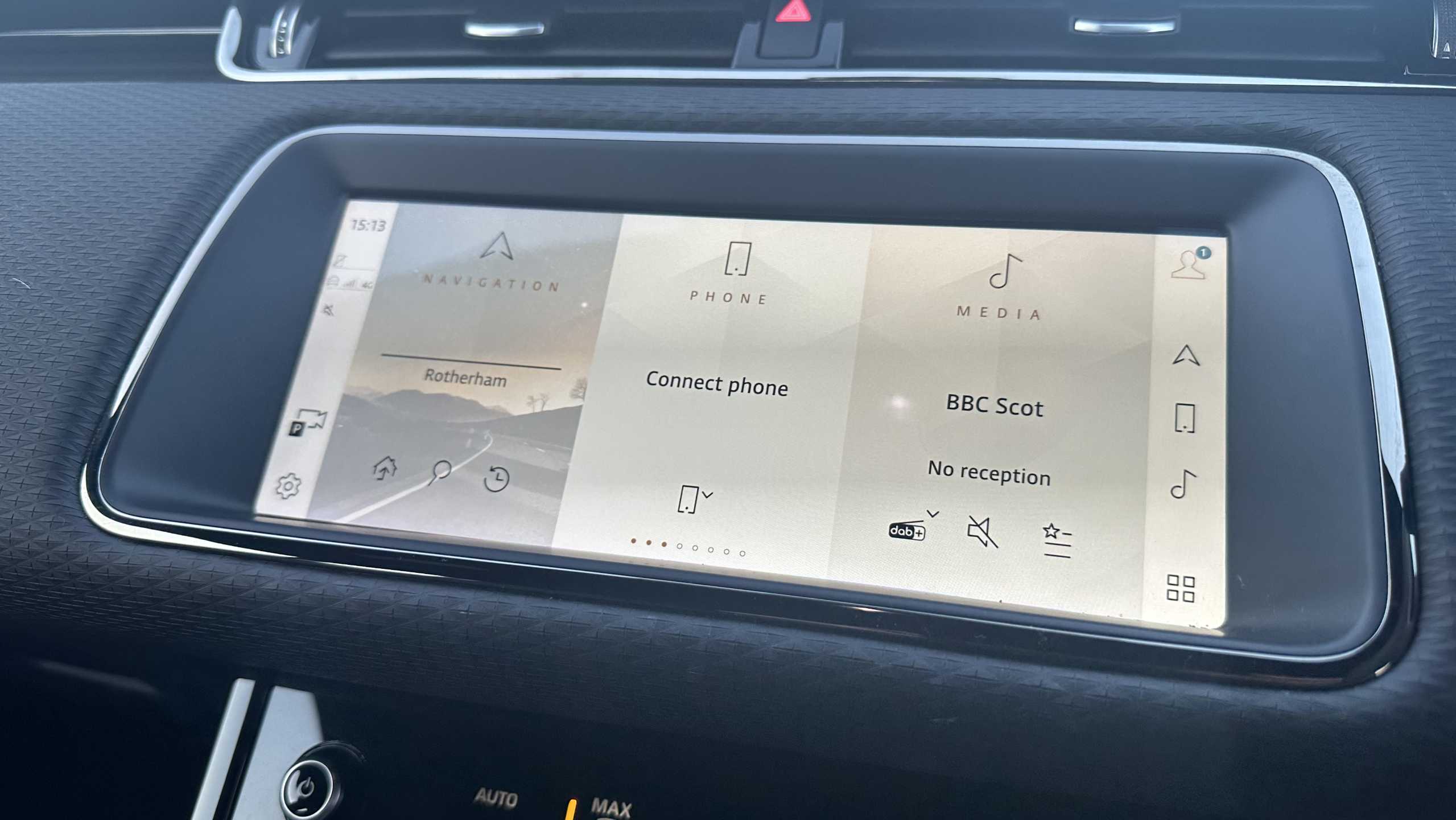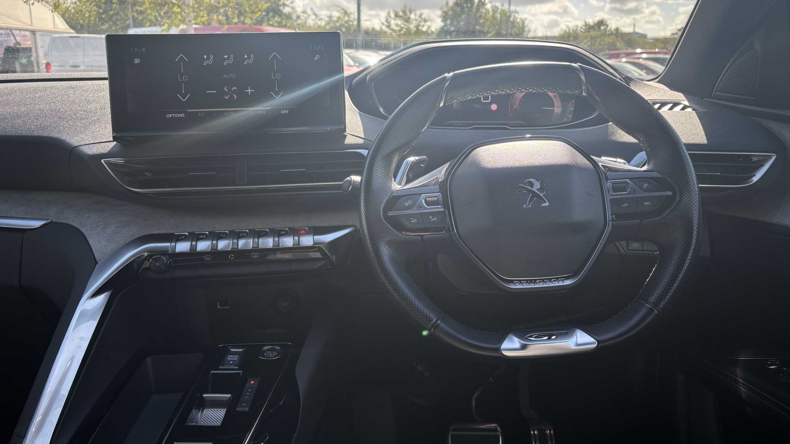 "3 spoke flat bottomed leather steering wheel with satin chrome bezel",