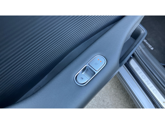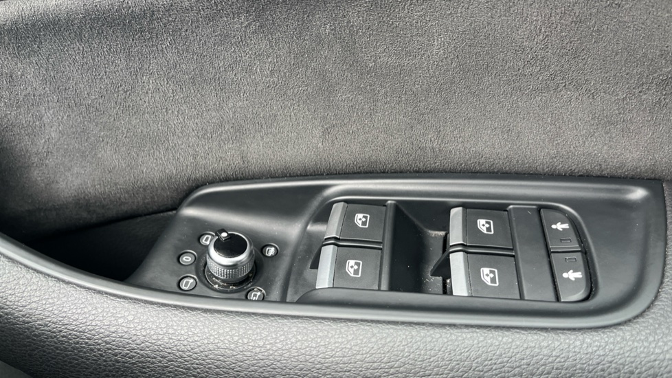 "Rear power window controls on door panel",