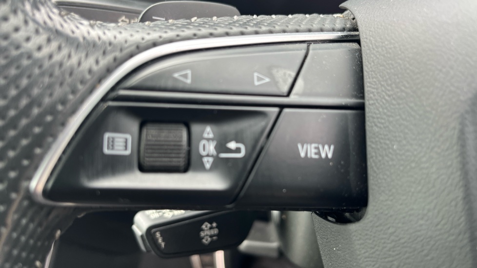 "Eco Leather steering wheel with cruise speed limiter controls",