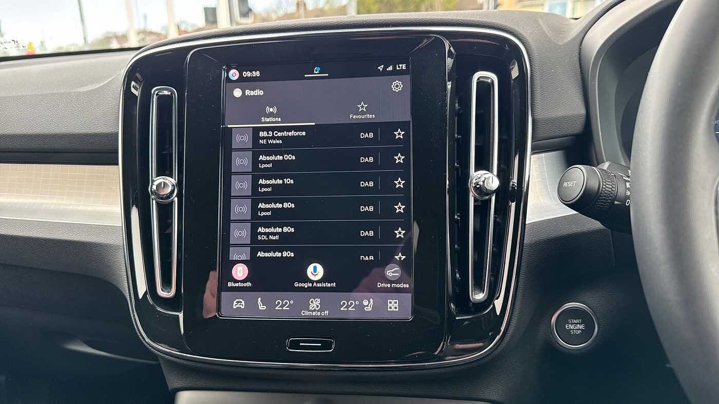 "features": "12.3\" Progressive Driver Display, 9\" centre console portrait touch screen, Adjustable steering wheel force, Android auto (Wired), Apple carplay (wired), Bluetooth handsfree system, Driver alert control, Driver assistance (pilot assist and adaptive cruise control), Driver awareness - Blind spot information system with steer assist, cross traffic alert with autobrake and rear collision warning and mitigation, E-call, Front and rear parking sensors, Front park assist, Google automotive services - Enabled entertainment apps, navigation with google maps, voice recognition with google assistant, Hands free power tailgate, Intelligent speed assistance, Lane keeping aid, Oncoming Lane Mitigation, Speed sensitive steering, Volvo cars services with app - Driving journal, emergency and breakdown call, engine remote start, remote door locking/unlocking and vehicle dashboard, Wireless/Inductive Mobile Phone Charging, Automatic transmission with start/stop and manual change functions, Dynamic chassis, DAB Digital radio, Steering wheel mounted remote controls, Adaptive brake lights with high level LED brake lights, Auto dimming feature for exterior door mirrors, Auto dimming interior mirror, Auto folding and heated power door mirrors, Automatic headlamp levelling, Automatic LED Headlights + Active high beam incorporating daytime running lights, Front aluminium tread plates, Front and rear electric windows, High gloss black front and rear skid plate, High gloss black front bumper deco, High gloss black mesh front grille with high gloss black surround, High gloss black window trim, Home safe and approach lighting, Integrated roof rails in high gloss black, LED front fog lights, Puddle lights, Rain sensor with automatic windscreen wiper activation, Rear side wing doors, Rear wiper, Roof antenna, Roof spoiler, Visible VIN plate, 12V socket in front tunnel console and luggage compartment, 2-Zone electronic climate control with CleanZone air quality system and pollen filter, 3 seat bench in 2nd row, 3 Spoke tailored steering wheel with chrome trim, 60/40 versatile split folding rear seat, Centre console cupholders and storage, Charcoal carpet and floor mats, Charcoal headlining, Connect suede textile/microtech upholstery, Flexible load floor and grocery bag holder, Front headrests, Front seat cushion extensions, Glovebox bag hook, Heated front seats, Height adjustable passenger seat, Height/reach adjustable steering column, High gloss centre tunnel deco, High level illumination - Front door pocket, front side step (under door), tailgate, instrument panel, front door inlay, rear courtesy&reading lights, Integrated waste bin, Isofix attachments on outer rear seats, Load cover, Load protection net, Mid level illumination - Front footwell, luggage & glovebox compartment,front cabin courtesy & reading lights,illuminated vanity mirrors+ticket holder, Multi directional lumbar support for driver and passenger seat, Power driver seat with memory + exterior mirrors memory, Rear armrest with cupholders, Rear headrests, Single front passenger seat, Underfloor luggage compartment storage, Climate pack without heated front seats - XC40, 3x3 point rear seatbelts, City safety with steering support with Pedestrian + cyclist + front collision warning with full auto brake and rear auto brake, Driver and passenger airbags, Drivers knee airbag, Electronic parking brake with auto hold, First aid kit, Front and outer rear seatbelt reminder and pretensioners, Front seats SIPS airbags, Hill descent control - Off-road drive mode, Hill start assist, IC (Inflatable Curtains) - Full Length, Passenger airbag cut-off device, Power child locks on rear doors, Road sign information display, Run off Road Protection, SIPS (Side Impact Protection System), Slippery road and hazard light alert, Stability and Traction Control with Spin control, Engine Drag Control and Corner Traction Control, Tyre pressure monitoring system, Vehicle deceleration control with Anti-lock Brake System, Electronic Brake Distribution and Emergency Brake Assist, Warning triangle, WHIPS whiplash protection system - front, 2 x Key integrated remote control central locking including with deadlocking system and auto open/close windows, Anti-theft alarm including immobiliser/volume sensor + level sensor, Keyless drive includes keyless entry and keyless start, Locking wheel nuts, ",