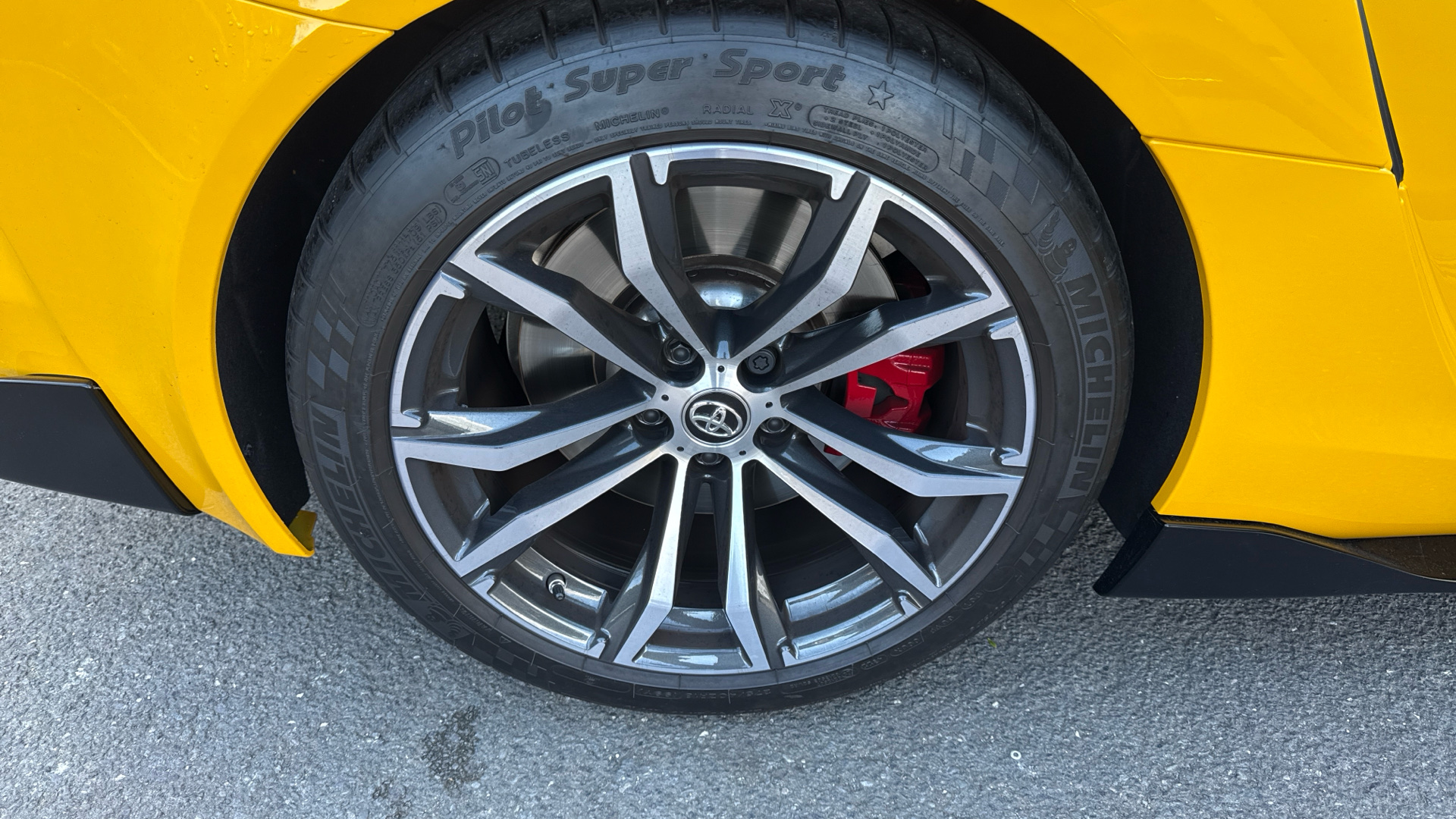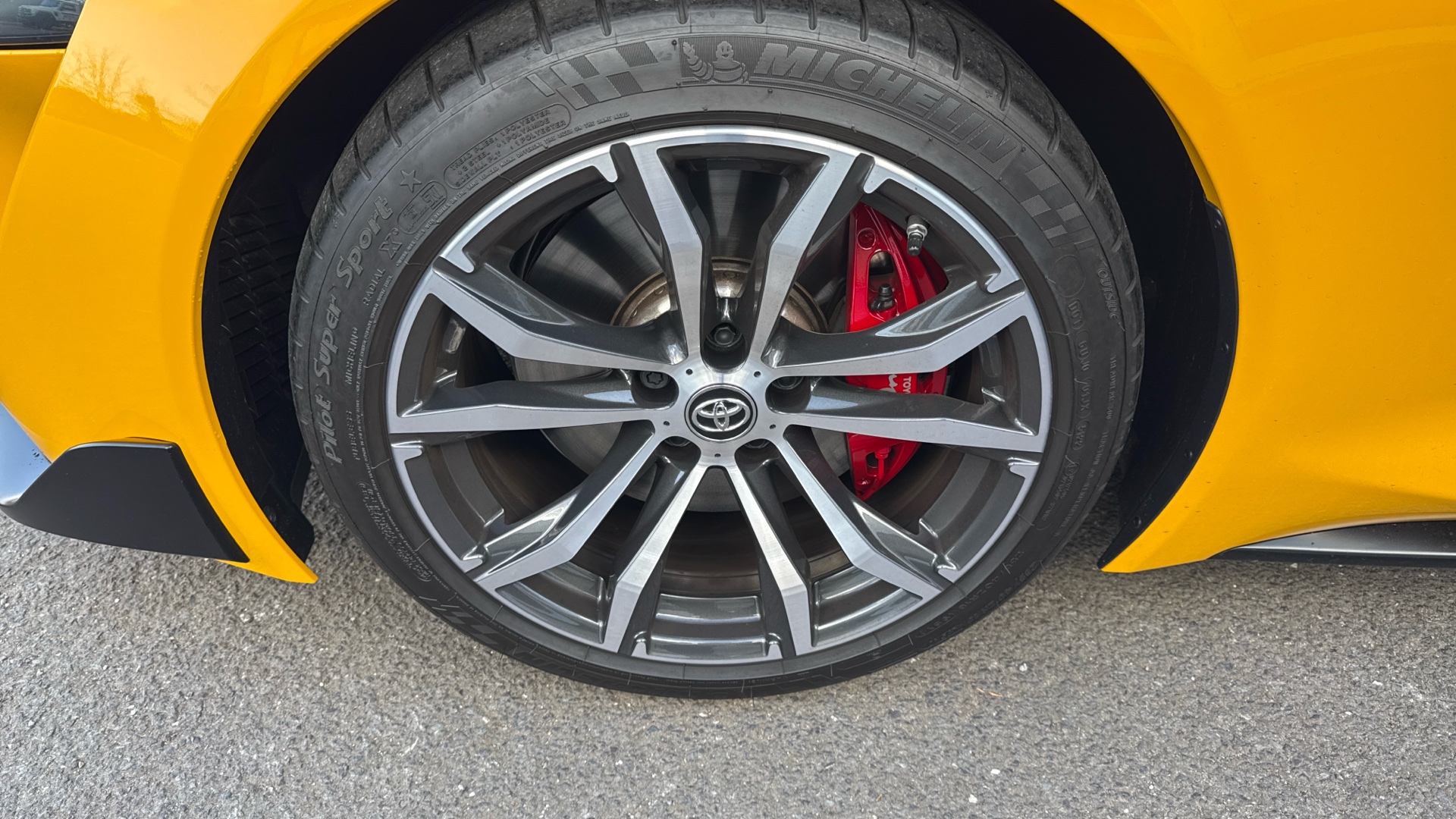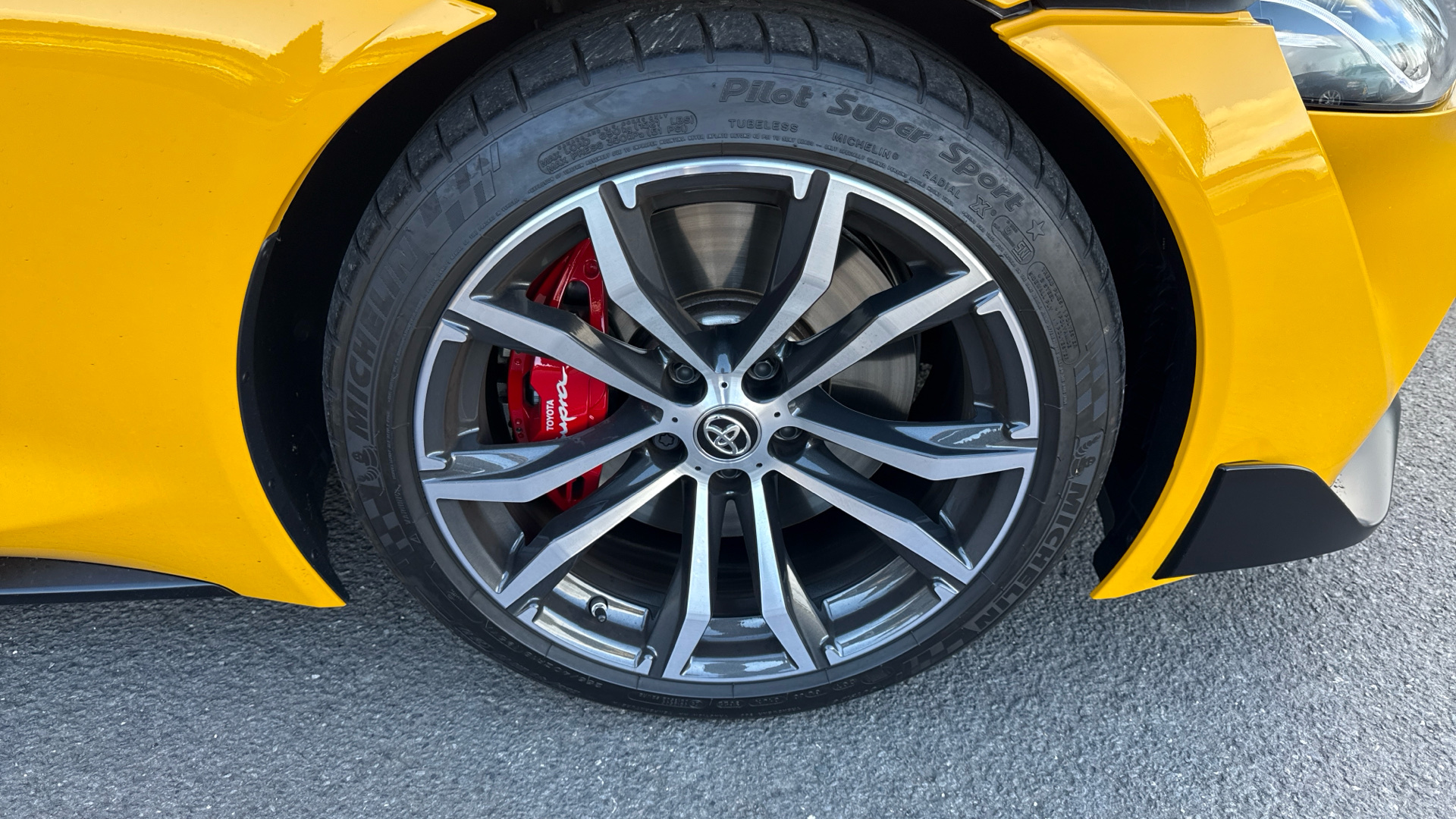 "Red supra Sports front brake caliper",