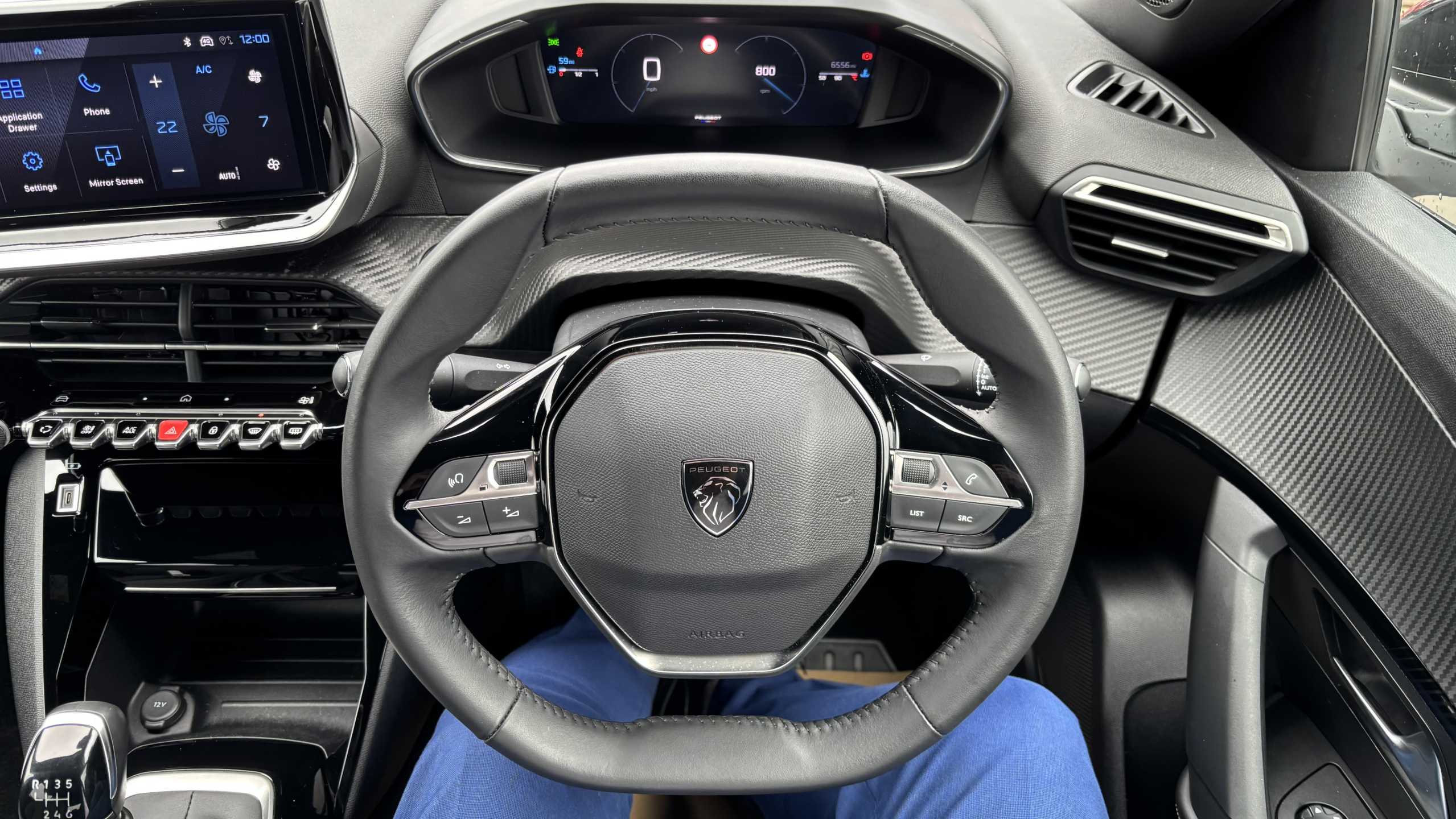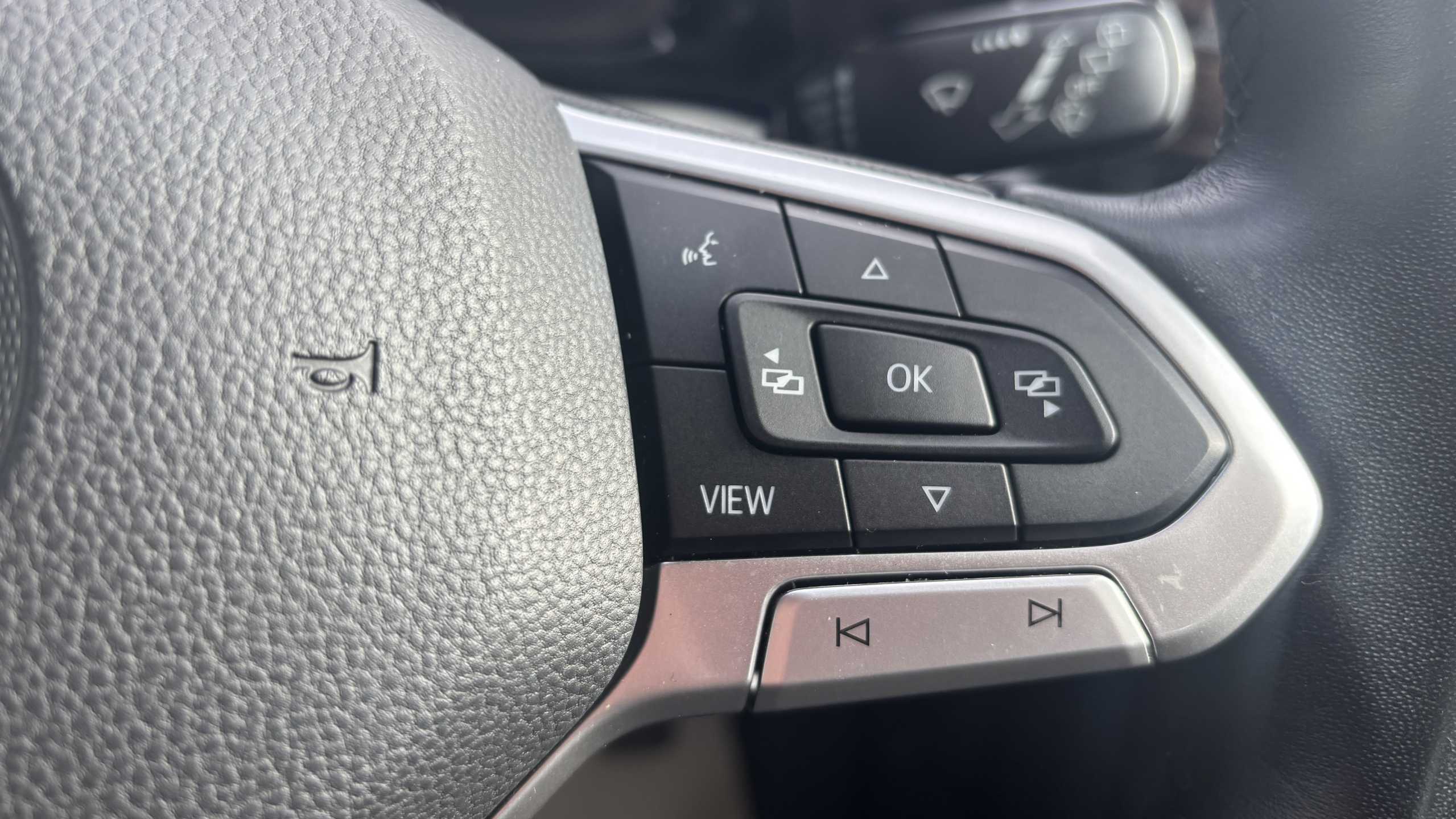 "Deluxe leather steering wheel with two command blocks",