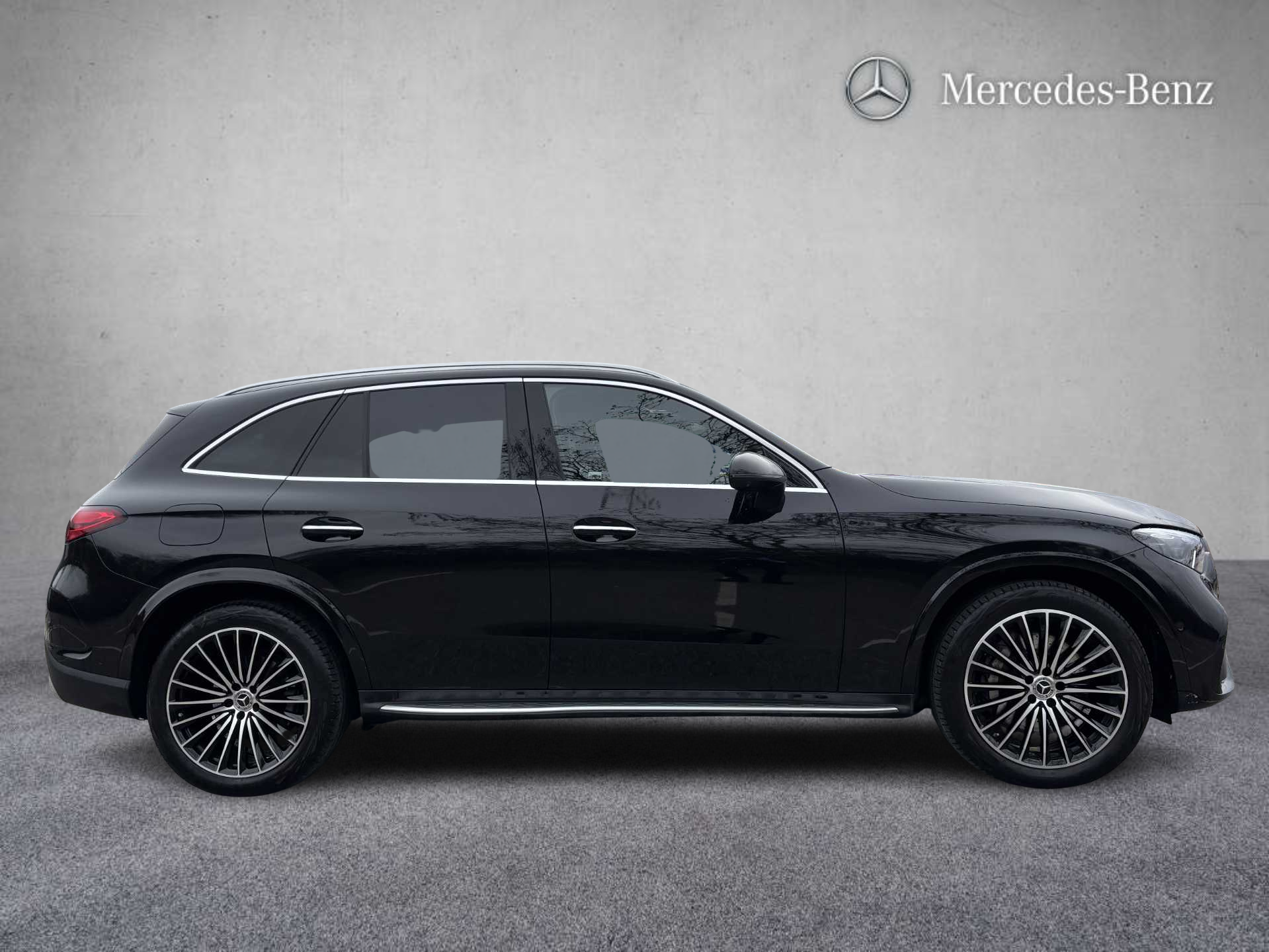 "Dark tinted rear windows and side windows with chrome detail",