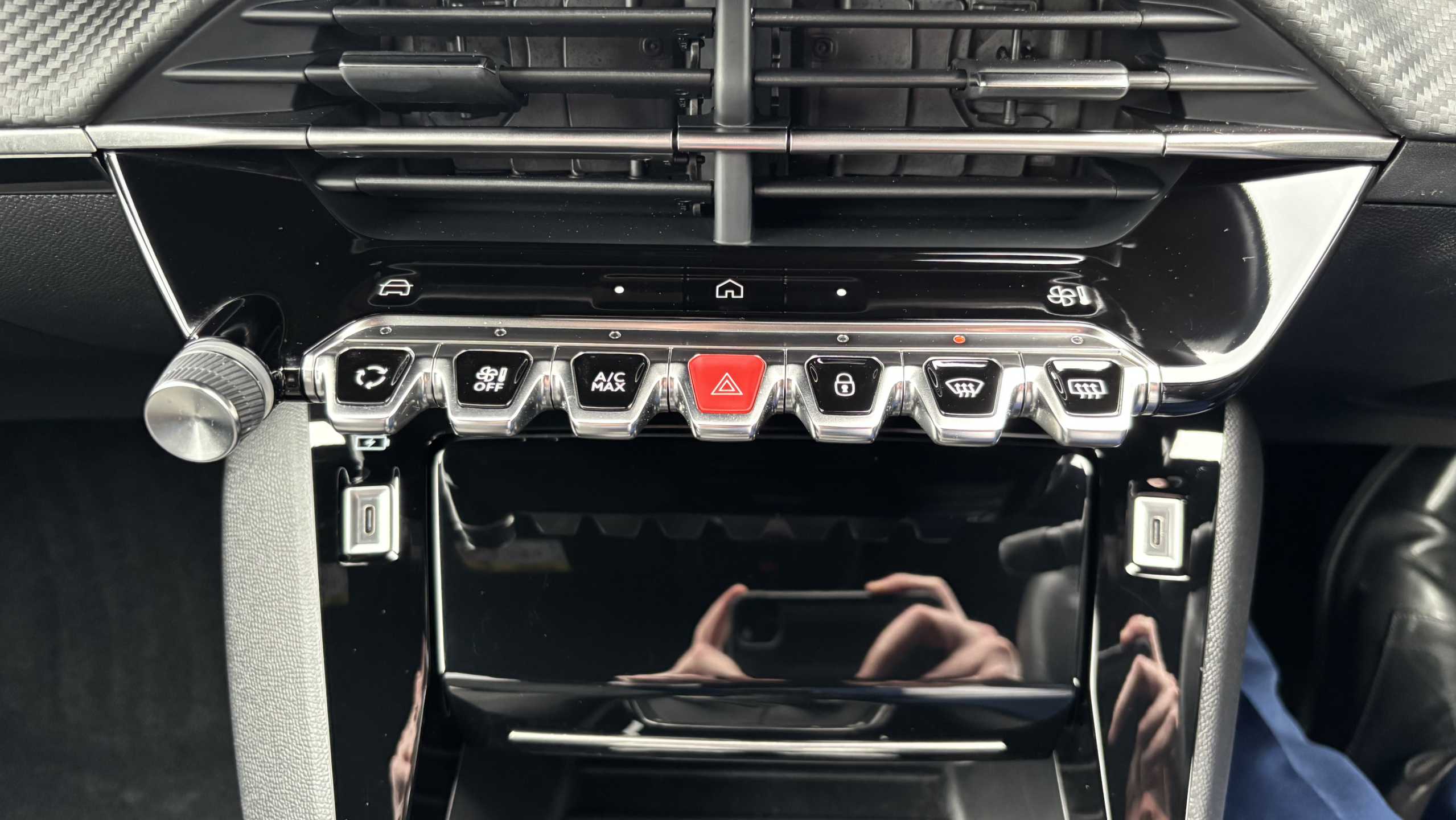 "12V power outlet, 1x USB Type-C socket & data connection, 1x USB Type-A socket at 1st row + 1x USB Type-A socket , 1x USB Type-C socket in 2nd row",