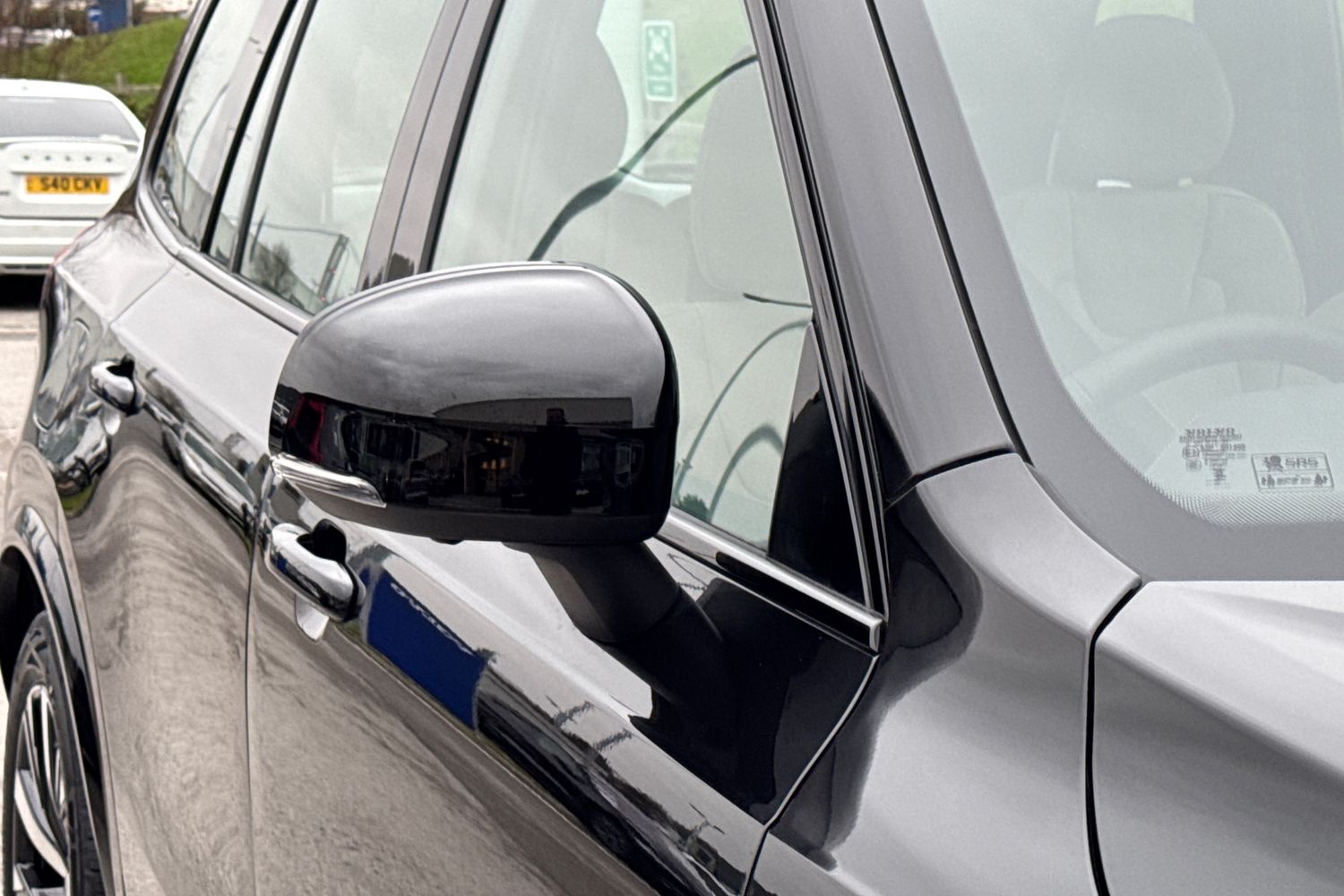 "White rhombus logo projection light in exterior mirrors",