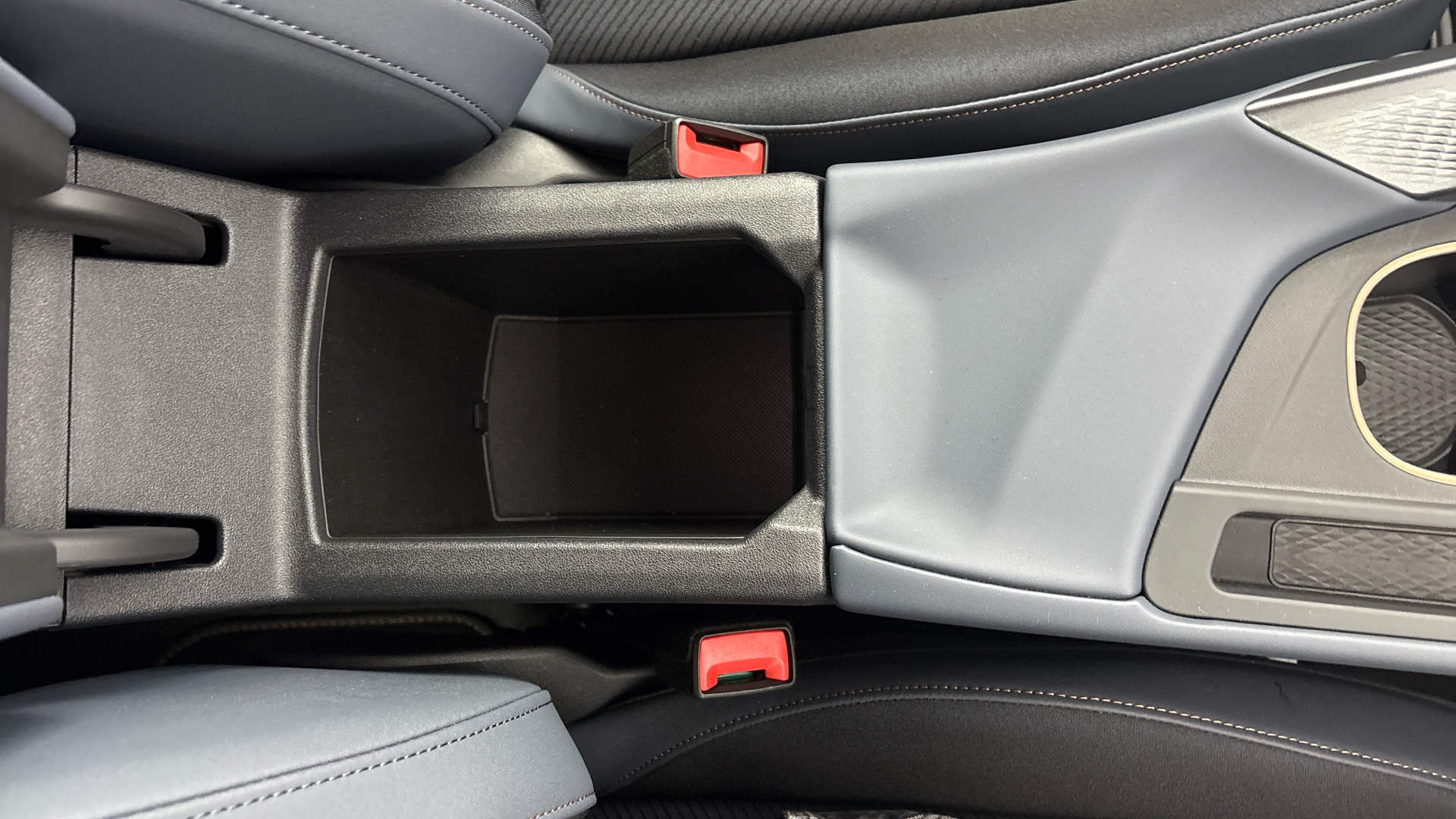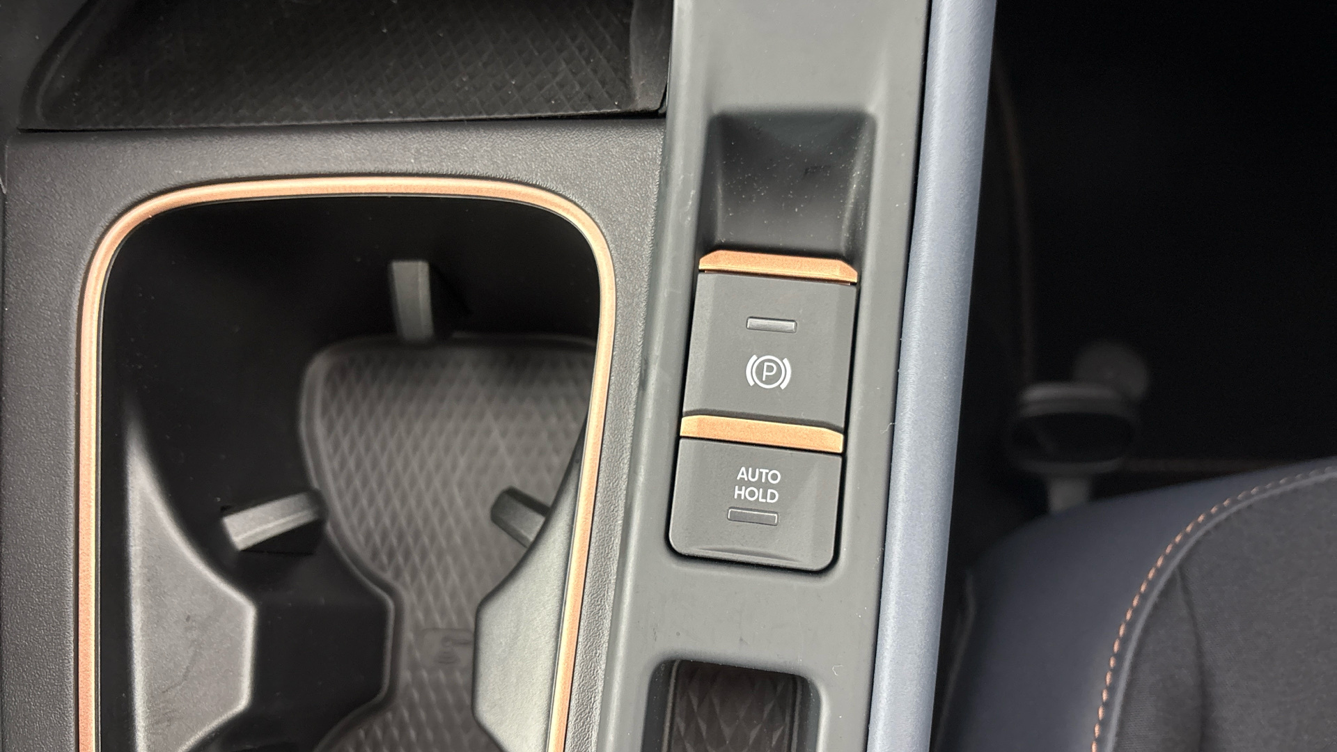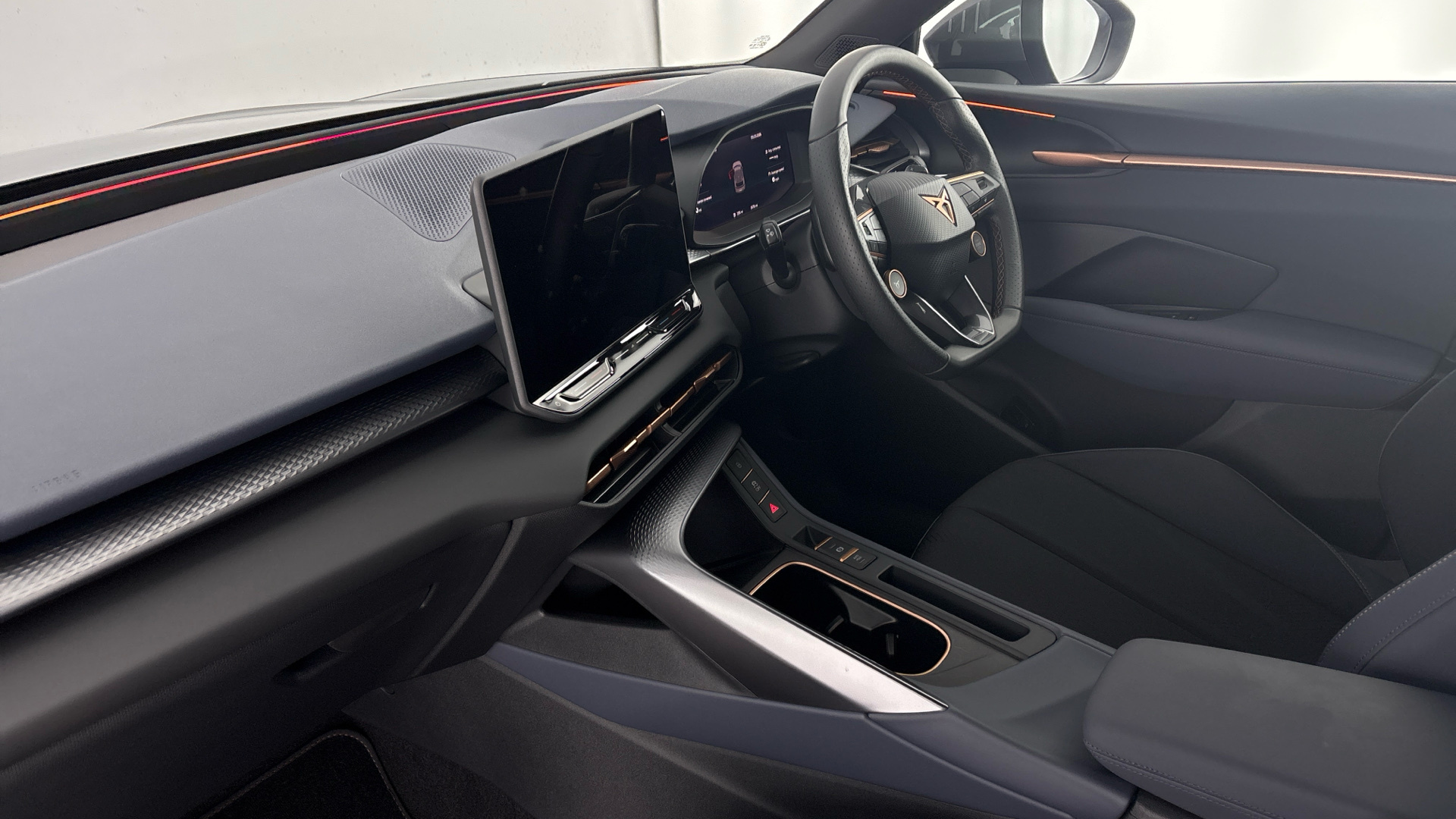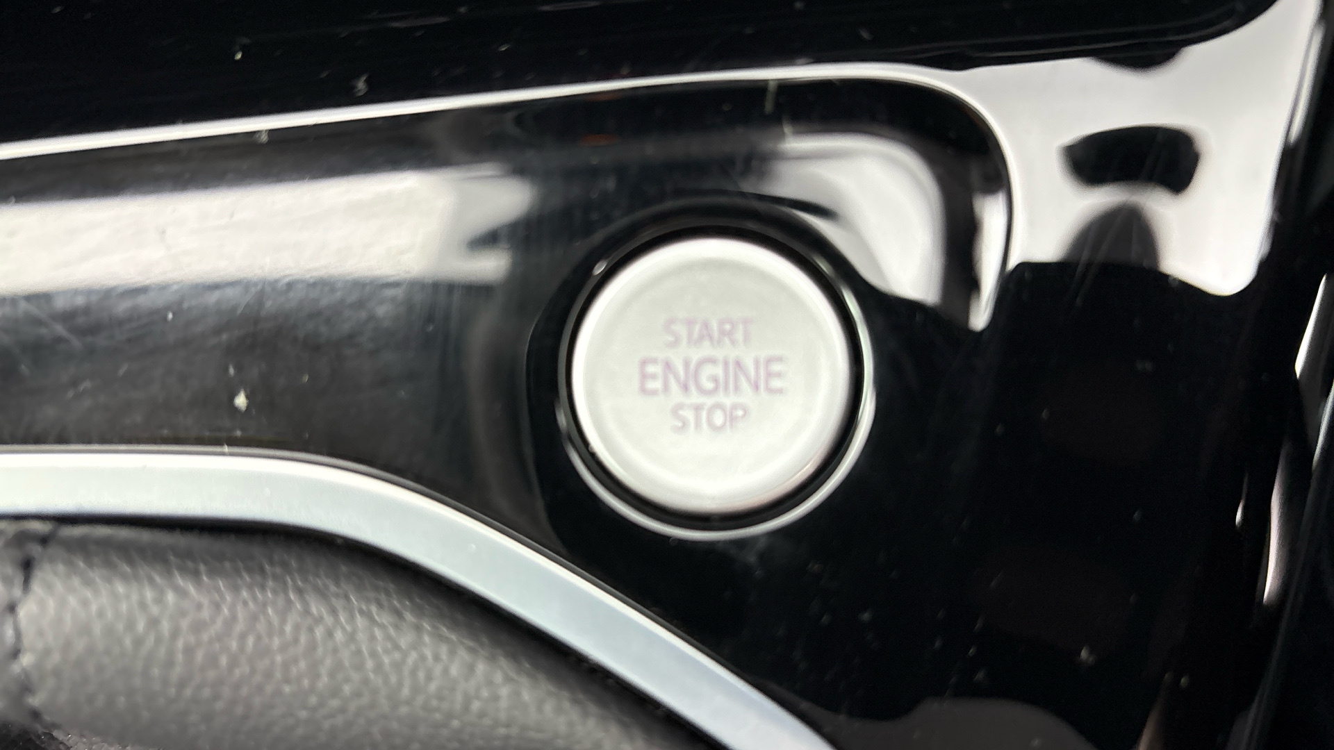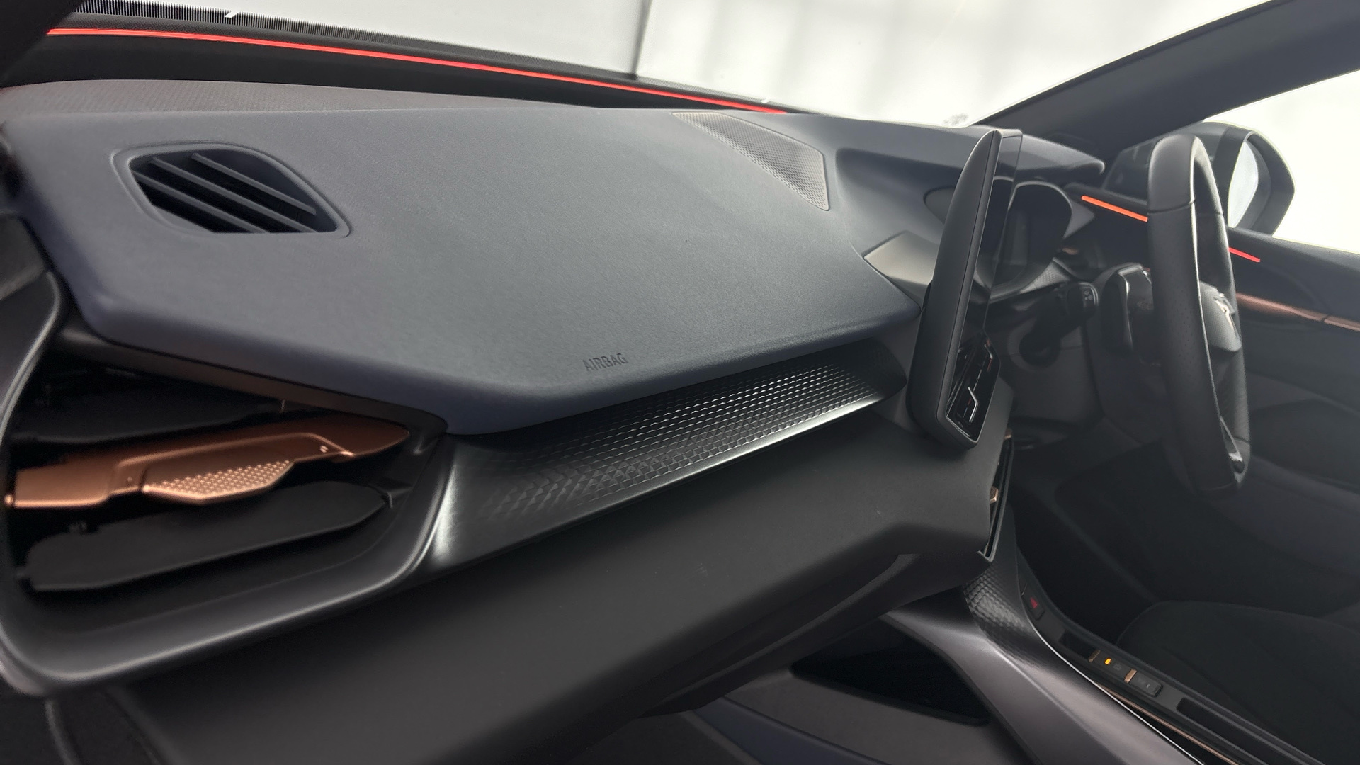 "Black dashboard with contrast stitching",