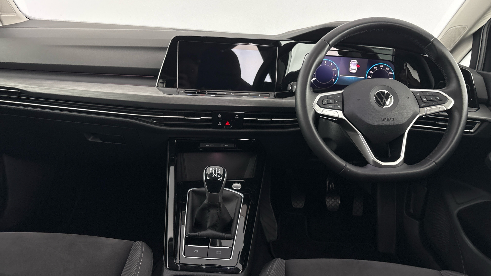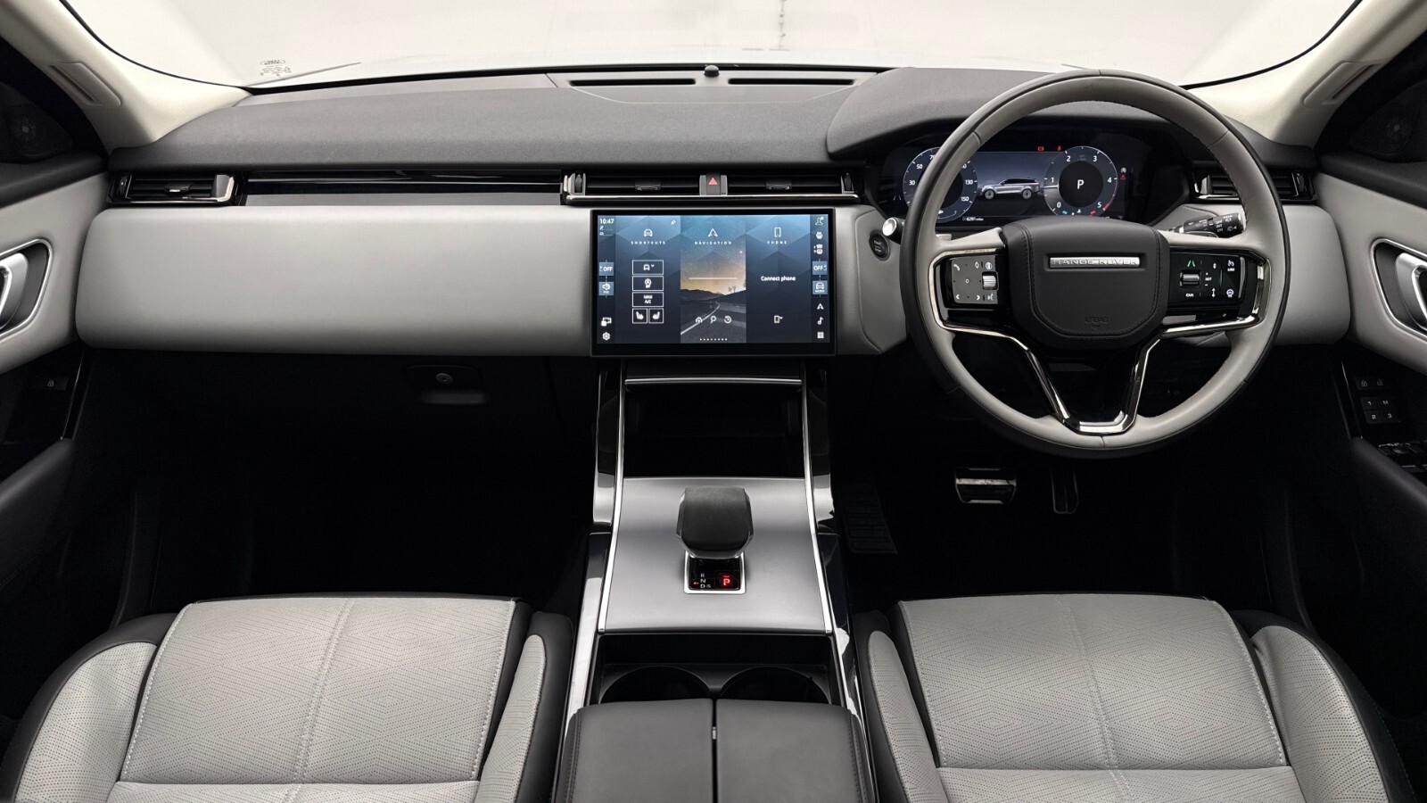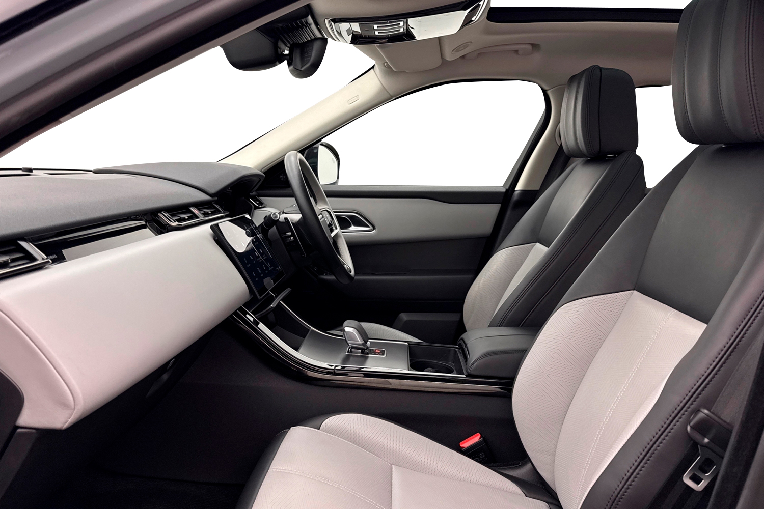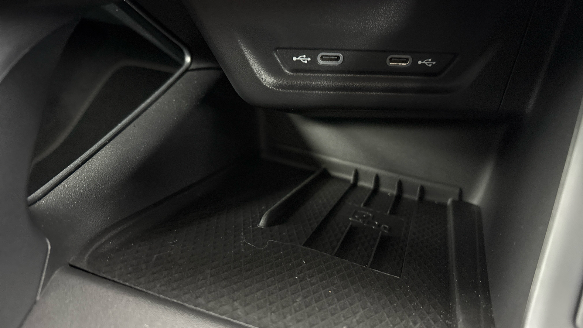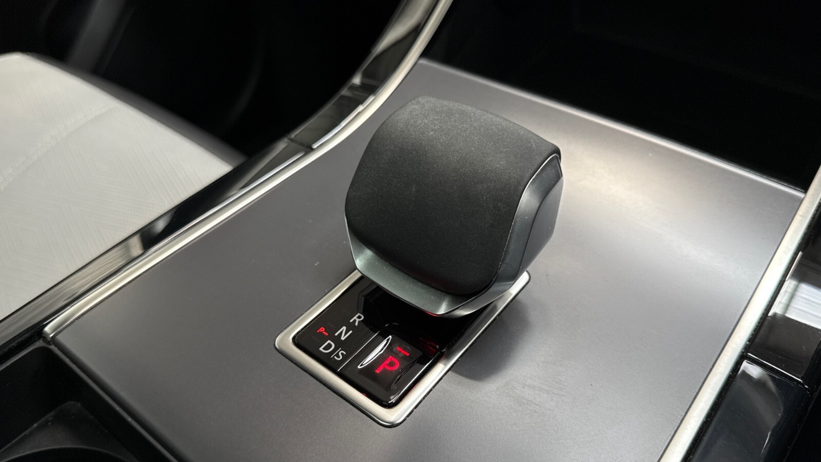"Black dashboard with contrast stitching",