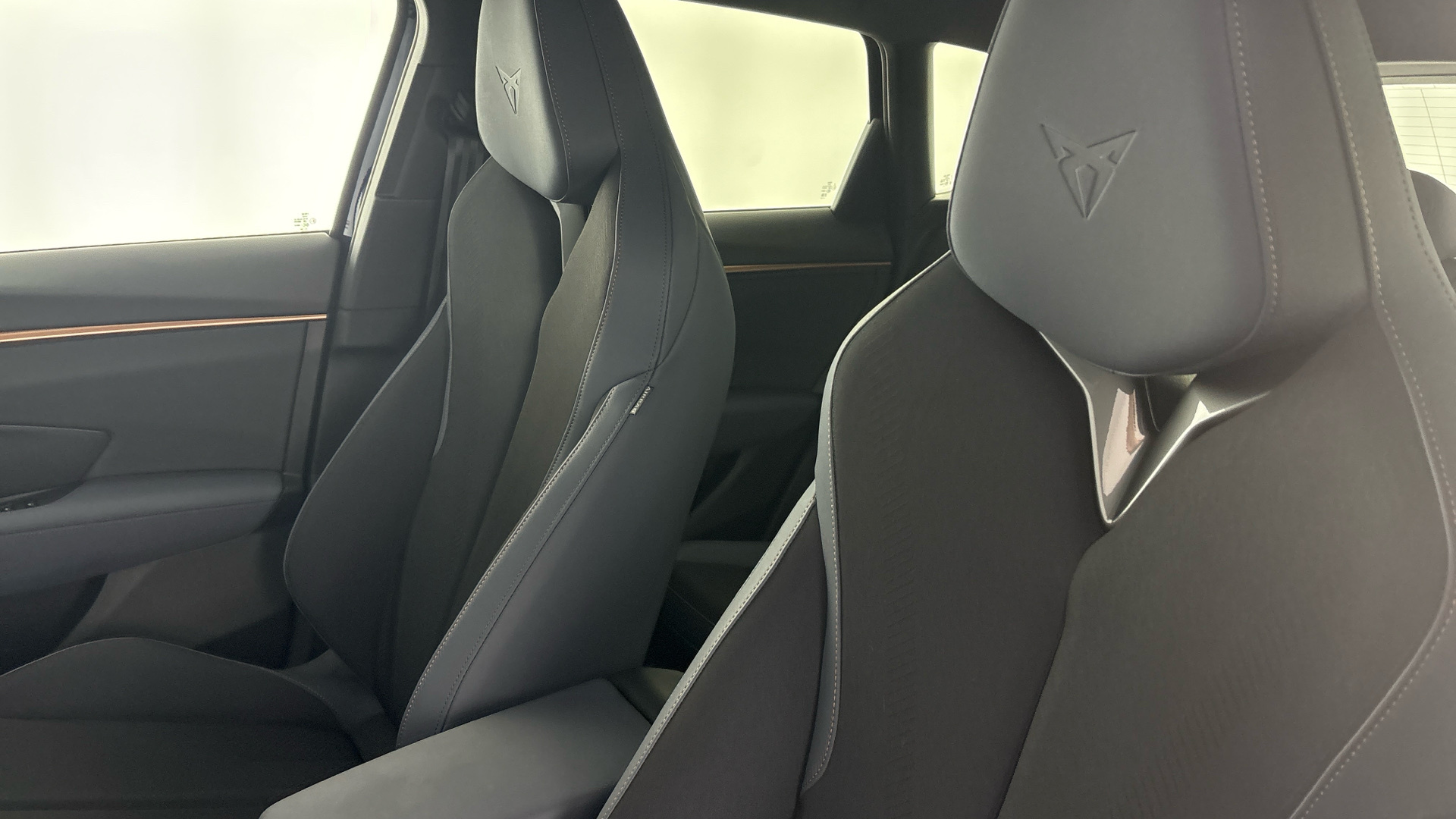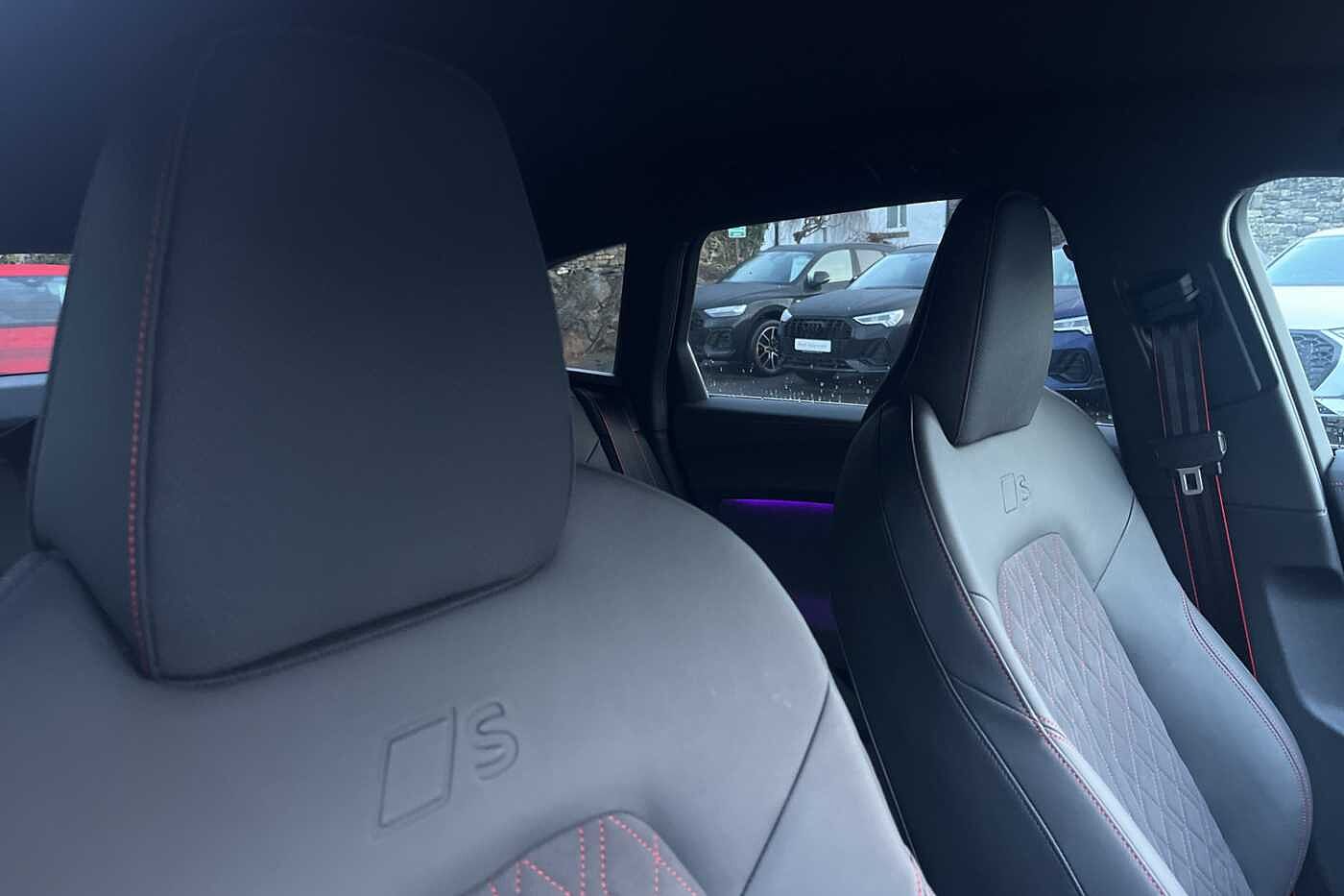 "Front sport seats with integrated headrest and S embossed logo",