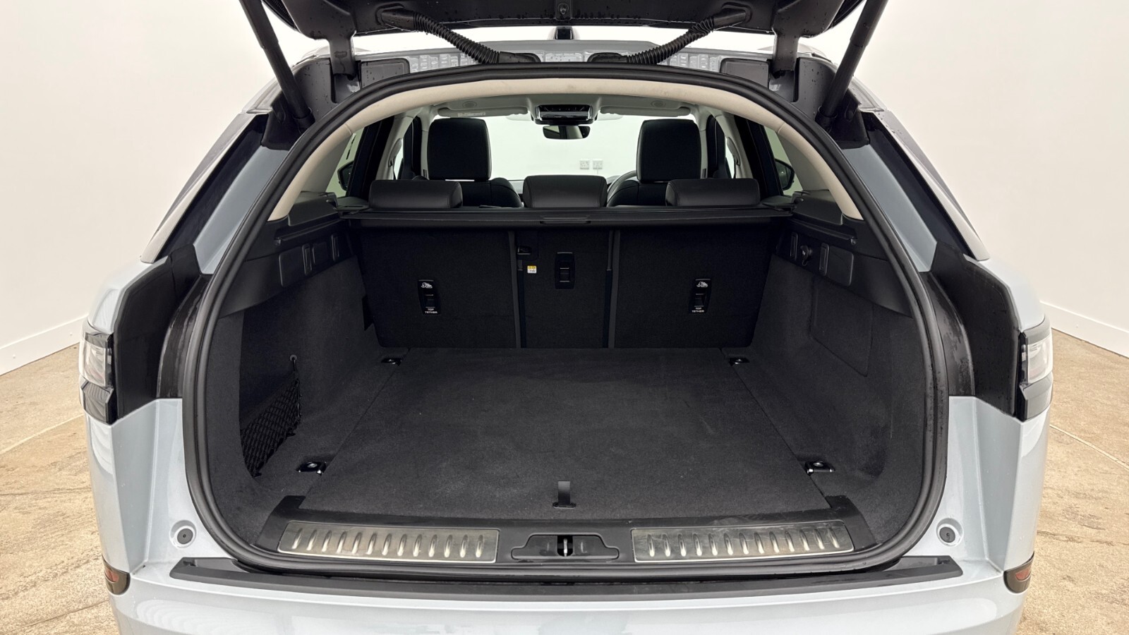 "Front door sill trims with aluminium inlays, illuminated with 'S' logo",
