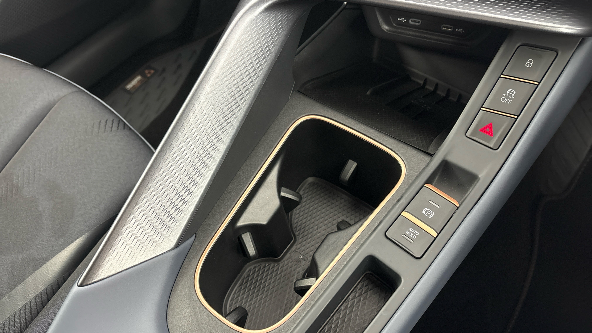 "40:20:40 split folding rear seat bench with centre armrest and cup holders",