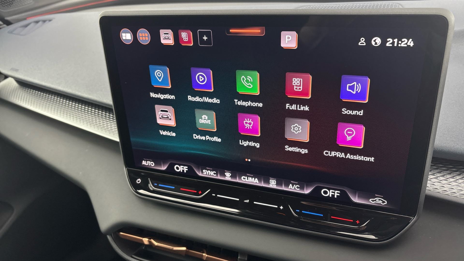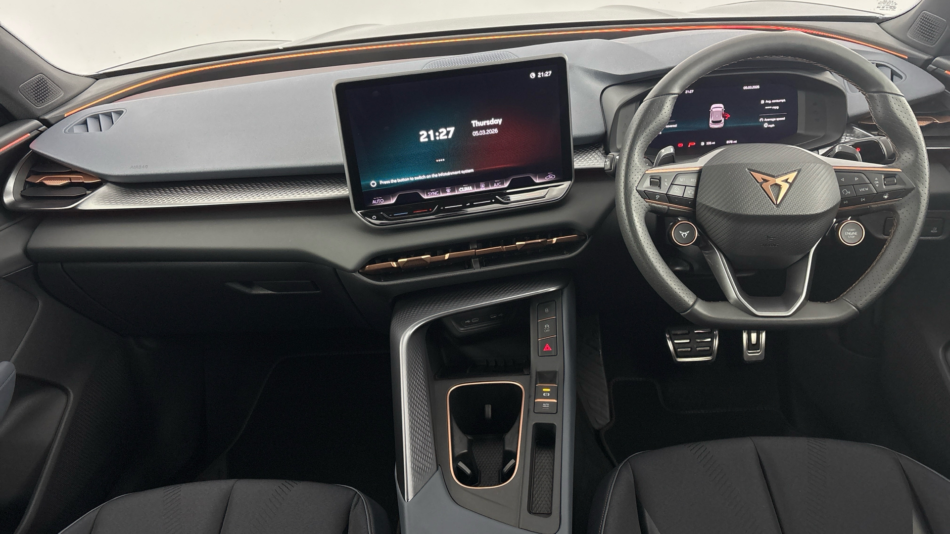 "Steering wheel grips in perforated leather and shift paddles"