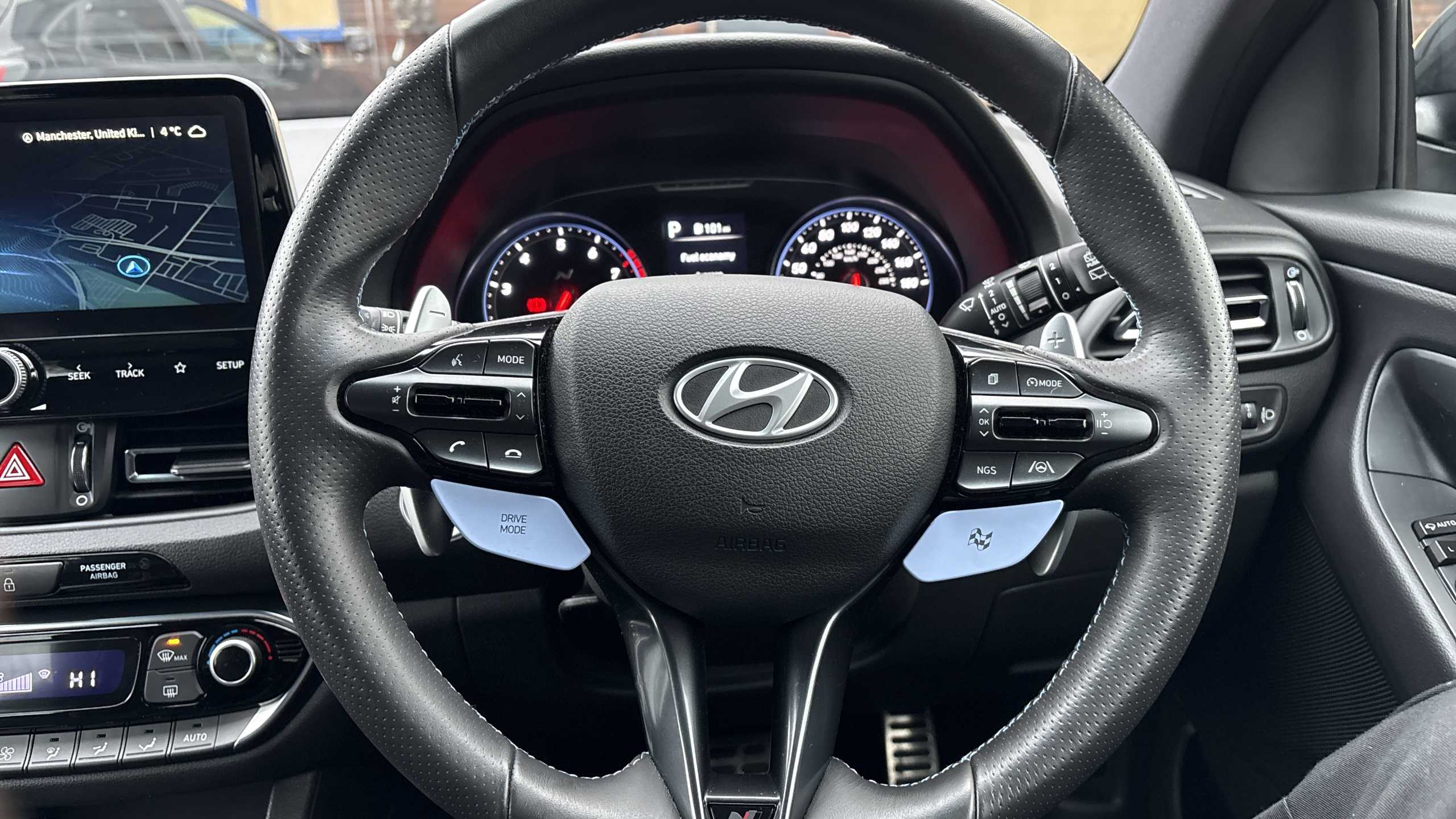 "features": "10.25\" touchscreen centre console display satellite navigation including traffic messaging channel, map care and live services, Android Auto, Apple car play, Audio control with voice recognition, Blind spot Collision Warning (BCW), Bluetooth connectivity with voice recognition, Cruise control, Drive mode buttons, Driver attention alert system, Driver's supervision instrument cluster with 4.2\" LCD display, e-Call (Emergency button system), Emergency stop signalling system, Forward collision avoidance assist, Front and rear parking sensors, Intelligent speed limit warning, Lane follow assist, Lane keep assist, N exclusive sport cluster, N grin shift, N mode button, N track sense shift, Parking system with rear camera and guidance system, Performance information display, Rack motor driven power steering, Rear collision assist, Rev matching system, Shift timing indicator, Trip computer, Windscreen washer fluid sensor and warning indicator, Wireless phone charging pad, Electric active sound design, Electronic limited slip differential, Electronically controlled suspension, Intelligent Stop and Go, Launch control, 2 front and 2 rear speakers with 2 tweeters, DAB Digital radio, USB ports in centre console, 1 speed non intermittent rear windscreen wiper, Active variable exhaust system, Adjustable intermittent front windscreen wipers with aero wiper blade, Automatic defog system for front windscreen, Automatic dimming rear view mirror, Automatic headlight with follow me home function, Automatic windscreen wipers with rain sensor, Black finish window surrounds, Black glossy door mirrors with integrated indicators, Body coloured door handles, Door mirror puddle lights, Dual LED Headlamps with Low/High Projection & Static Cornering, Dusk sensor, Electric adjustable heated door mirrors, Electric folding door mirrors, Electric windows - front and rear with anti-trap mechanism and one touch control (driver window), LED daytime running lights, LED tail lights, N exclusive front and rear bumpers, N exclusive radiator grille, N exclusive rear diffuser, Rear brake light in signature N triangular design, Rear LED lights, Rear roof spoiler with integrated LED brake light, Rear side wing doors, Rear stiffness bar, Rear windows and tailgate privacy glass, Shark fin antenna, Static cornering light, Tinted glass with windscreen shade band, 12V power outlets in front console and luggage compartment, 3 seat bench in 2nd row, 60/40 split folding rear seat, Active head restraints, Aluminium pedals, Black roof liner, Centre console storage, Chrome effect interior door handles, Driver's seat electric height adjustment, Driver's seat manual extendable seat cushion, Driver/passenger sunvisors and illuminated vanity mirrors, Dual zone climate control air conditioning, Electric adjust driver's seat, Floor mats, Front and rear door pockets, Front armrest with storage box, Front cupholders, Front head restraints with vertical and horizontal adjustment, Front passenger's seat electric adjustments, Front passenger's seat electric height adjustment, Front passenger's seat electric lumbar support, Front passenger's seat manual extendable seat cushion, Front, rear and luggage compartment interior lights, Glove compartment, Heated front seats, Heated function steering wheel, Interior front map reading light and sunglasses holder, ISOFIX child seat anchorage points attached on outer rear seats, Leather gearstick gaiter with light blue stitching, Leather wrapped steering wheel and gear knob, Luggage board, N branded aluminium door sill trims, N drive mode steering wheel button in blue, Reach + rake adjustable steering column, Rear armrest with cupholder, Rear head restraints, Single front passenger seat, Steering wheel audio, phone and cruise control buttons, 3x3 point rear seatbelts, Airbags - front, front side and curtain airbags, Anti-lock braking system (ABS), Childproof rear door locks, Curtain airbag roll over sensor, Electronic stability control, Front passenger airbag deactivation switch, Front seatbelt reminder, Height adjustable seatbelts, Hill start assist control (HAC), Manual parking brake, N power shift, Red brake calipers with N logo, Reinforced brakes, Seatbelt reminder for rear passenger seats, Torque vectoring brake, Tyre pressure monitoring system (TPMS), Deadlocks, Immobiliser, Locking wheel nuts, Remote control central locking, Smart key with keyless entry and engine start/stop button, Speed sensitive automatic door locking, Thatcham category 1 alarm, 19\" Gloss black alloy wheels, 19\" Pirelli P zero performance tyres, Temporary mobility kit (TMK), ",